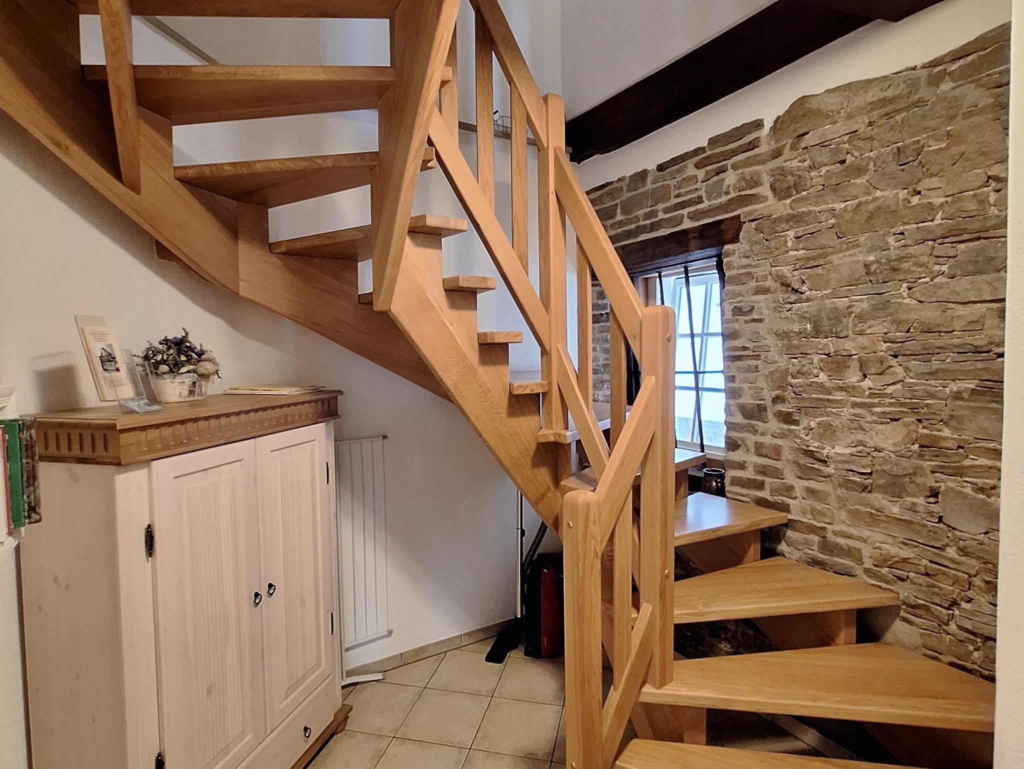Unser Haus wurde im Jahr 1671 erbaut. Die Außenmauern des Erdgeschosses sind bis zu 70 cm dick aus Bruchsteinen hergestellt. Darüber ist ein reiches barockes Fachwerk aus Eiche errichtet. Die Deckenhöhe der Räume ist selbst für heute Verhältnisse großzügig. In den Jahren 2012 bis 2016 wurde das Haus kernsaniert. Wir legten großen Wert auf hohe ökologische Standards und verwendeten die ursprünglichen Baumaterialien Holz, Lehm und Kalk. Raumwärme und Warmwasser werden mit einer Holz-Pelletheizung erzeugt. Es entstanden 2 Ferienwohnungen mit hohem Komfort: die Wohnung „Bergblick“ im Erdgeschoss mit einem Schlafzimmer (bis zu 2 Personen) sowie die Wohnung „Moseltal“ im Obergeschoss mit zwei Schlafzimmern (bis zu 4 Personen). Bei größerem Platzbedarf können beide im Haus befindlichen Ferienwohnungen zu einem großen Ferienhaus mit maximal 6 Schlafplätzen (3 Schlafzimmern) gemietet werden. Unmittelbar zum Haus verlaufen vielseitige Wander-, und Radwege. Für den täglichen Bedarf (Lebensmittel) finden Sie alles im Nachbarort Treis-Karden - gut mit Fahrrad oder Auto zu erreichen. Die Bäckerei im Ort befindet sich nur wenige Gehminuten entfernt. Genießen Sie Rundfahrten und Tagesfahrten nach Cochem & Koblenz während einer Schifffahrt auf der Mosel, der Schiffsanleger befindet sich unmittelbar am Moselufer. Unser Haus, liebevoll eingerichtet wartet auf seine Gäste.