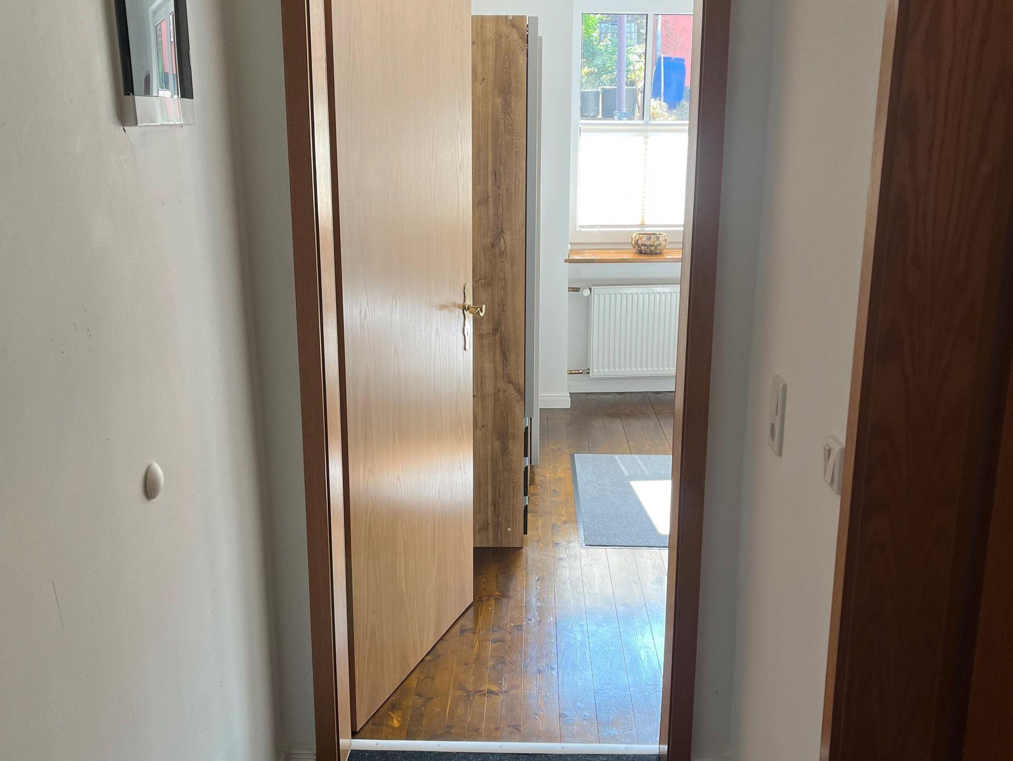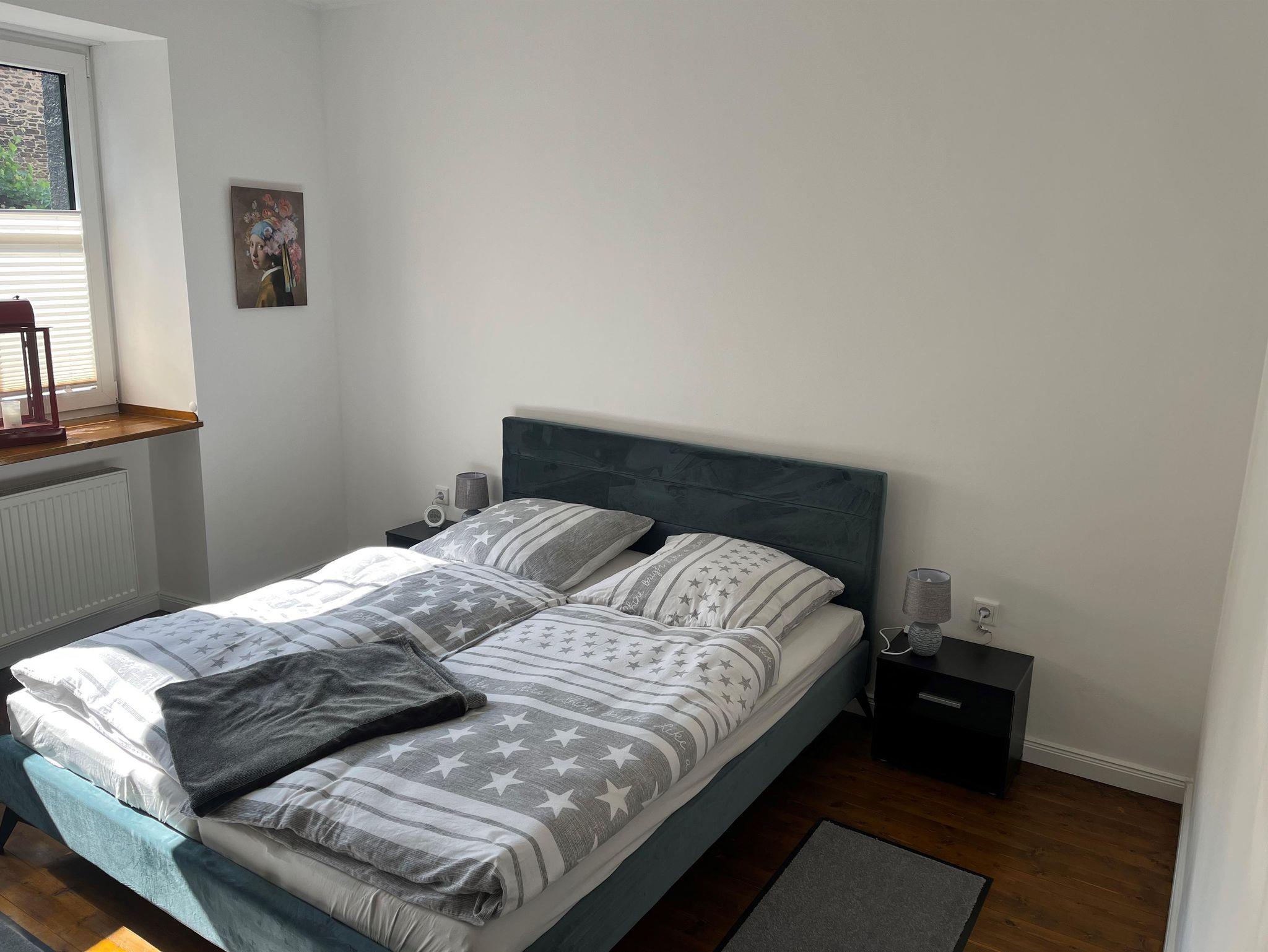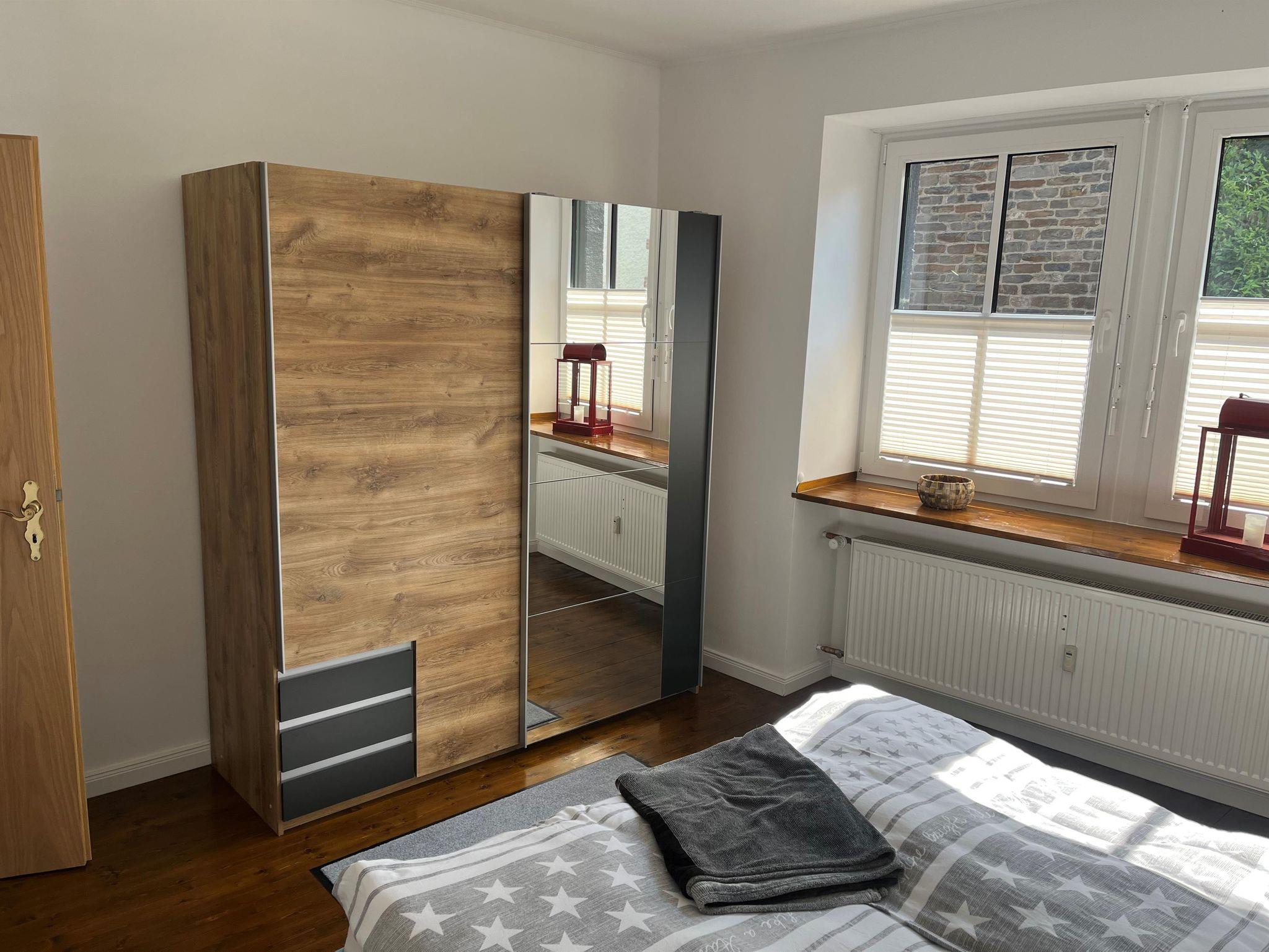 Beide Wohnungen sind komplett neu saniert, mit Rollläden an allen Fenstern (zusätzlich Plissees) und über den Hofeingang zu erreichen. Dort steht ein Grill sowie eine Sitzmöglichkeit für 6-8 Personen/Tisch mit Sonnenschirmen zur Verfügung. Fahrräder können im Hof abgestellt werden. Im Hausflur steht eine Garderobe sowie ein abschließbarer Waffenschrank zur Verfügung. Die Ferienwohnung ist mit einem Wohnzimmer mit großer Eckcouch und Couchtisch, mit offener voll eingerichteter Küche (Backofen, keine Microwelle, Kühlschrank mit Gefrierfach, 4 Ceranfelder), Esstisch mit 4 Plätzen, kleiner Schreibtisch, Fernseher. Separates Schlafzimmer mit Doppelbett, Fußende offen (160 x 200 cm ), Schrank. Badezimmer mit großer Dusche 120cm x 90cm, Waschtrockner, Fön.