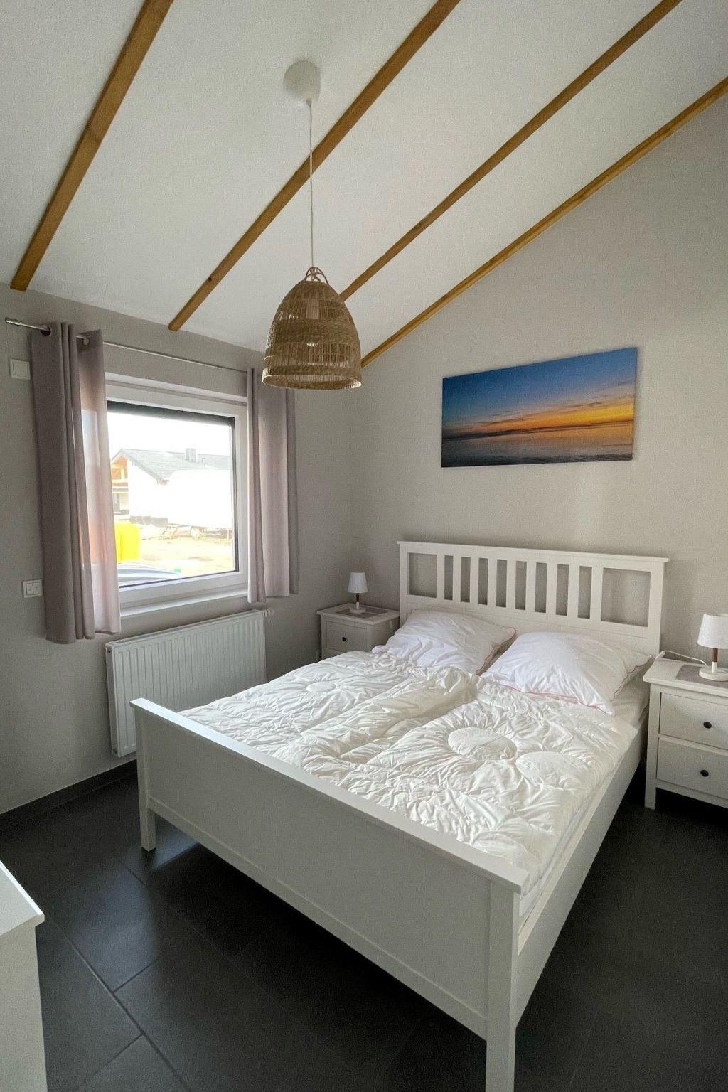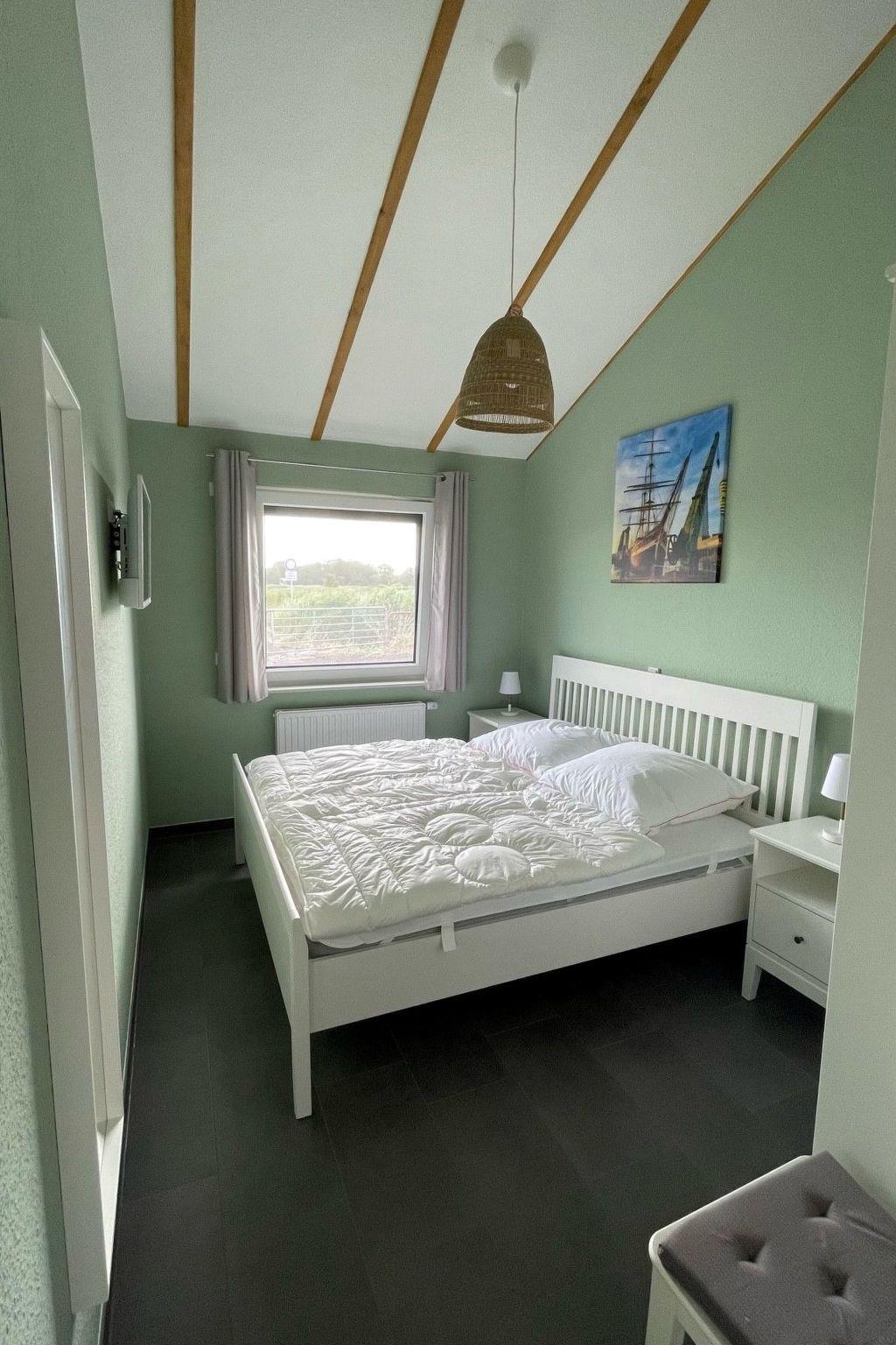 Newly built house G 1 fenced in on the edge with a view of the landscape conservation area, 90 sqm living space, first occupancy August 2022, pets allowed (max. 2), free WLAN in the house, wood-burning stove, electric shutters in the 3 bedrooms, complete fly screens, all rooms tiled, 2 bathrooms with walk-in shower, 1 x wall-mounted towel radiator, TV in the living room and in the 3 bedrooms, wood-burning stove, washing machine, massive storage room approx. 10 sqm under the carport. 10 sqm under the carportFor 6 people with 3 bedrooms and 2 full bathroomsOwn 448 sqm plot- 3 bedrooms (2 x double beds 1.80m x 2.00m and 1x double bed 1.60m x 2.00m)- 1 spacious living room with large floor-to-ceiling windows- fully equipped fitted kitchen with dishwasher, microwave and separate freezerLockable storage room with approx. 10 sqm under the carport- 1 storage room / 1 hallway- 2 bathrooms with walk-in shower and 1 x wall-mounted towel radiator- Satellite TV, 1x living room and 3 x bedrooms- Covered sun terrace with garden furniture and Weber charcoal grill- Outside water tap- Carport + 1 additional parking spaceThe house is located in the holiday village Eckwarderhörne in the immediate vicinity of the dyke, the ferry dock (including passenger/bicycle ferry) and the beach.The house is located in the holiday village Eckwarderhörne in the immediate vicinity of the dyke, the ferry dock (e.g. passenger/bike ferry to Wilhelmshaven) and a 50,000 m2 inland lake belonging to the holiday village (with an approx. 500 m2 sandy beach directly on the inland lake, swimming pontoon and jetties). The Eckwarderhörne lido with its beach hall, lighthouse, ferry landing stage and starting point for guided mudflat walks is around 800 m away. The holiday village is idyllically situated away from the traffic and has the "To'n Spieker" dyke inn, bicycle hire, children's playground and a 1000 m2 play area with beach volleyball court, badminton court, basketball hoop, outdoor table tennis table, sandpit and swings.