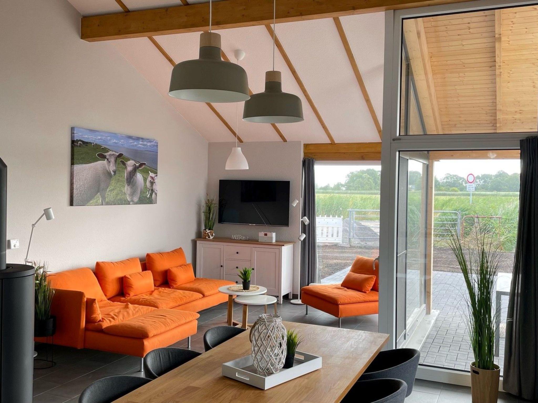 New building in a peripheral location with a view of the landscape conservation area, 90 sqm living space, first occupancy August 2022, pets allowed (max. 2), WLAN, wood-burning stove, massive storage room approx. 10 sqm under the carport, directly on the North Sea in the holiday village Eckwarderhörne: G 1