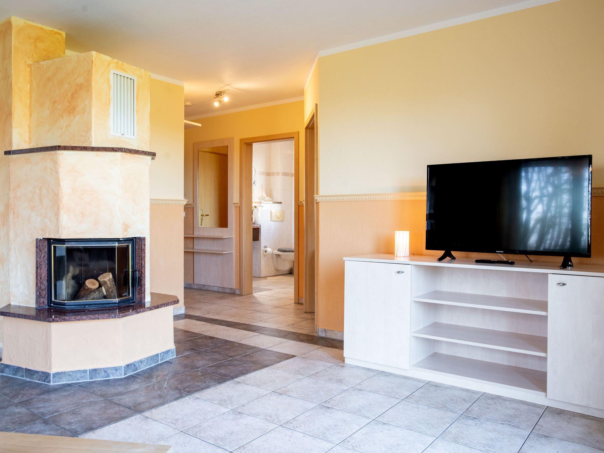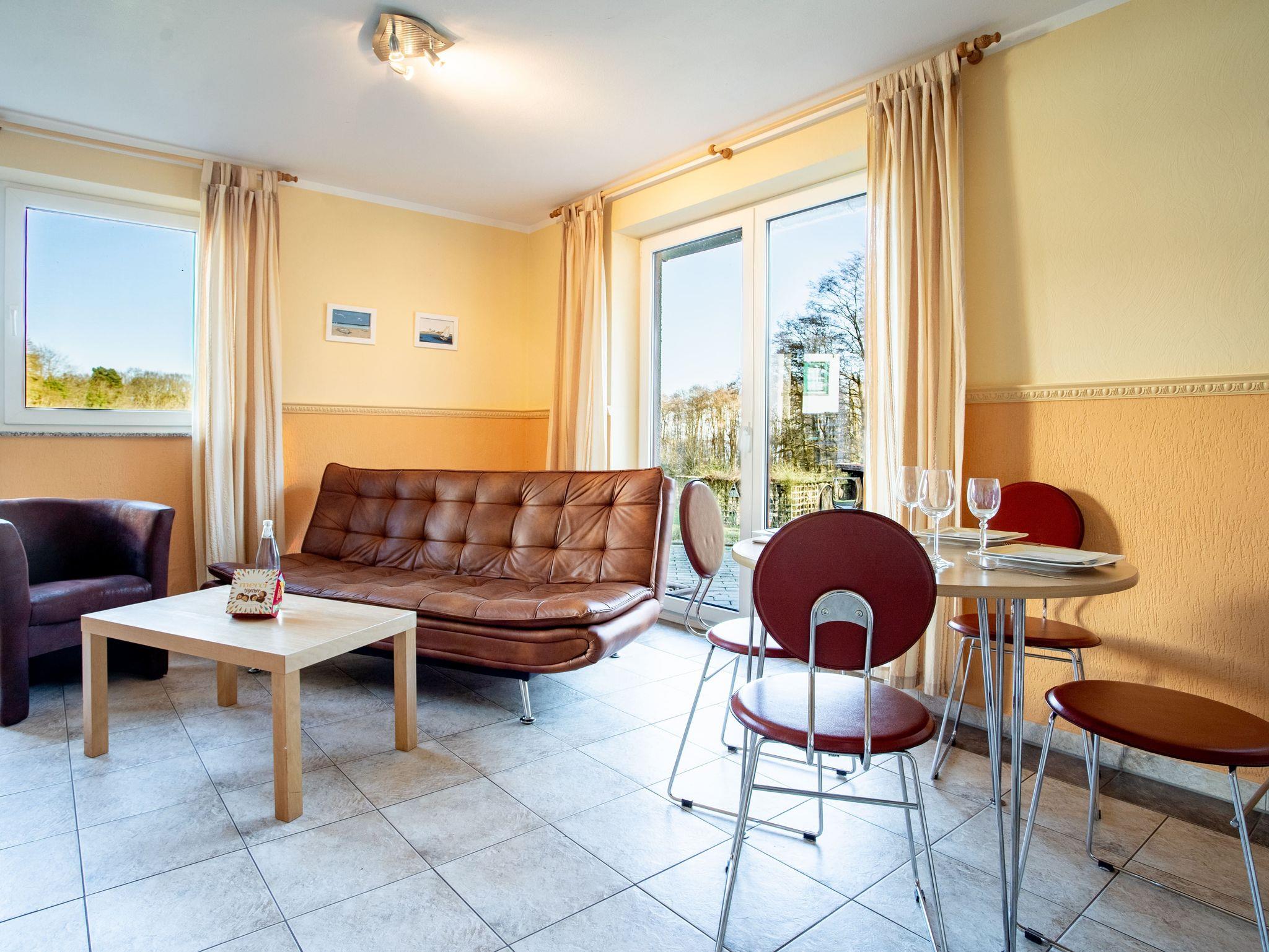 Unsere 50 m² große Ferienwohnung inkl. privater Terrasse mit seitlichem Bodden-/Wasserblick, Kamin, Parkplatz und Fahrradabstellraum heißt Sie herzlich willkommen.