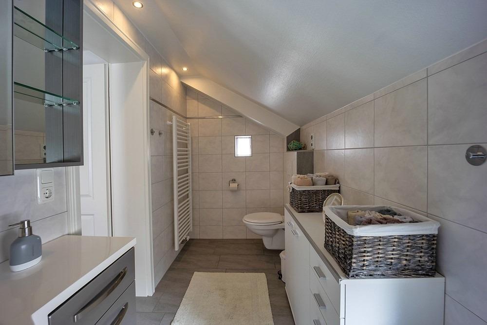 Ein Kinderbettchen stellen wir auf Wunsch kostenlos zur Verfügung. Bettwäsche und Handtücher sind vorhanden und im Preis inbegriffen. Die Küche besteht aus einer modernen Küchenzeile mit Backofen, Kühlschrank mit Gefrierfach, Geschirrspüler sowie Mikrowelle, Kaffeemaschine, Wasserkocher, Mixer und Eierkocher. Das Badezimmer ist mit begehbarer Dusche und WC ausgestattet. Eine Waschmaschine befindet sich im Hauswirtschaftsraum neben der Küche