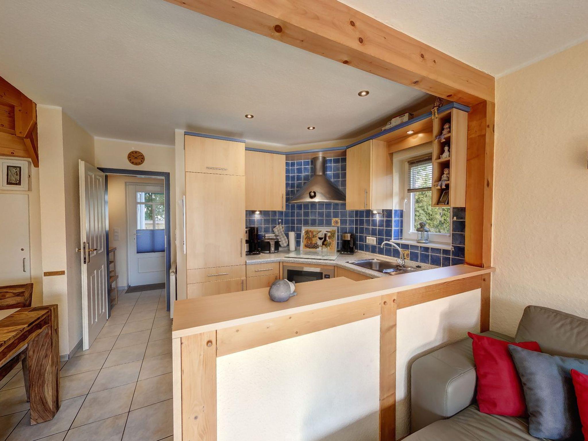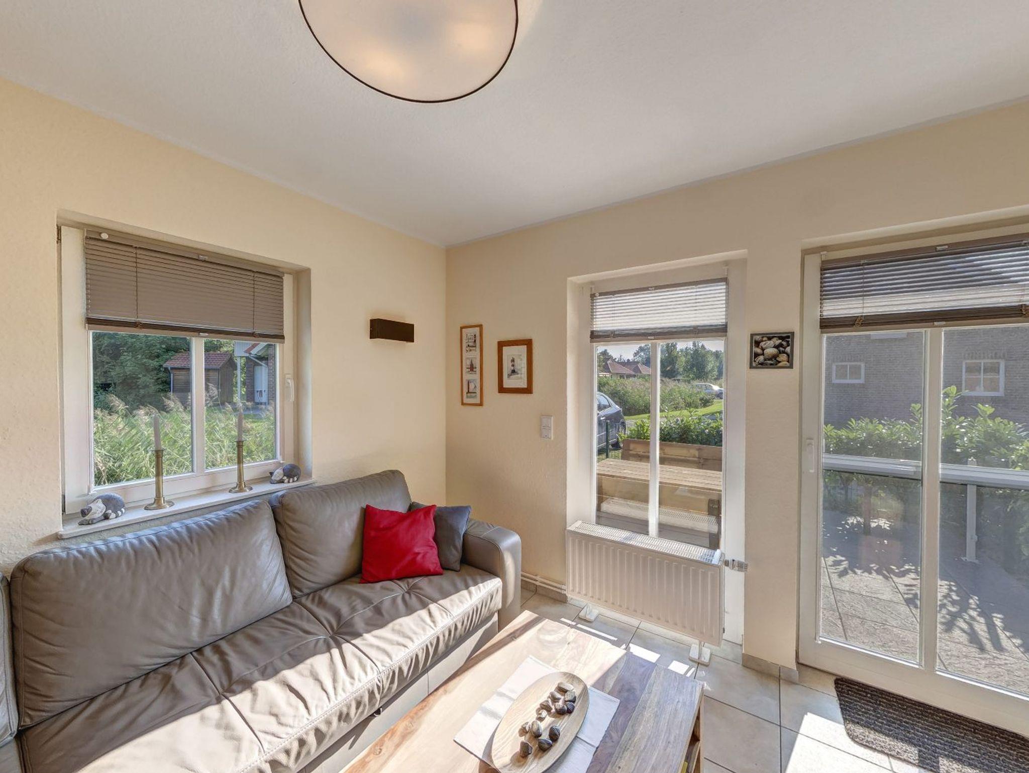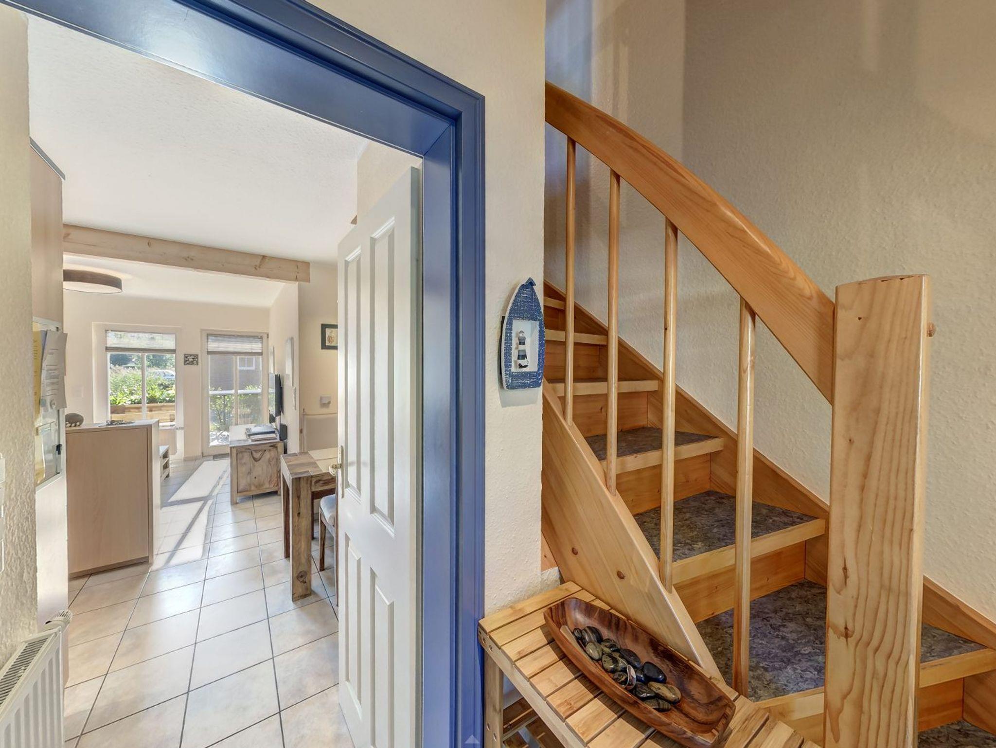 Anschließend an das Wohnzimmer befindet sich eine komplett eingerichtete Küche. Auch erwartet Sie hier eine Terrasse. Genießen Sie beim Frühstücken oder Relaxen die Sonnenstrahlen und die frische Nordseeluft! Aber auch außerhalb der Hautsaison ist das Haus ein idealer Ausgangspunkt für Ihre Erkundungen an der Nordseeküste.