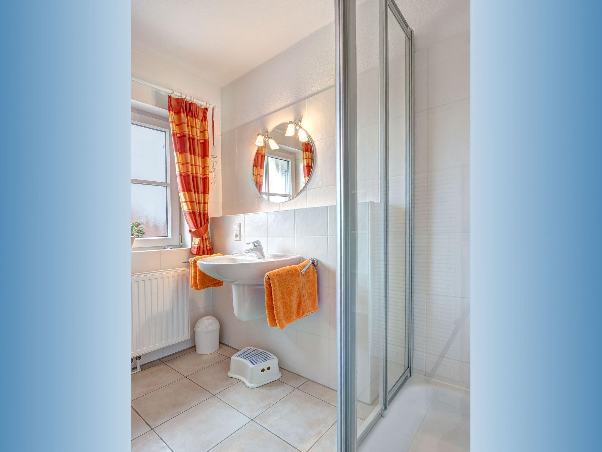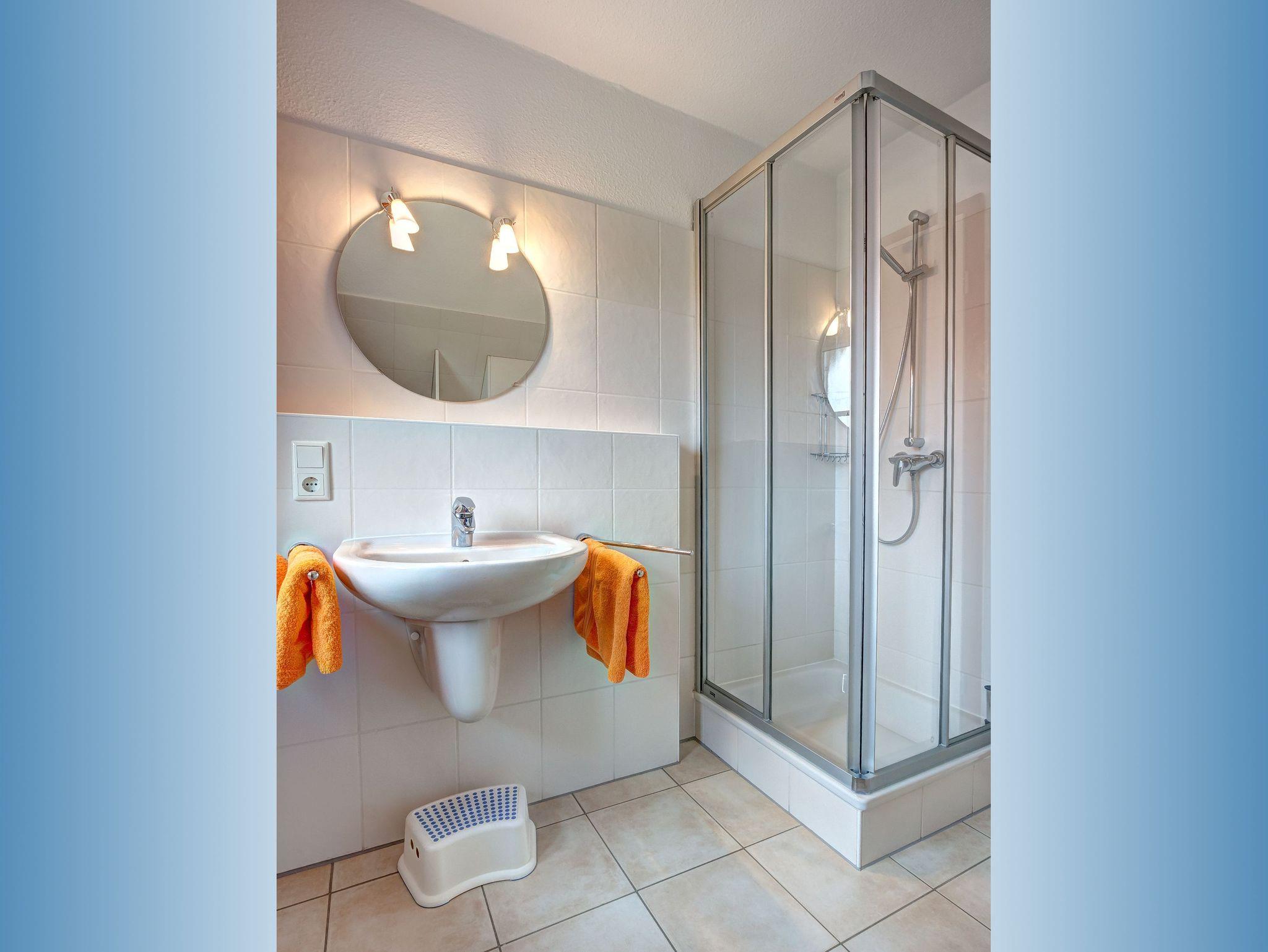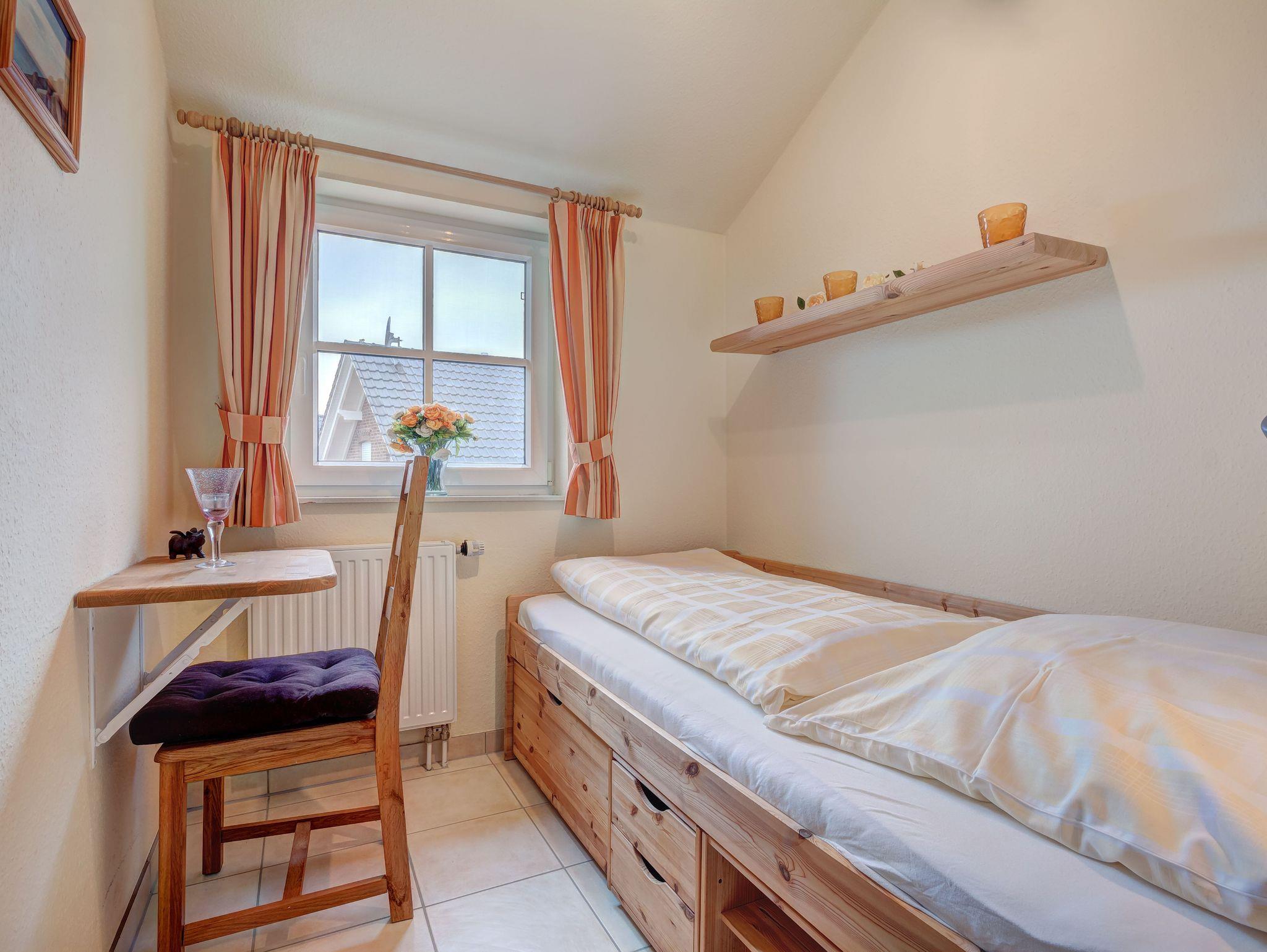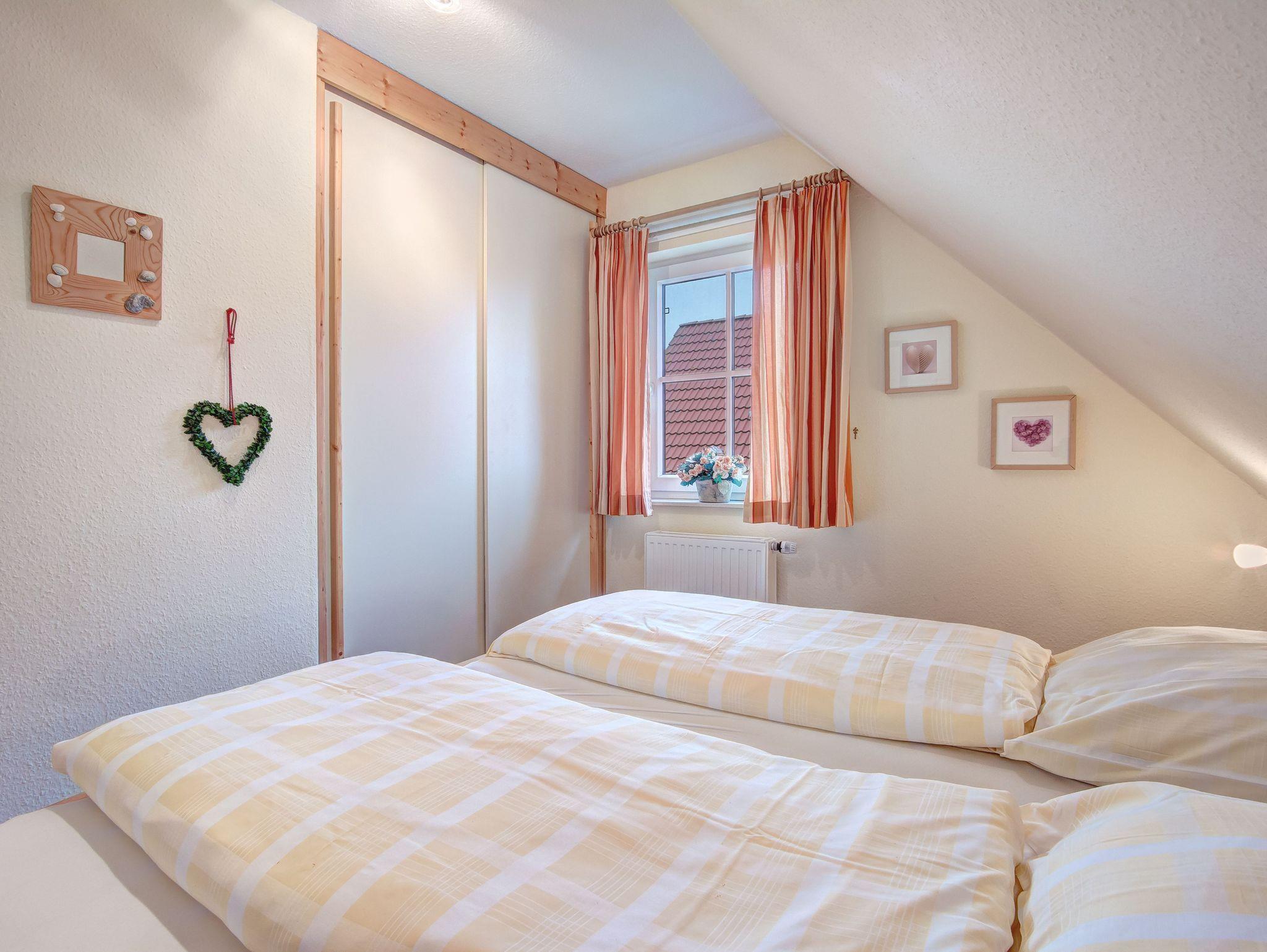 Die Schlafräume finden sich im Oberschoß. Das erste Schlafzimmer verfügt über ein Doppelbett. Im 2. Schlaffzimmer stehen 2 Einzelbetten. Der 3. Schlafraum weist 1 Einzelbett auf. Des Weiteren finden Sie hier oben ein zweites Bad mit Dusche und WC.