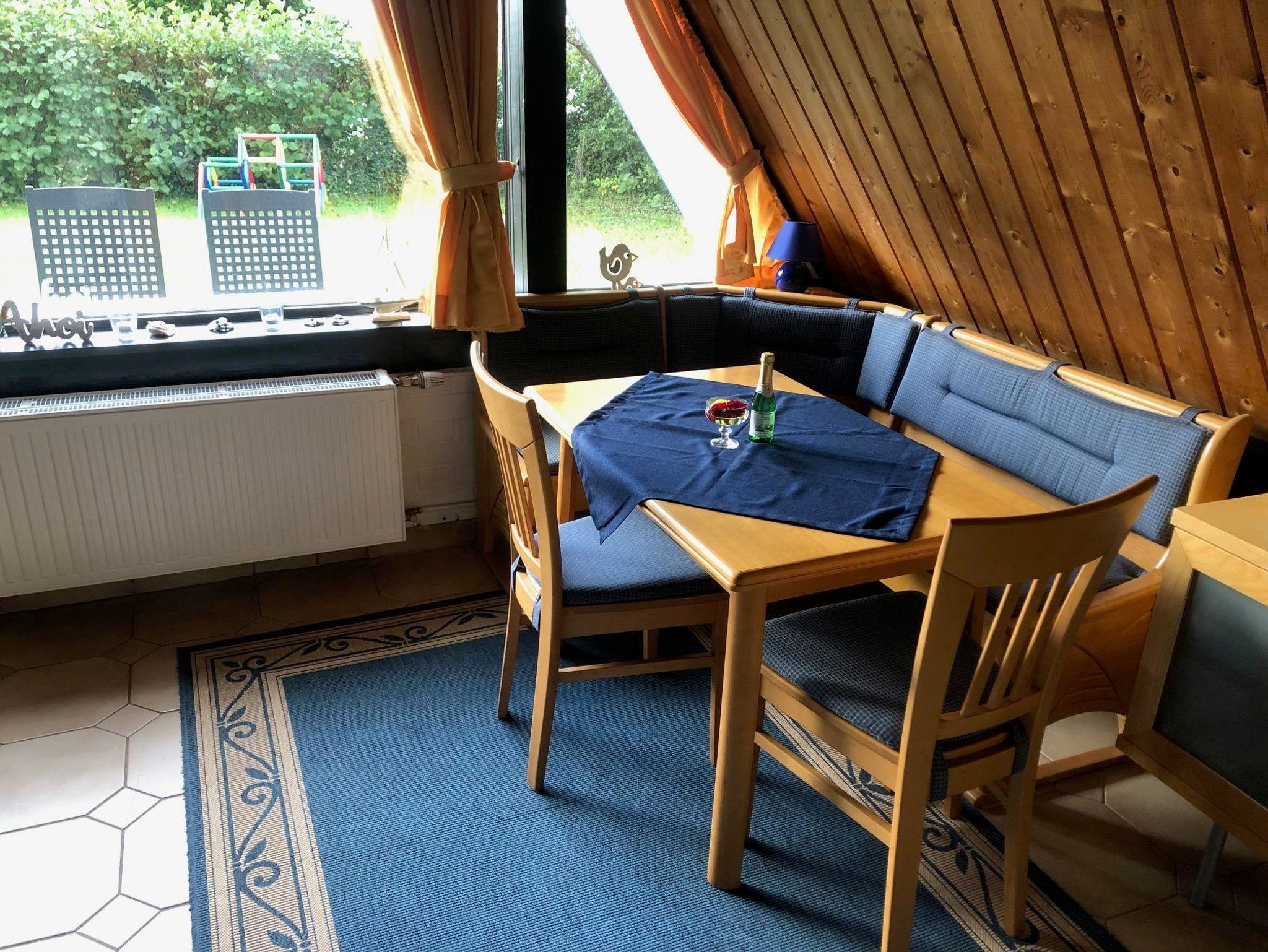 Das allergikerfreundliche Nichtraucher-Nurdachhaus mit Gaszentralheizung liegt ruhig und deichnah in der Feriensiedlung Achtern Diek in Burhave. Es verfügt im gefliesten Erdgeschoss über ein Wohnzimmer (Sat-TV mit DVD-Player, Stereoradio) mit großer Fensterfront, eine Ess- und Sitzecke mit integrierter Schlafcouch, ein Badezimmer mit Dusche und Fön, ein separates WC, eine Küche (4-Plattenherd, Mikrowelle mit Backofenfunktion, Kaffeemaschine, Toaster, Wasserkocher, Geschirrspüler). Eine Raumspartreppe (Kinderschutzgitter ist montiert) führt in das mit Laminat ausgelegte Obergeschoss mit einem Doppel- und einem Zweibettzimmer. Einbauschränke sind in beiden Geschossen vorhanden. Eine möblierte Terrasse mit Markise, Gartengrill und eine Liegewiese gehören zum Haus.