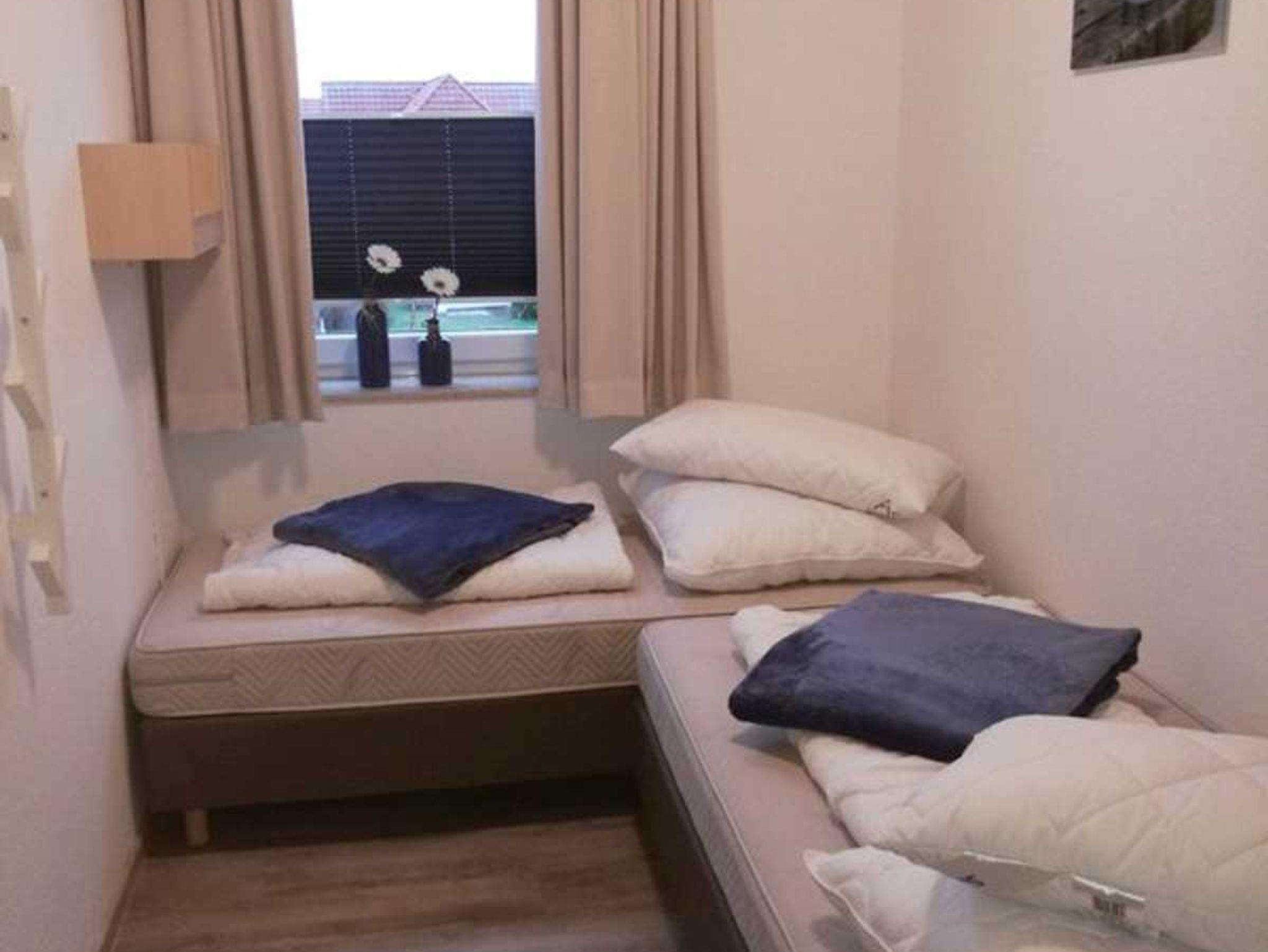 Ein Schlafzimmer ist mit einem Doppelbett und TV (verstellbare Lattenroste), das andere mit zwei einzelnen Boxspringbetten ausgestattet. Die Fenster in beiden Schlafzimmern lassen sich verdunkeln.