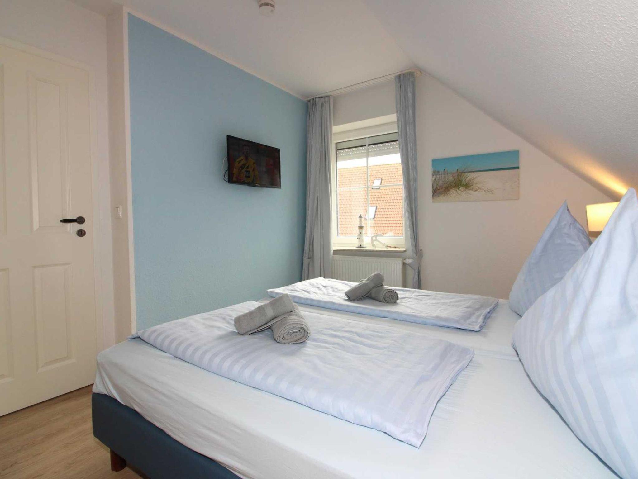 Im Obergeschoss liegt die hauseigene Sauna inkl. Ruhemöglichkeiten sowie Badezimmer (Haarföhn vorhanden). Weiterhin befinden sich hier zwei Schlafräume, einer ausgestattet mit Doppelbett, Kleiderschrankwand und 28' HD-TV, der 2.te mit zwei getrennten Betten und Wandschrank.