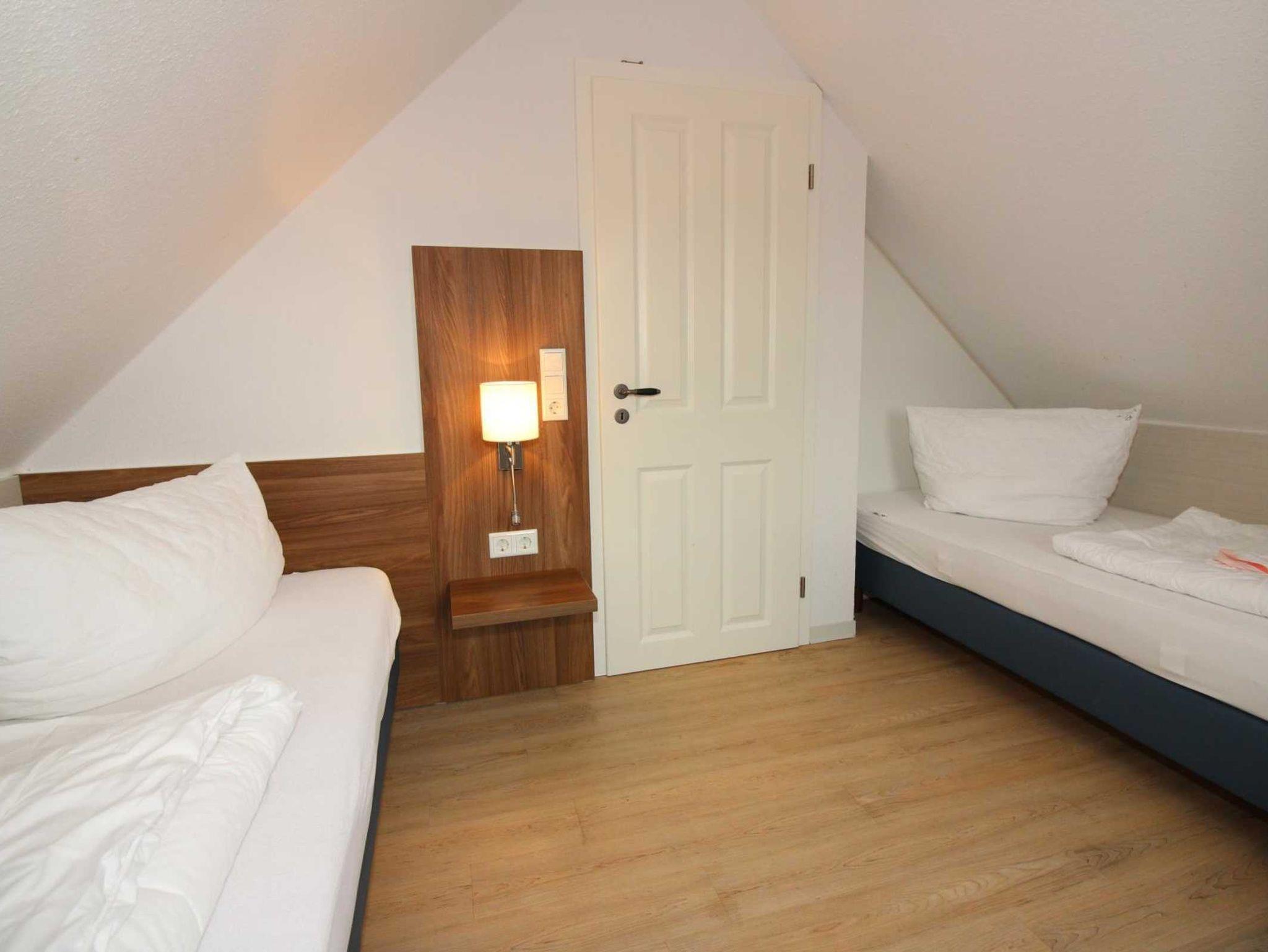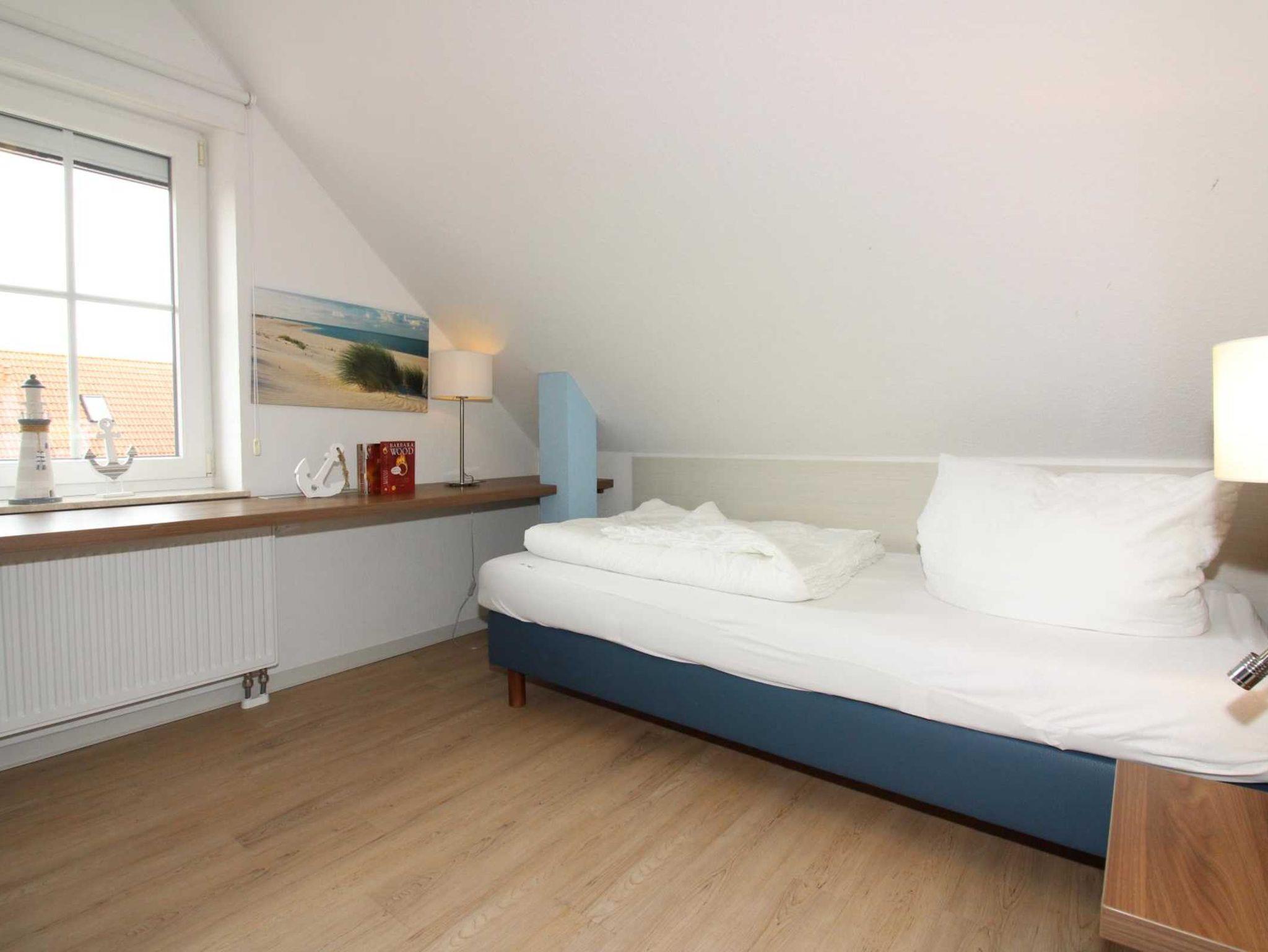 Im Dachgeschoss befindet sich ein weiterer Schlafraum mit zwei getrennten Betten, Kleiderschrank und Schreibtisch.