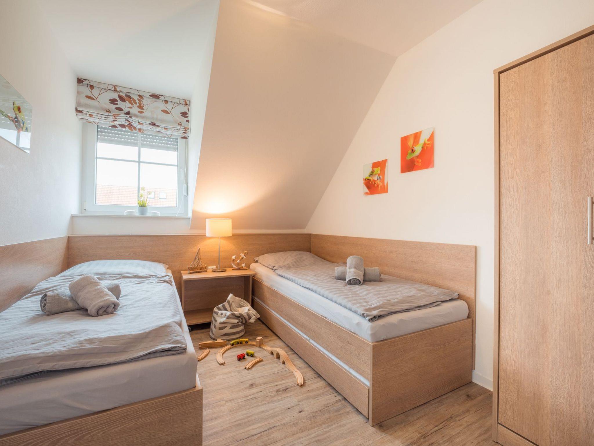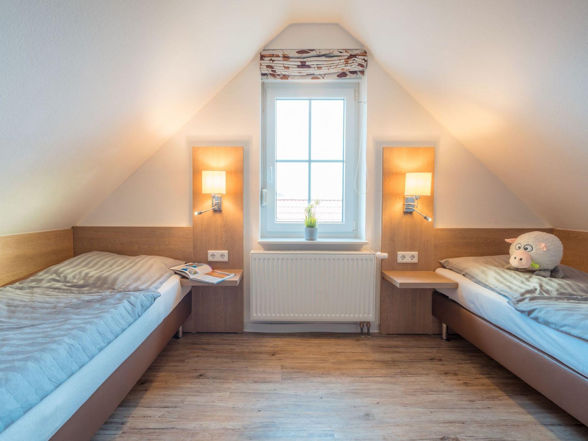 Ein Schlafraum mit zwei Einzelbetten, 26“HD-TV
