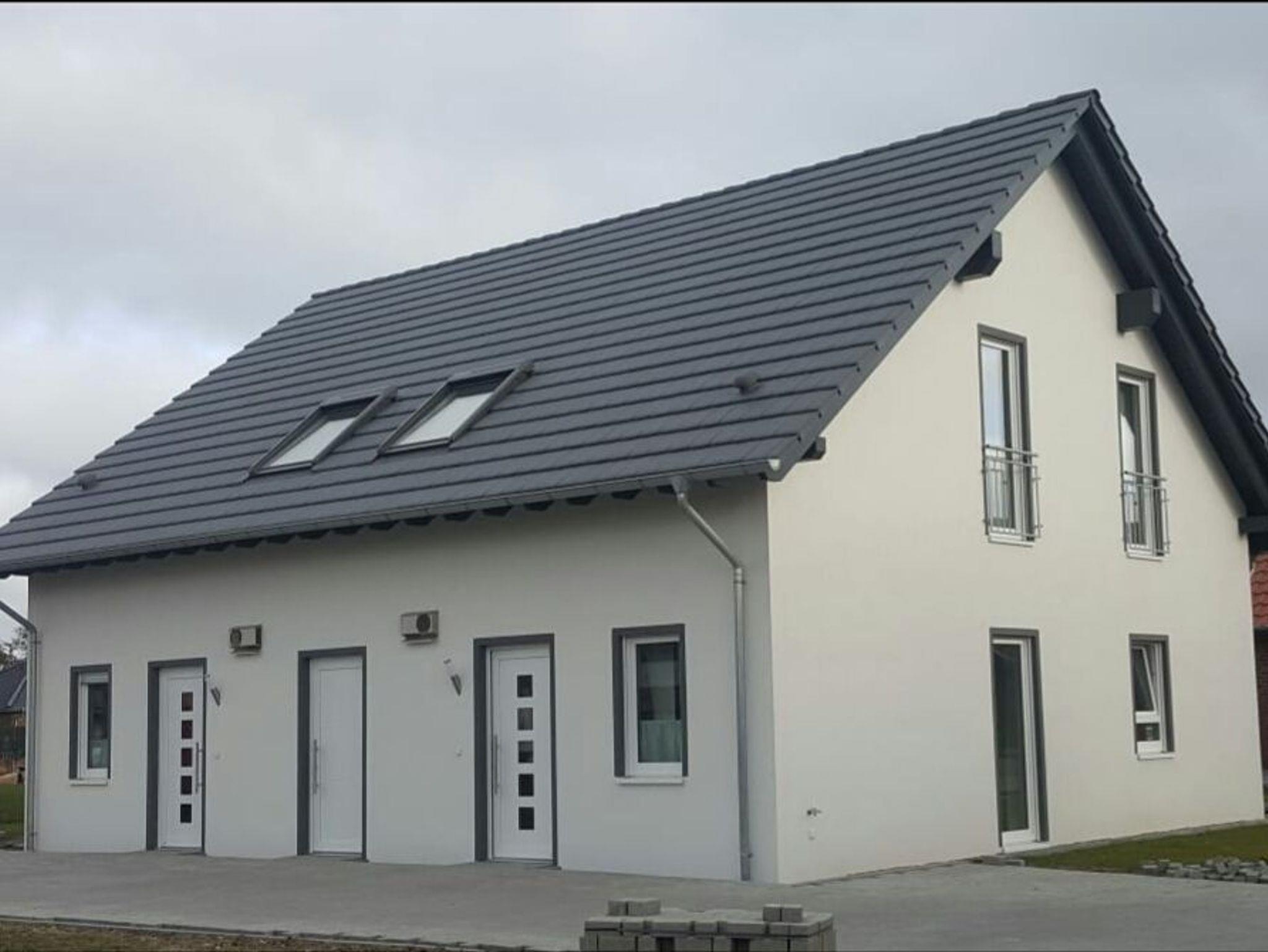 Das gesamte Haus ist mit einer Fußbodenheizung ausgestattet und verfügt über elektrische Außenrolläden und je einem PKW-Stellplatz.