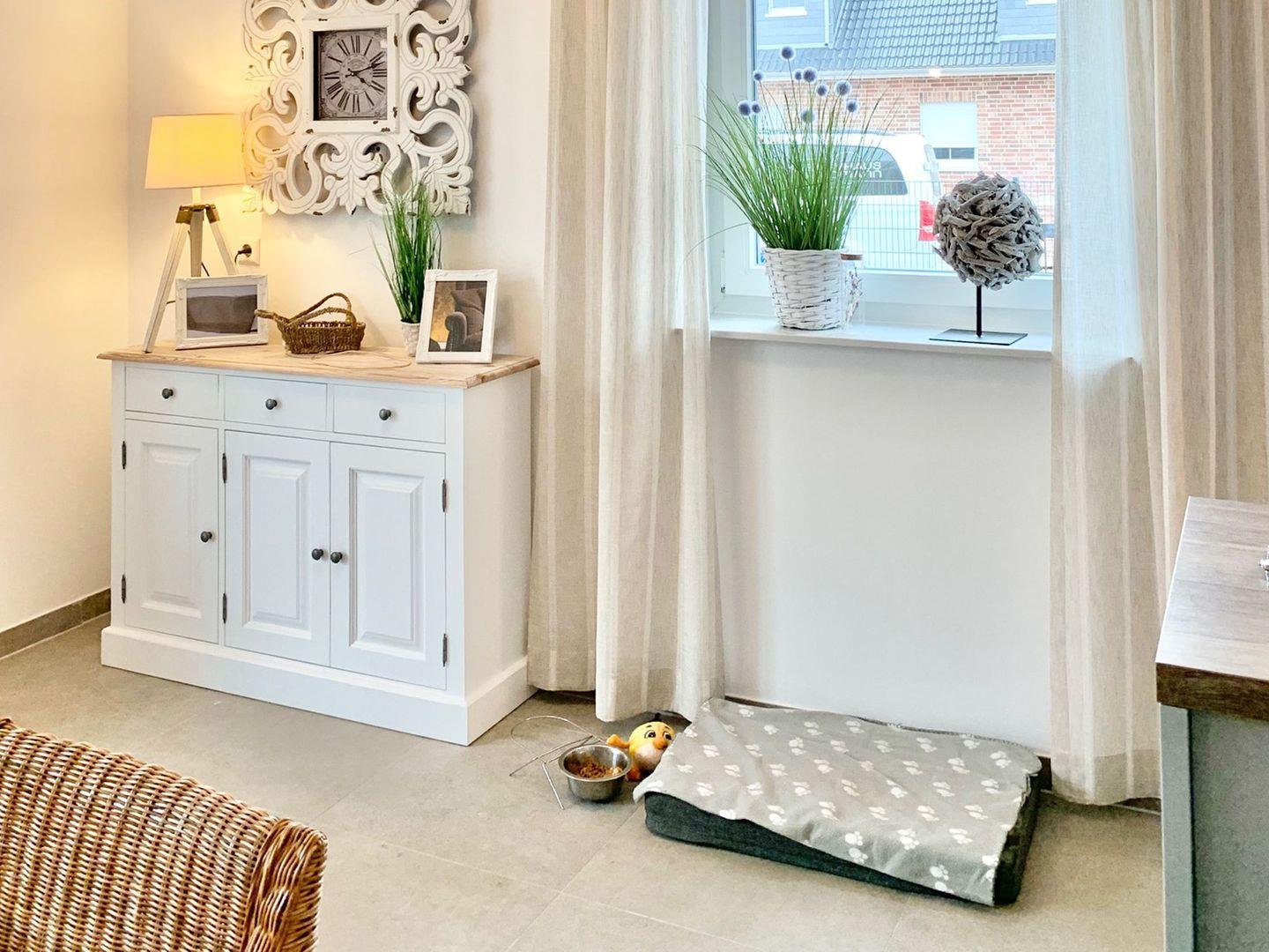 Vor allem gedacht haben wir an die Vierbeiner. Für die Fellnasen ist alles vorbereitet (Hundenäpfe, Hundedecke). Bis 2 Hunde sind je Haushälfte herzlich Willkommen.