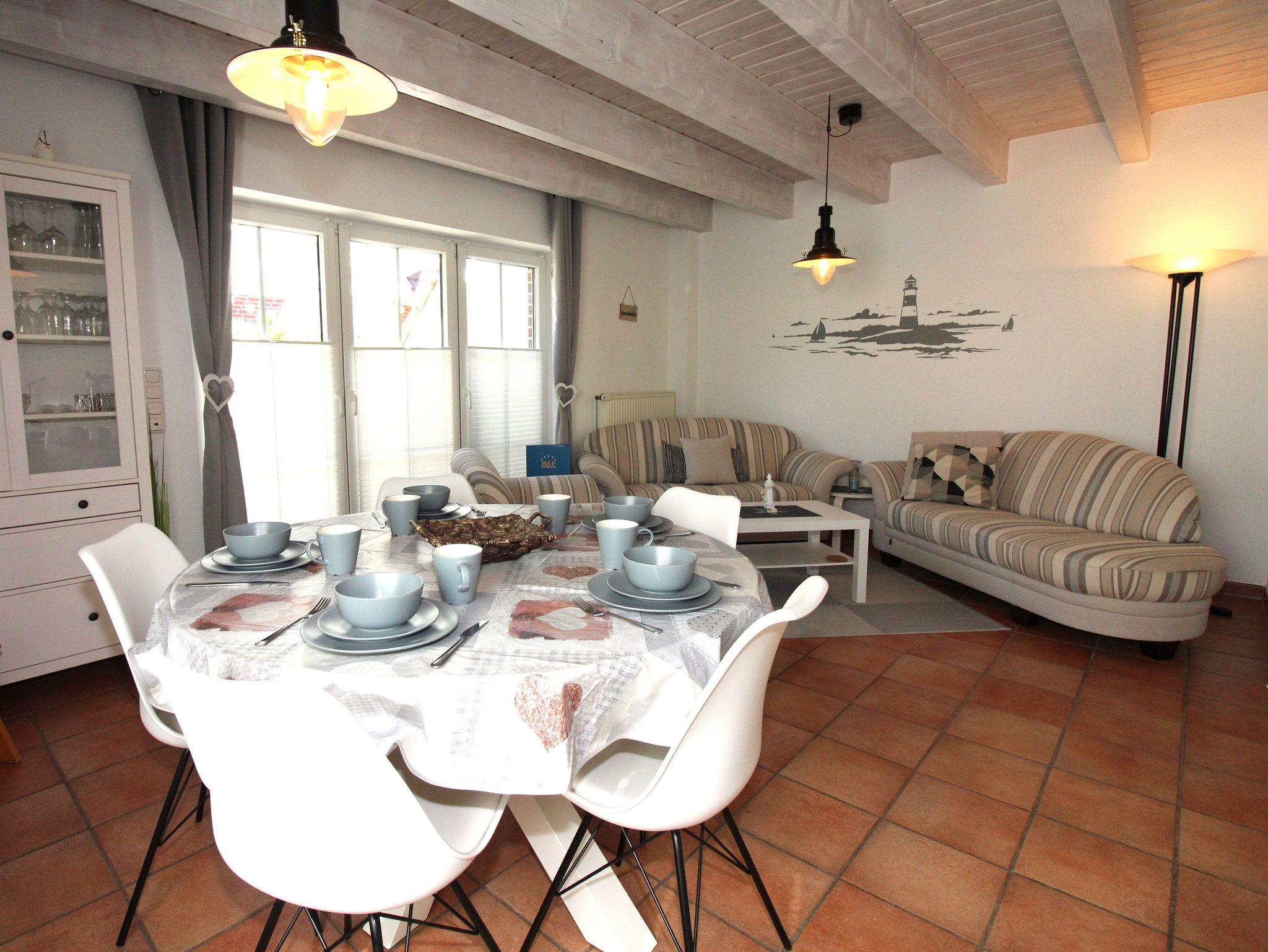 Das Doppelhaus liegt im Seepark Burhave. In diesem Haus befindet sich unsere Ferienwohnung für fünf Personen. Es hat eine Terrasse und einen kleinen Garten. Ein Parkplatz befindet sich ebenfalls auf dem Gelände.