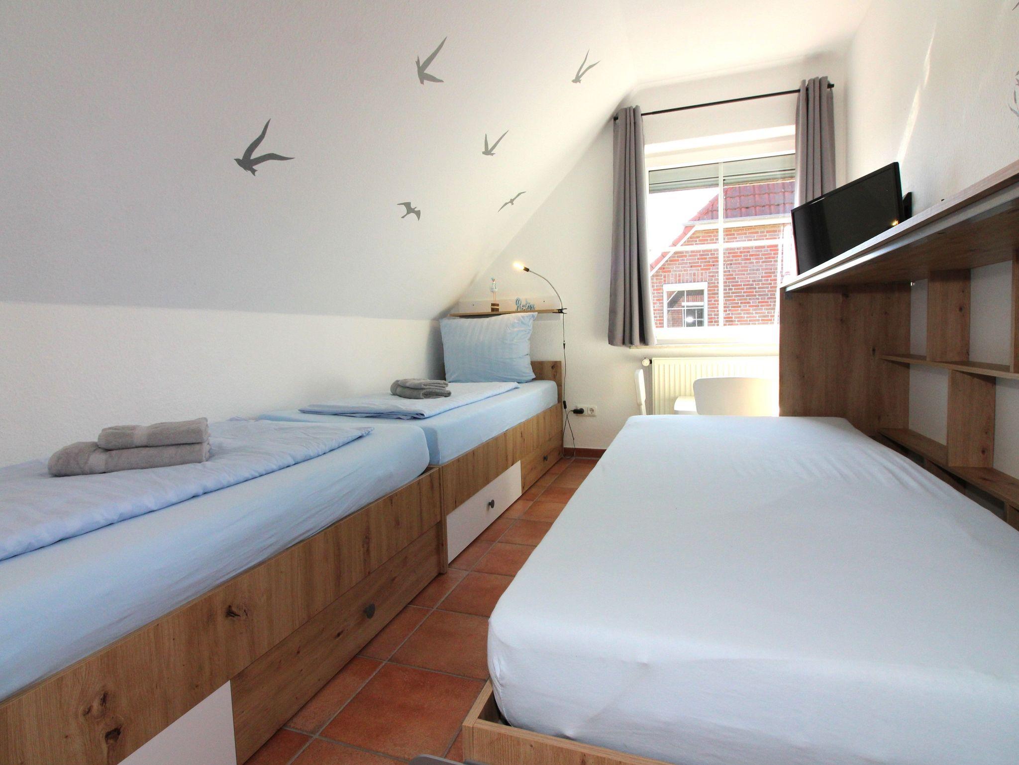 Ein Schlafraum mit drei getrennten Betten