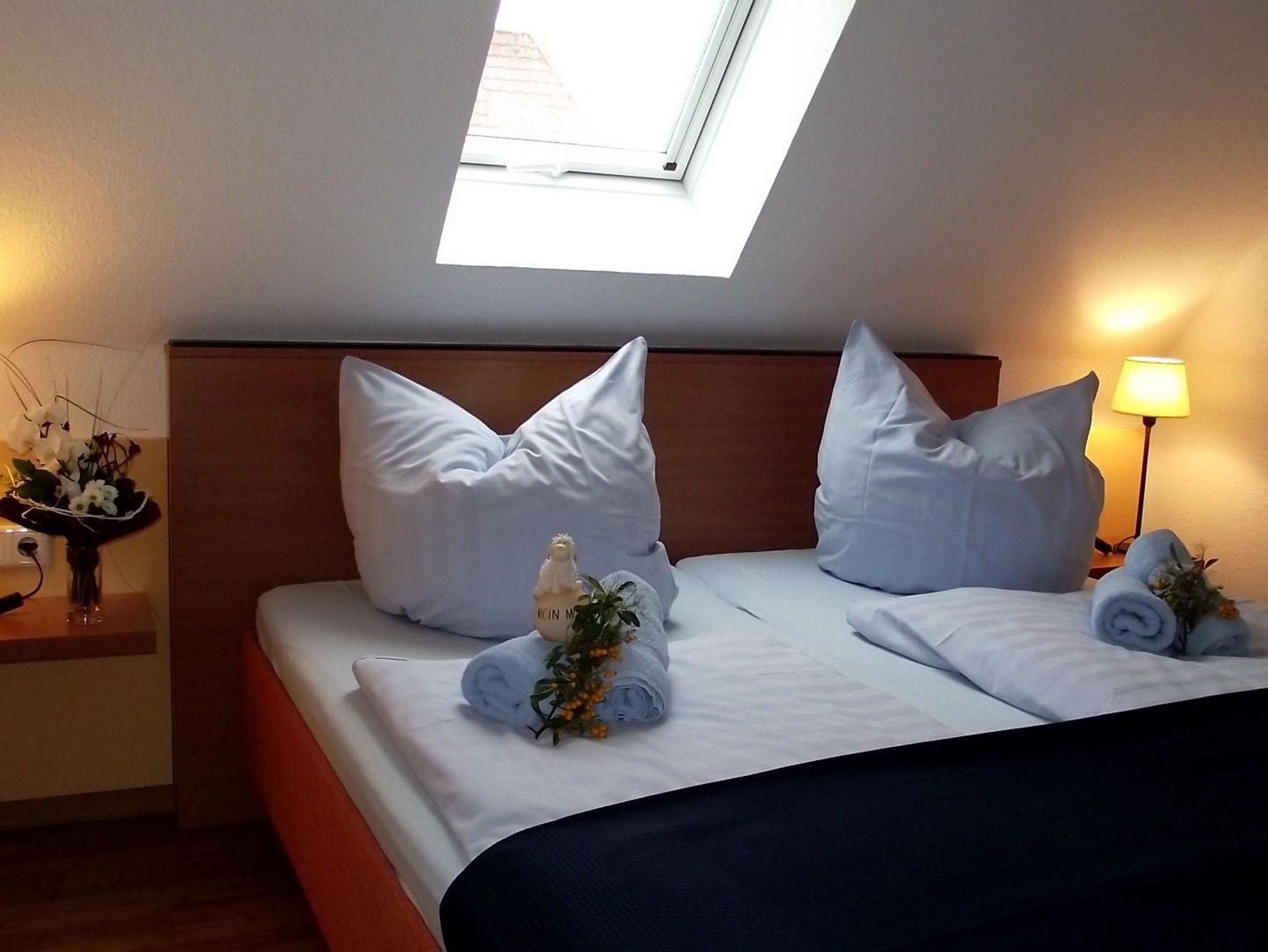 Der ausgebaute, helle Spitzboden mit zwei Dachflächenfenstern verfügt über zwei Betten und einen
