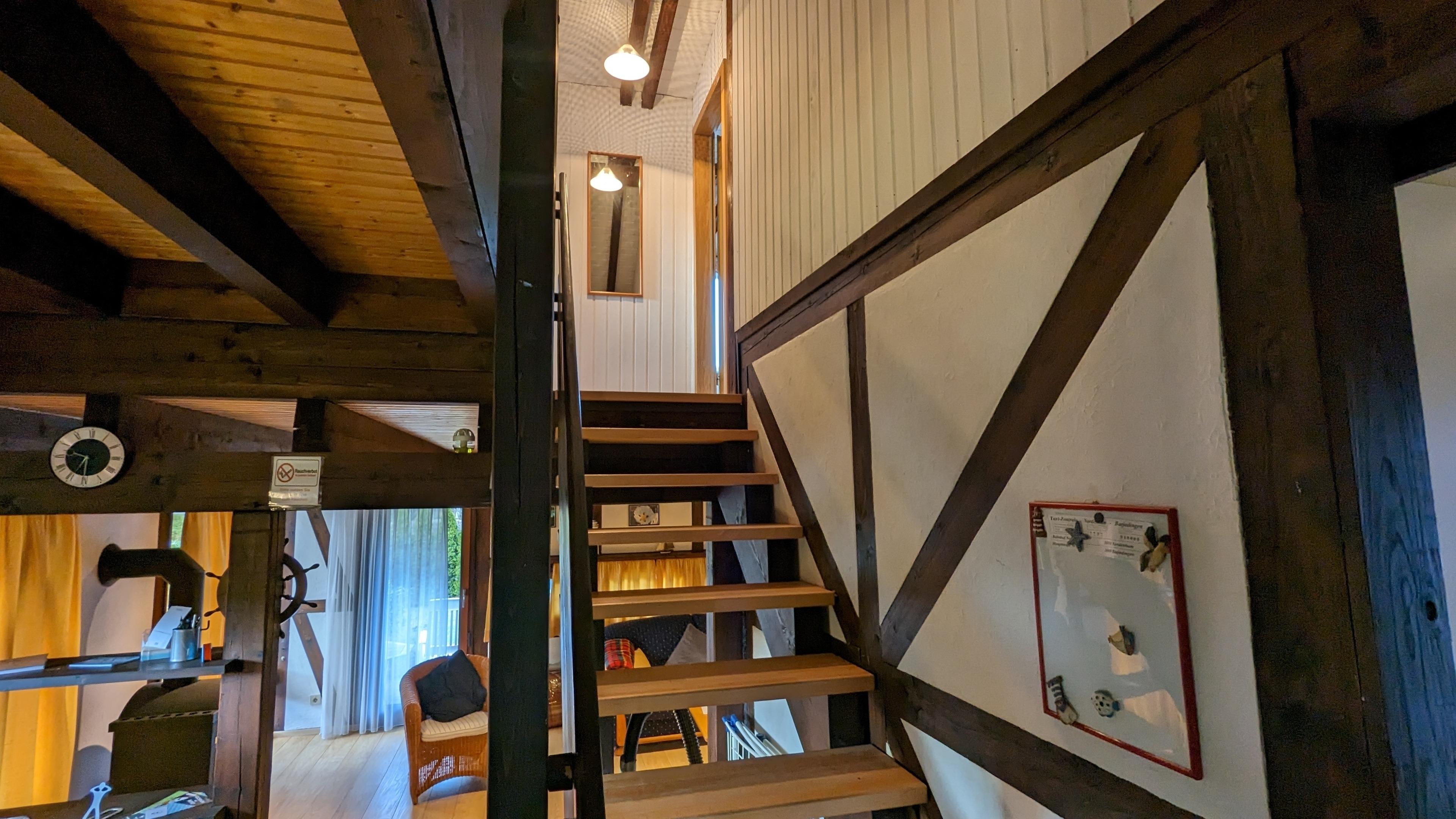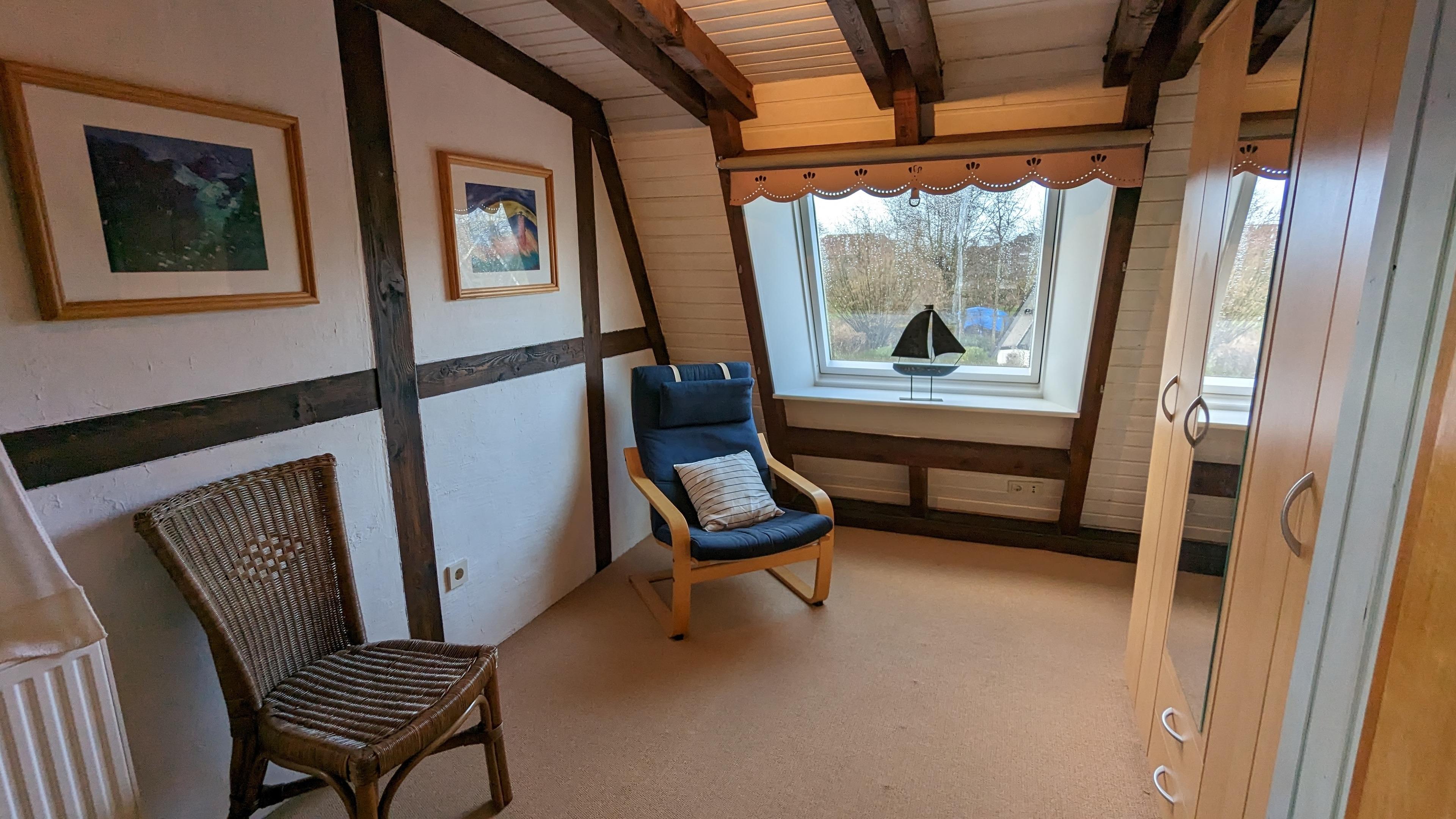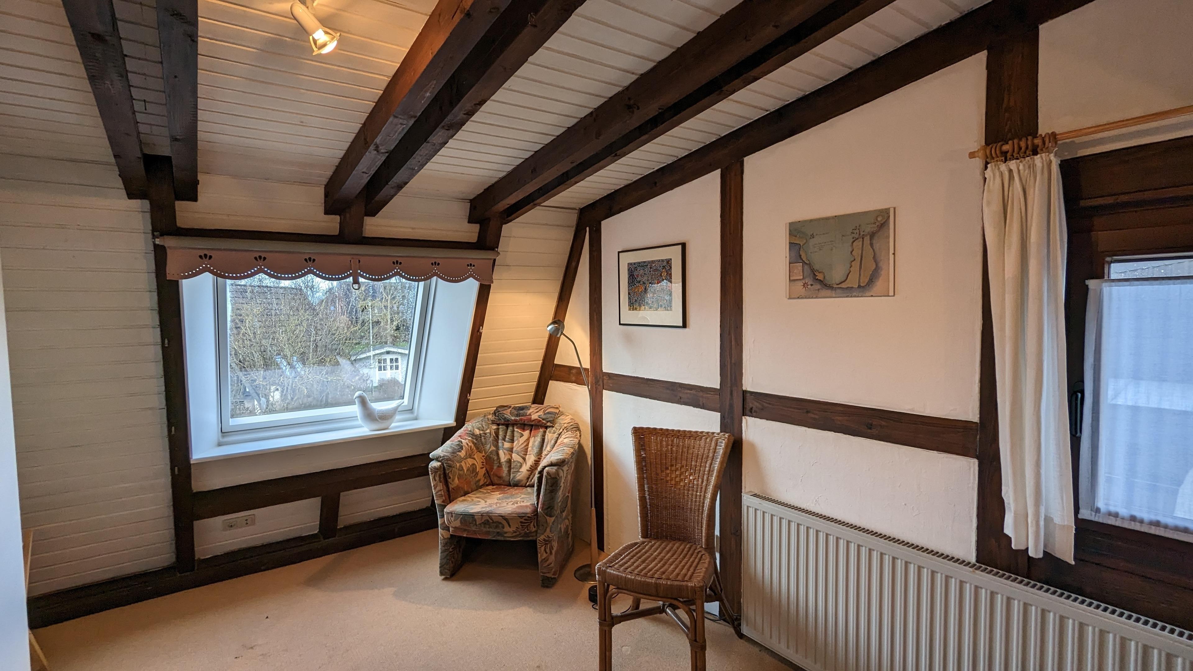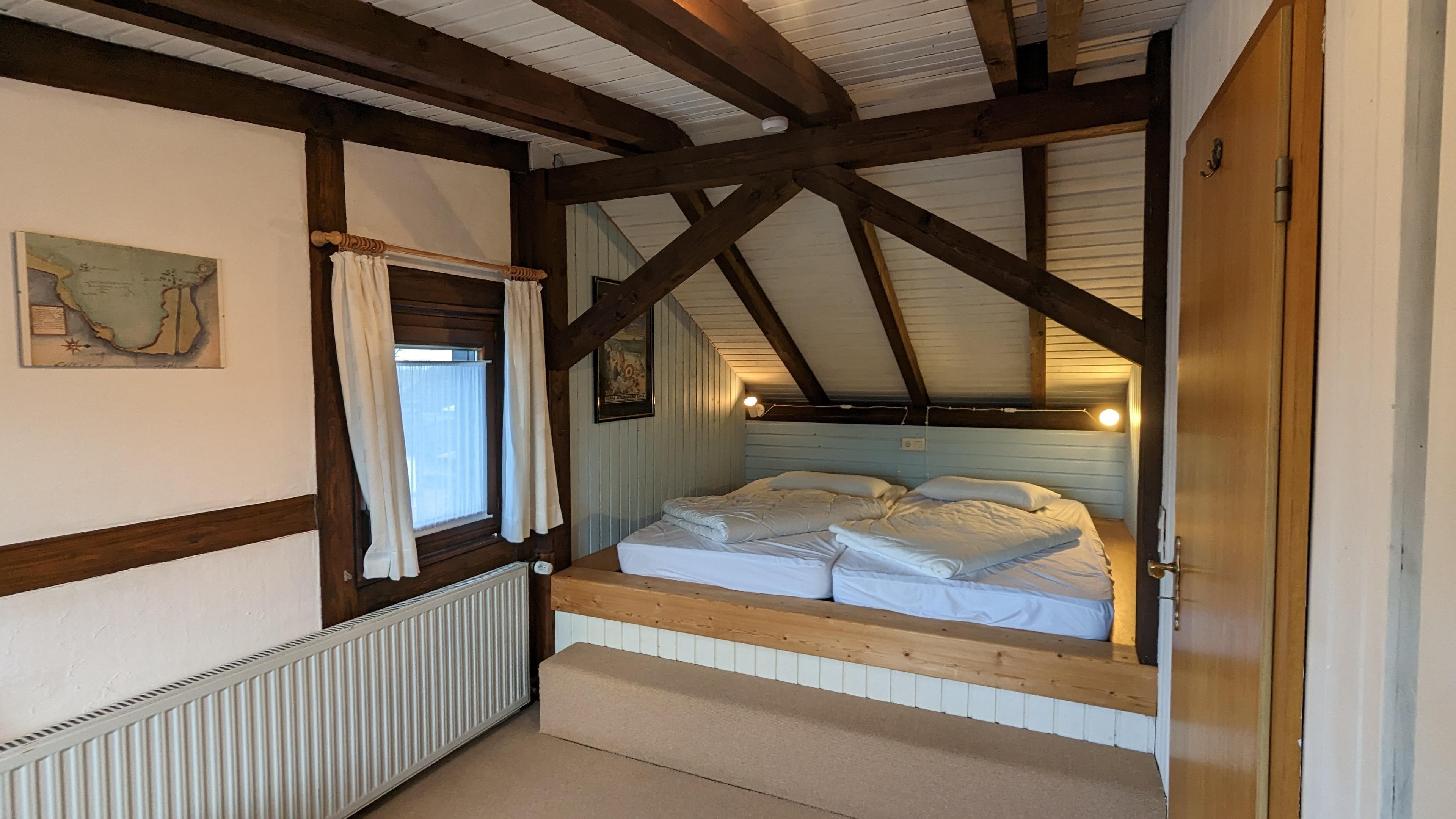 Im Obergeschoss des Ferienhauses befinden sich die 2 Schlafzimmer mit jeweils einem 2,00 x 2,00m Bett.
