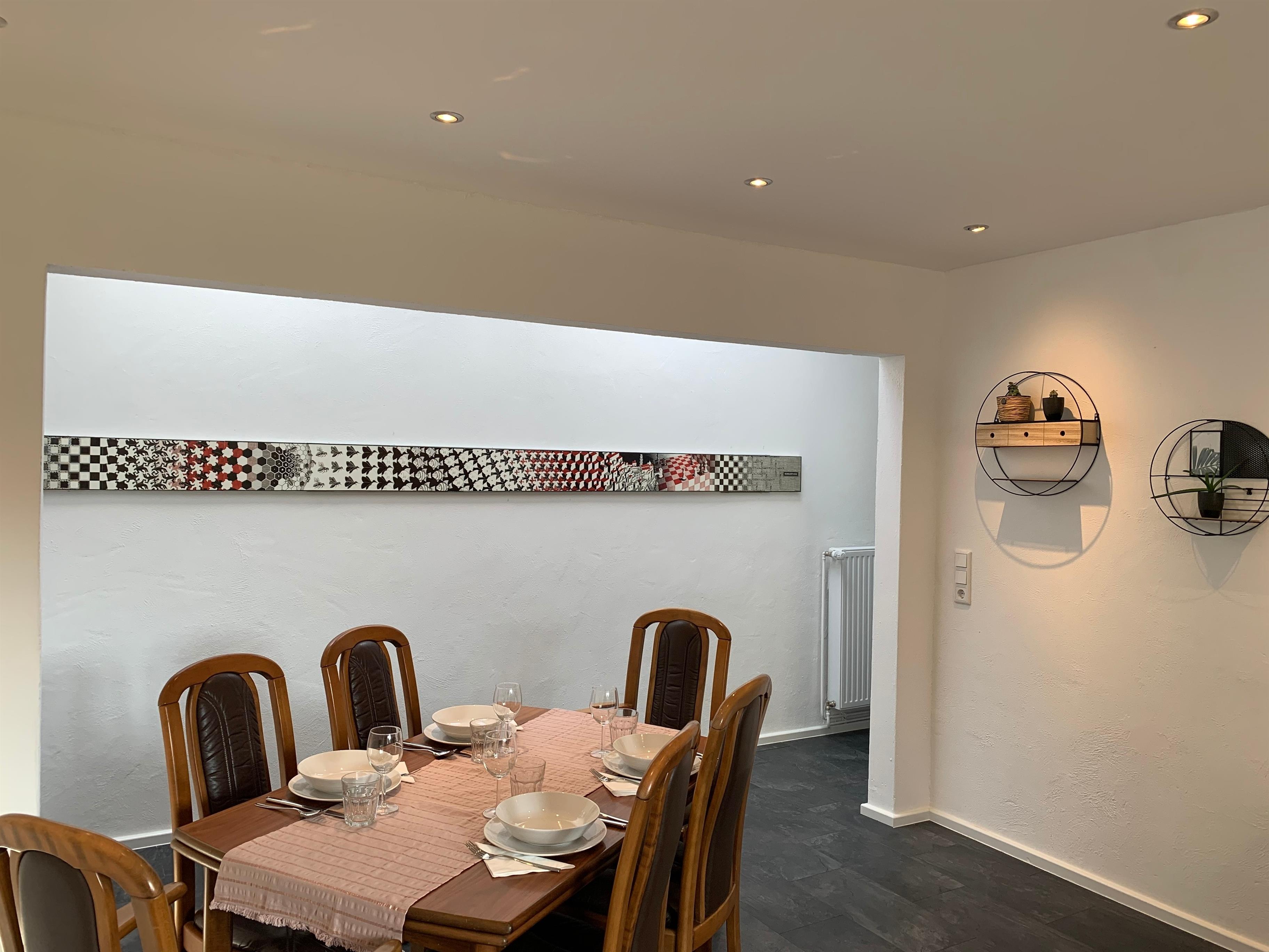 Die 2020 sanierte Wohnung ist ca. 90 qm groß, ist ein eigenständiges, ebenerdiges Gebäude im Herzen Burhaves und bietet regulär Platz für vier bis sechs Personen. Sie verfügt über zwei Schlafzimmer, ein Wohn- & Esszimmer, eine Küche, ein Bad, ein Gäste-WC und eine geräumige, überdachte Terrasse mit Blick in den grünen Garten mit Spielhaus für Kinder.