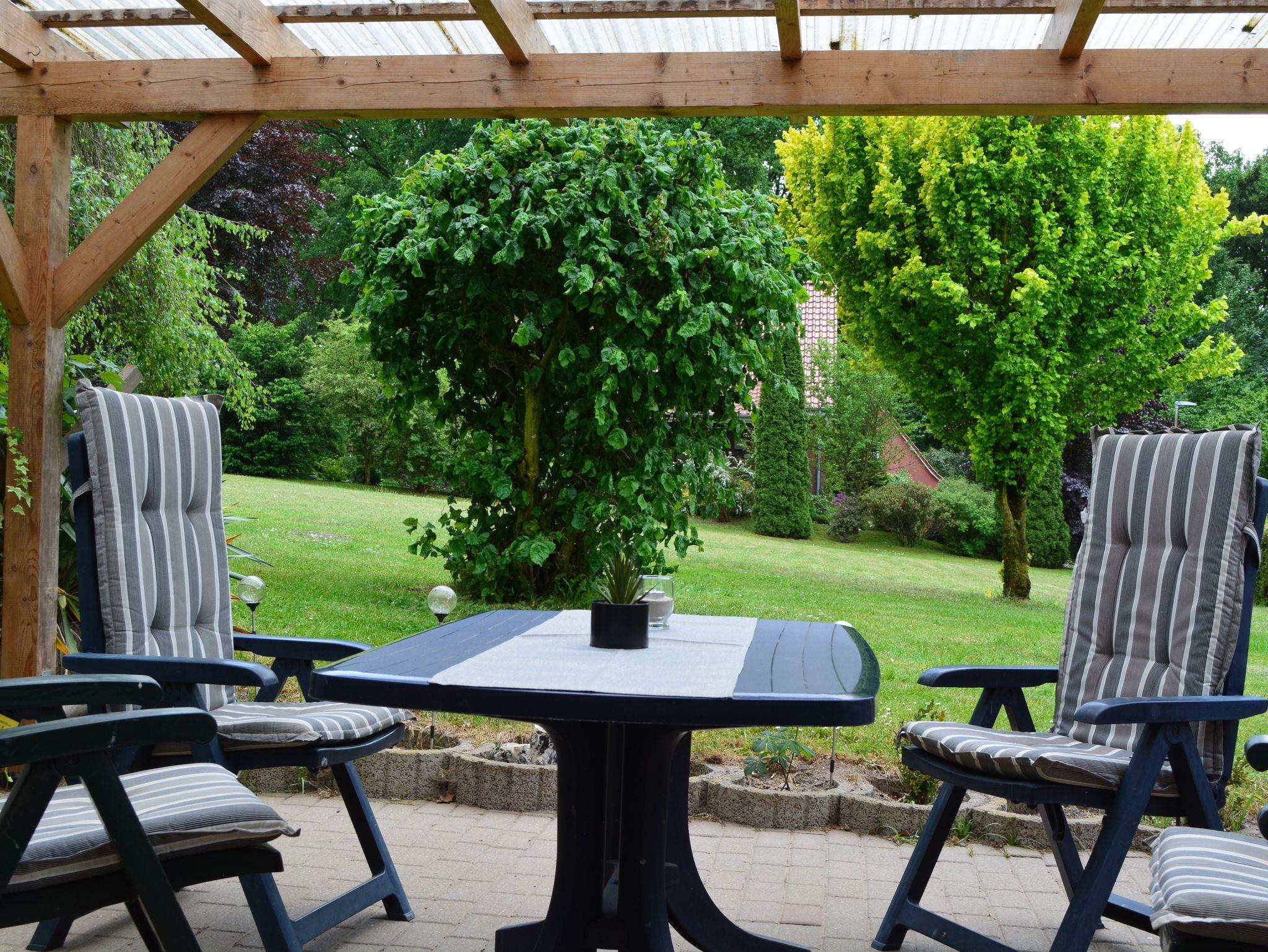 Auf der überdachten, möbelierten Terrasse können sie gemütlich sitzen und auch grillen. Ihr Fahrrad können Sie hier ebenfalls geschützt abstellen. Im Badezimmer mit WC gibt es eine Badewanne sowie eine Dusche, ein Föhn ist auch vorhanden. Die Küche ist für 6 Personen ausgestattet. Wasserkocher ,Toaster, Filter-Kaffeemaschine Microwelle sowie einen Airfryser finden sie hier. Auf dem nahegelegenen Spielplatz können sich die Kleinen austoben. Für den kleinen und großen Hunger findet sich sicher für jeden Geschmack etwas im fußläufig erreichbaren Restaurant beim Golfplatz. Frische Brötchen erhalten sie beim Bäcker im Nachbardorf Moisburg, ca.2 km von der Ferienwohnung entfernt.