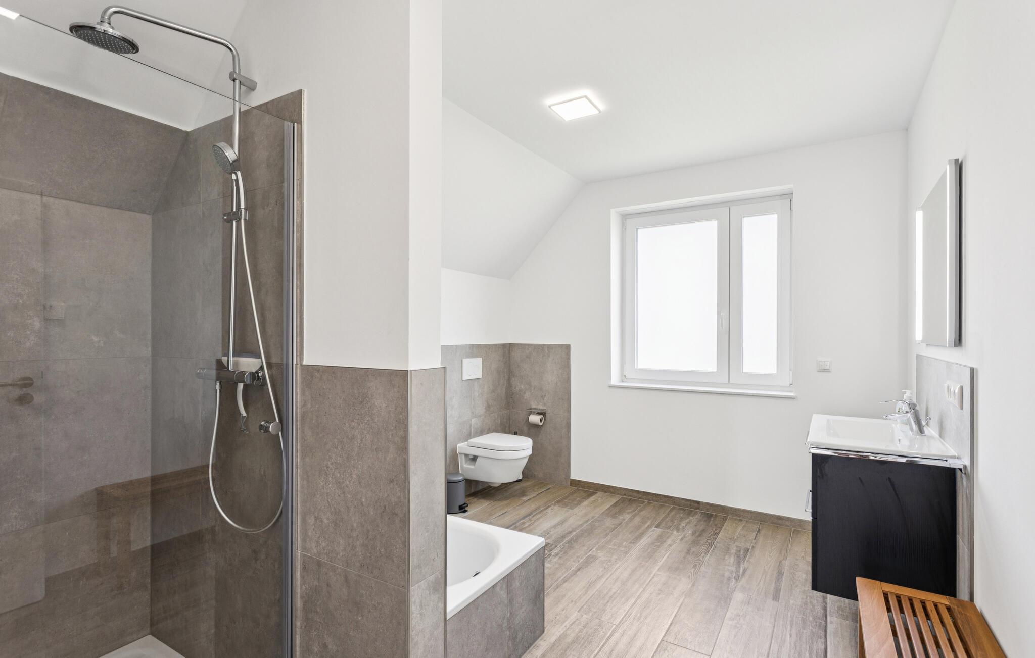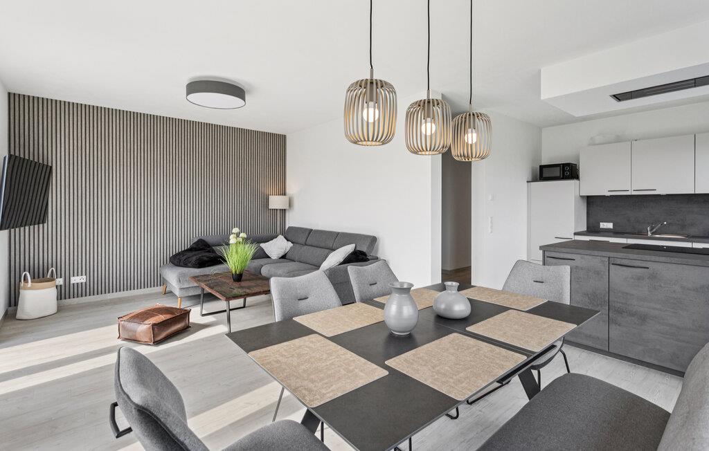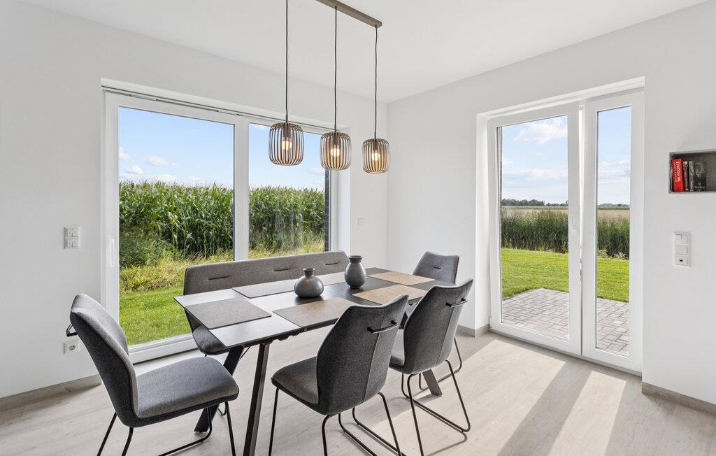 Oplev en afslappende ferie i dette komfortable feriehus, der kombinerer moderne livsstil med en idyllisk beliggenhed. Her kan I nyde freden, masser af plads og nærheden til Nordsøen. Læn jer tilbage i den stilfuldt møblerede opholdsstue med en behagelig sofa, fladskærms-tv og gulv-til-loft-vinduer, der lukker masser af naturligt lys ind. Tilbered lækre retter i køkkenet med moderne apparater og nyd måltider ved det store spisebord med udsigt over de naturlige omgivelser. Brug saunaen til afslappende wellness-øjeblikke efter en begivenhedsrig dag.