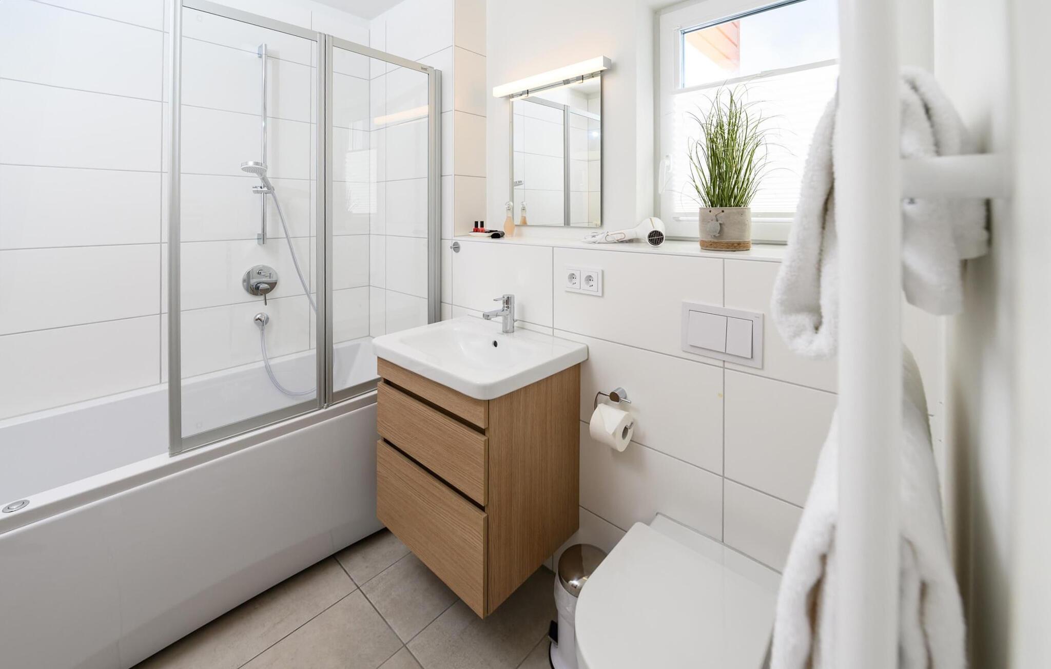 - WC. Varmt og koldt vand, Bruser og badekar