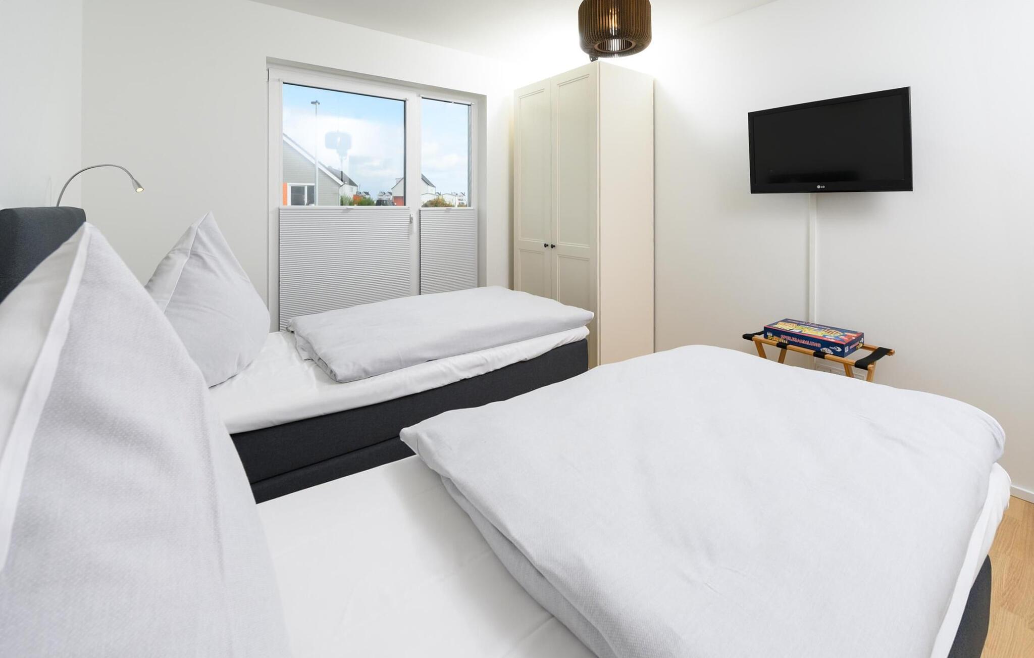To soveværelser tilbyder plads til fire personer og er hver udstyret med et ekstra fladskærms-tv og hjemmeunderholdningsprogram.
