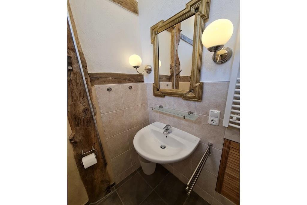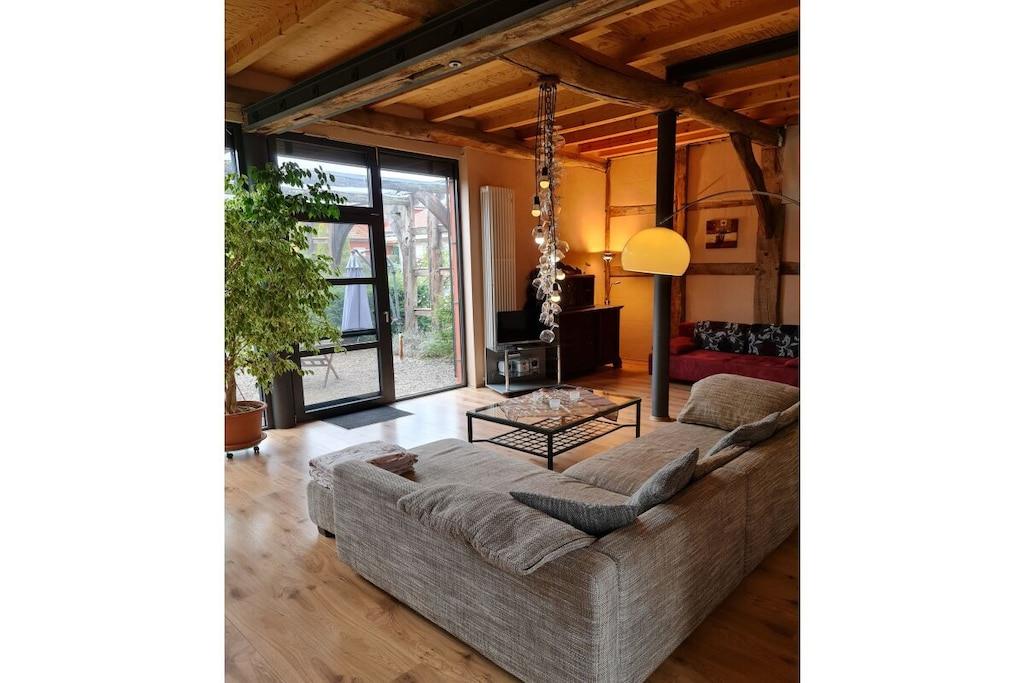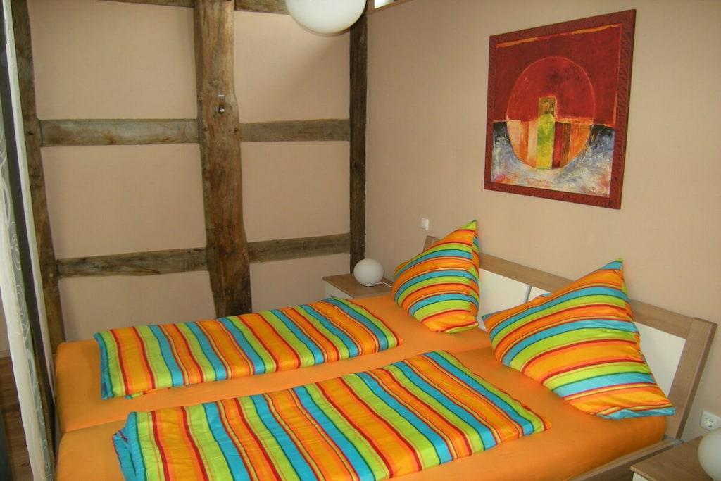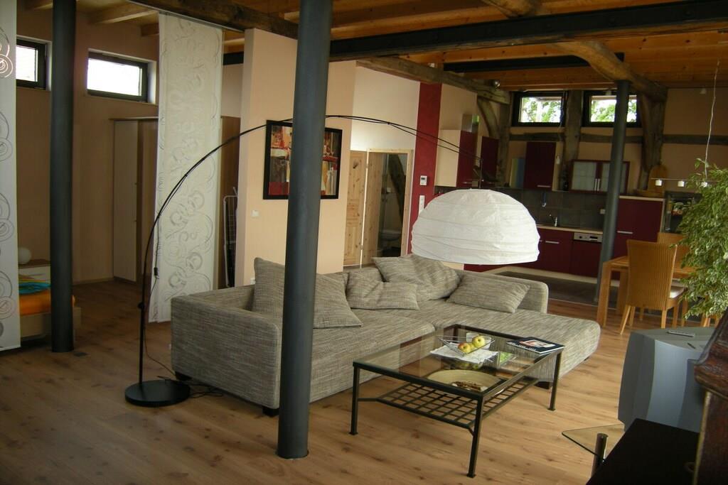 Castellchen stammer fra en gammel lade, der blev flyttet fra Nordsøkysten til Franken! Resultatet er et charmerende og hyggeligt feriehus. Lejligheden i stueetagen med sine gamle egetræsbjælker, 3,5 meter høje lofter, rigeligt glas og naturligt lys tilbyder en utrolig indbydende atmosfære. Højkvalitets og smagfuld indretning skaber de perfekte rammer for din ferie. Besøg også vores hjemmeside.