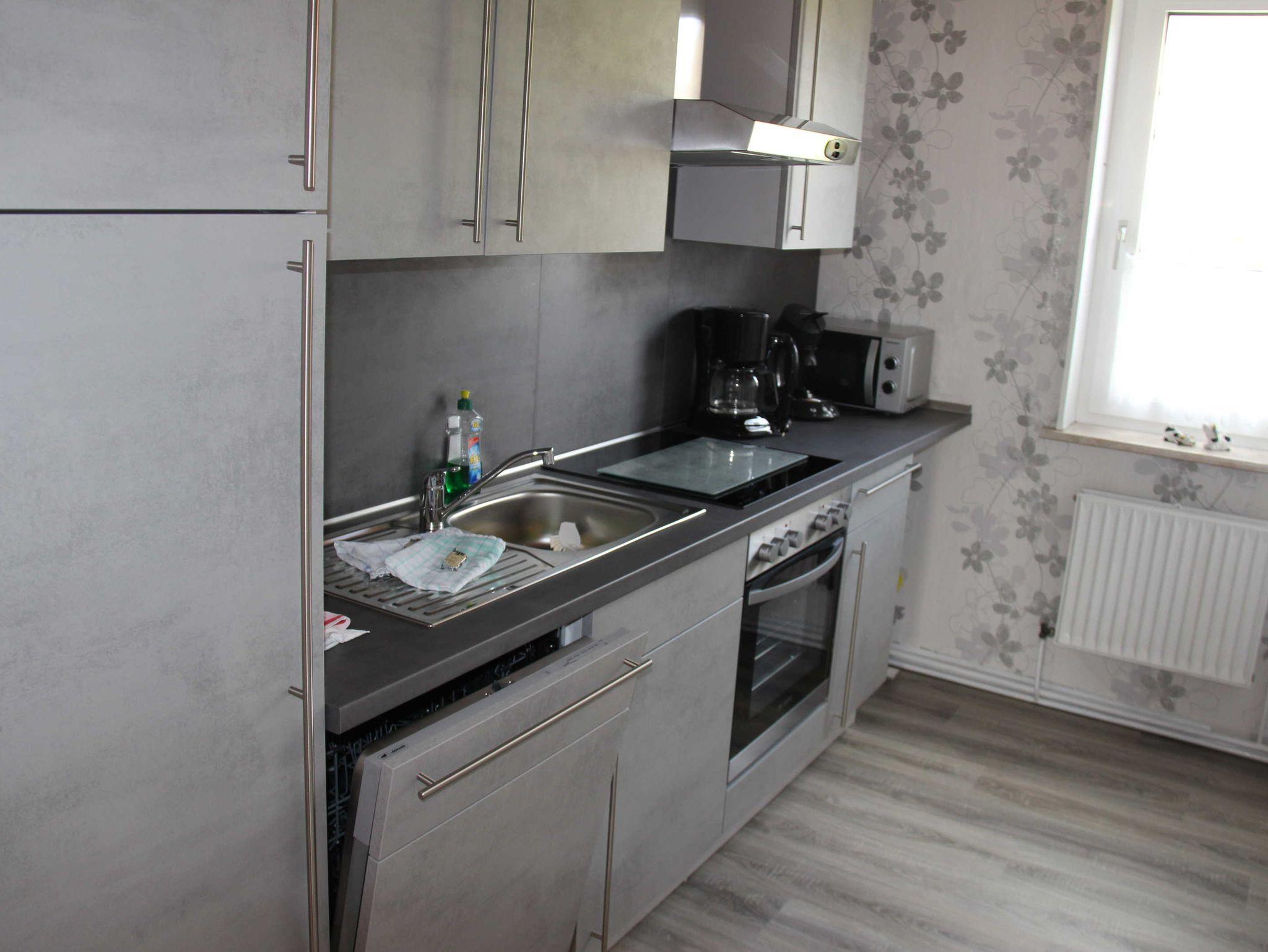 • Küche mit Spülmaschine, Toaster, Kaffeemaschine, Wasserkocher, Eierkocher