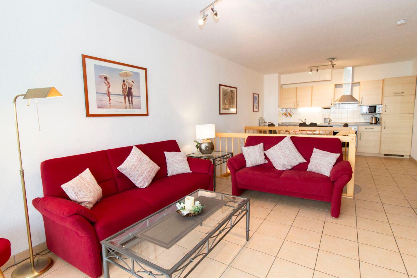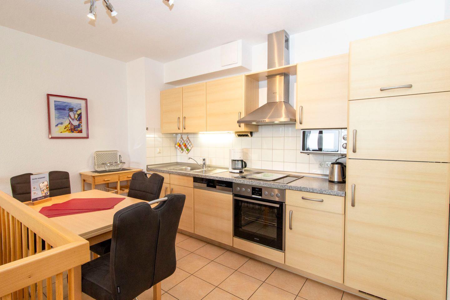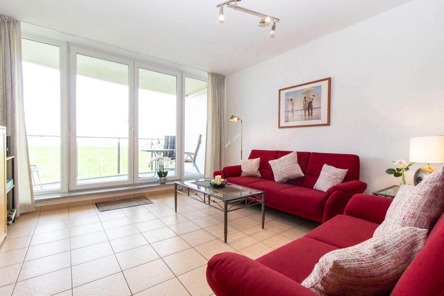 Haus "Nordseeblick", Typ B, Whg.Nr. 5, Am Seedeich 34, bis 2 Pers., 1.Etage, ca. 57 qm Größe auf 2 Ebenen, direkt am Deich, Wohnung ist komplett gefliest, Wohnbereich im OG mit direkter Seesicht auf den Weltschifffahrtsweg, sep. Schlafzimmer mit Doppelbett, weitere Übernachtungsmöglichkeit im Wohnbereich (Schrankbett), Dusche/WC, Küchenzeile mit 4-Platten-Ceranfeld, Geschirrspüler, Mikrowelle und Backofen, Flachbildschirm mit Kabel-TV, kostenl. W-Lan-Nutzung, Balkon, Aufzug, Tiefgaragenstellplatz, Fahrradkeller, Waschmaschine + Trockner gegen Gebühr im Keller, Haustiere sind nicht erlaubt, Nichtraucherwohnung