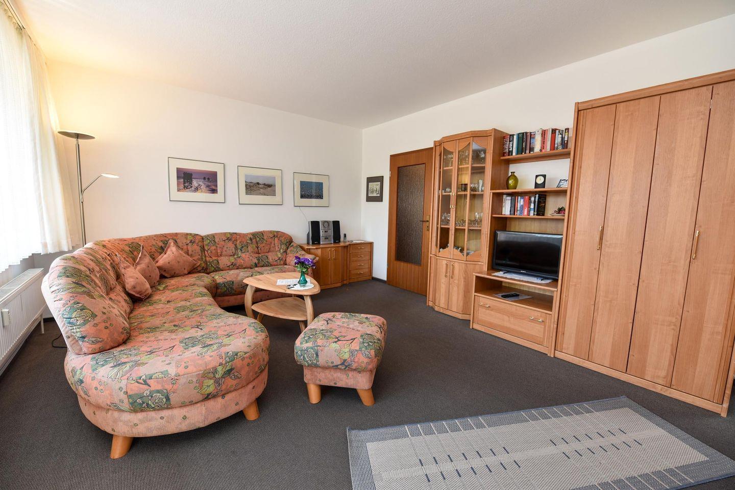 1-Zimmer-Ferienwohnung im 1. OG des Hauses LEE mit WLAN. Diese sehr schöne Wohnung besteht aus 1 Wohn-Schlafraum mit Ehebett und Couchgarnitur. Im separaten Küchenraum befindet sich ein Esstisch, 4 Stühle und eine Einbauküche mit Mikrowelle. Ein Zustellbett ist durchaus möglich. Modernes neues Duschbad mit WC., Kabel-TV., Großer Süd-Balkon. Spielrasen, Spielgerät und Sandkiste auf dem Grundstück, PKW-Stellplatz. Schwimmbadnutzung kostenlos.