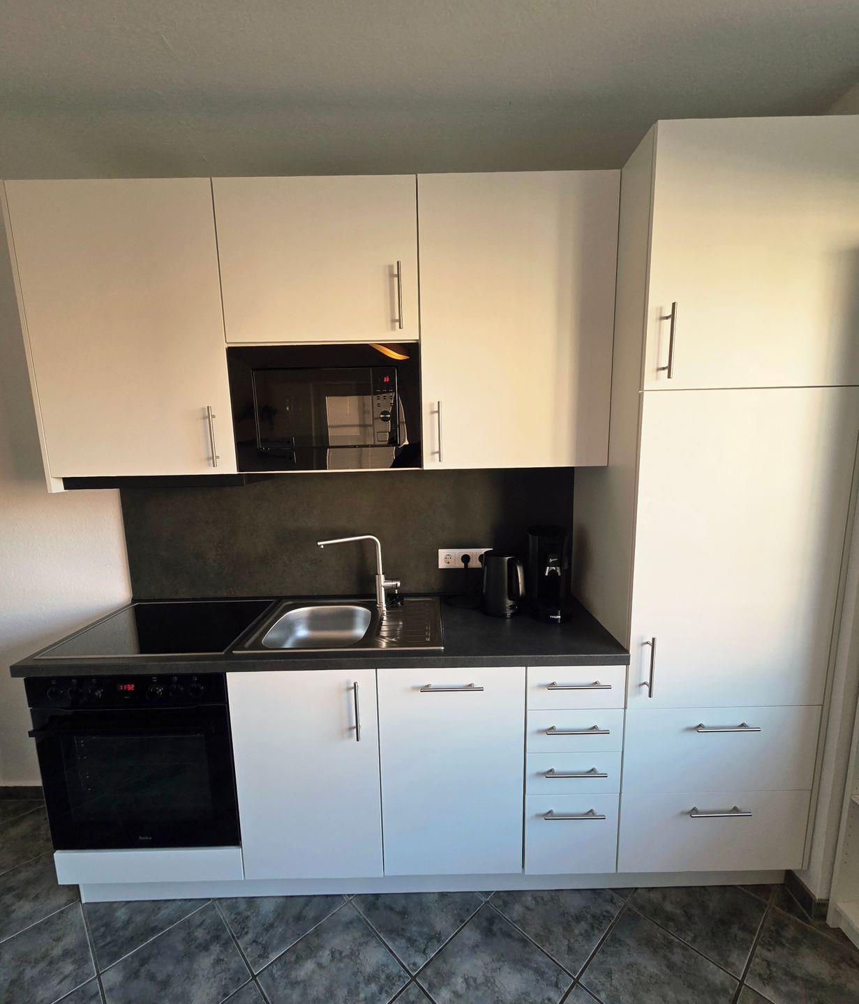 Küche mit Backofen, Geschirrspüler, Mikrowelle und 4