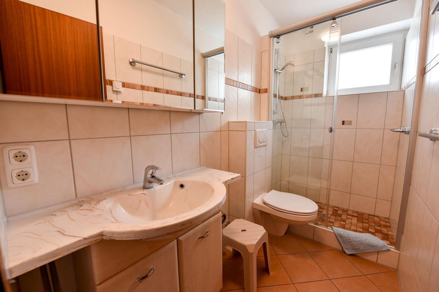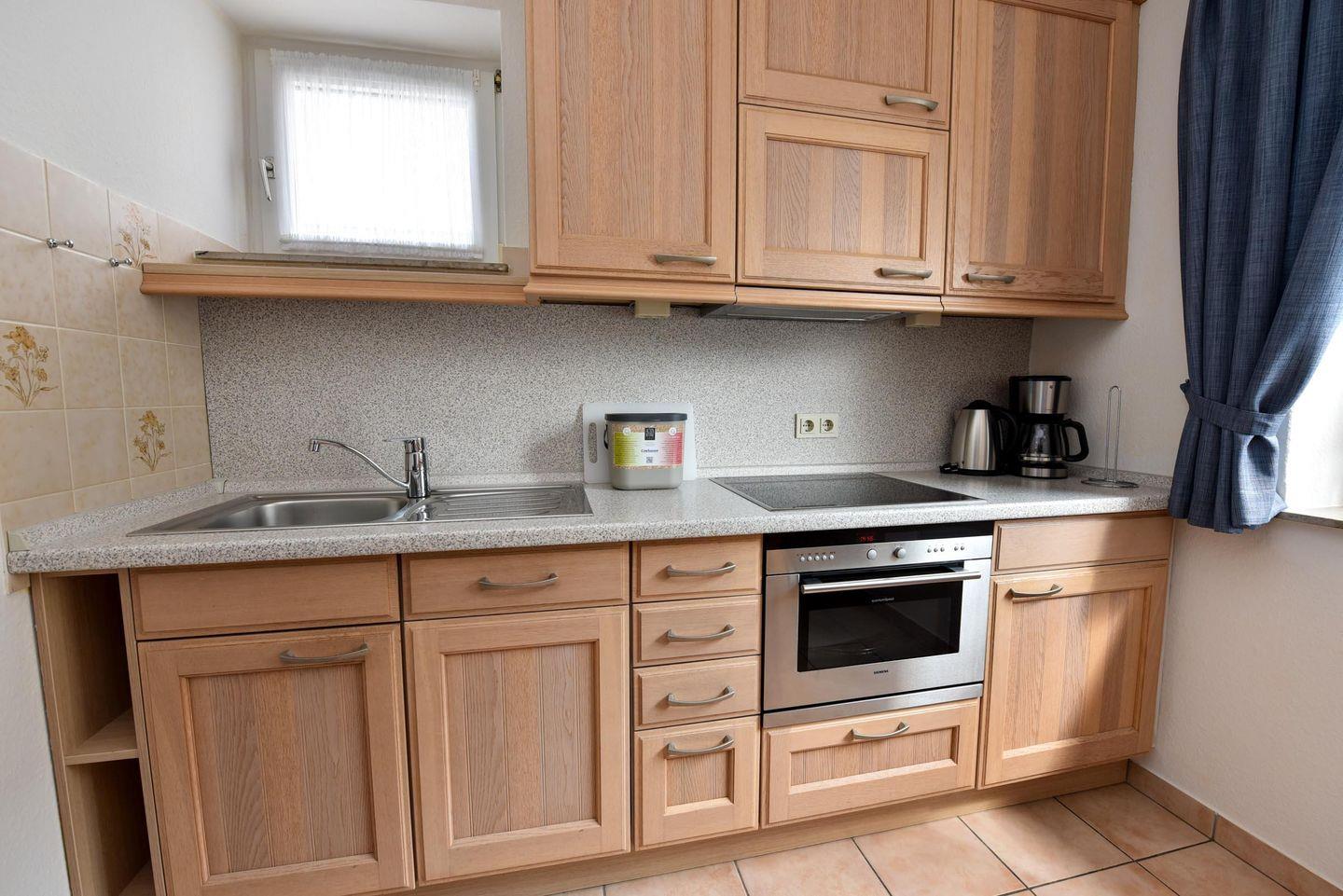 Zur Ausstattung gehören u.a. Kühlschrank, E-Herd mit Cerankochfeld, Kaffeemaschine, Wasserkocher, Toaster, Geschirrspüler, und auch ein Flachbildfernseher ist vorhanden. Selbstverständlich verfügt die Wohnung auch über kostenfreies WLAN sowie einen nummerierten Pkw-Stellplatz.