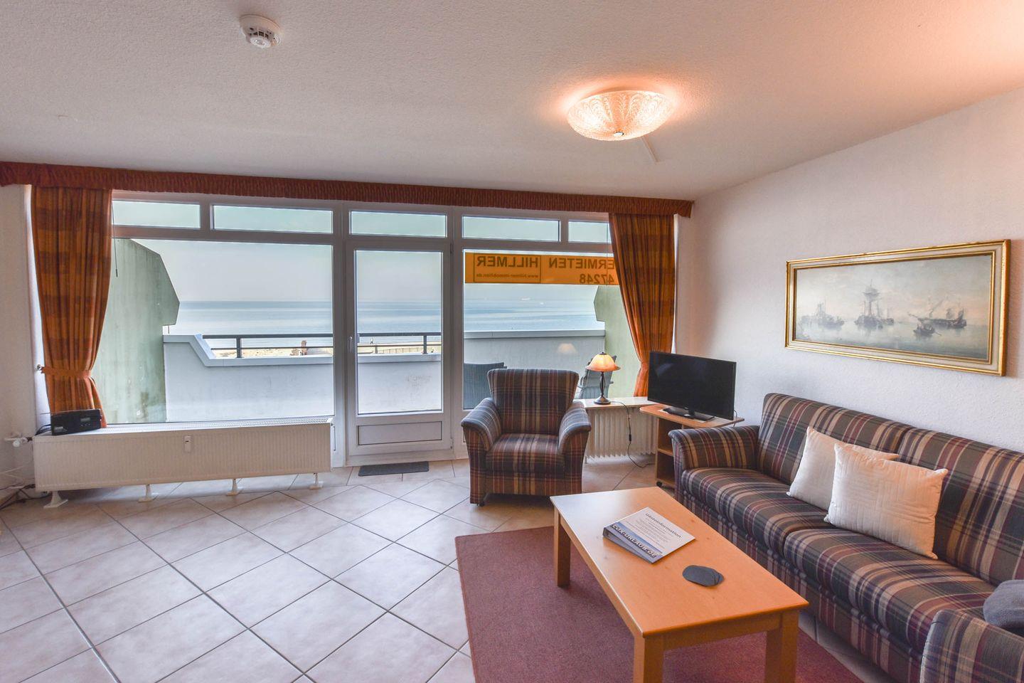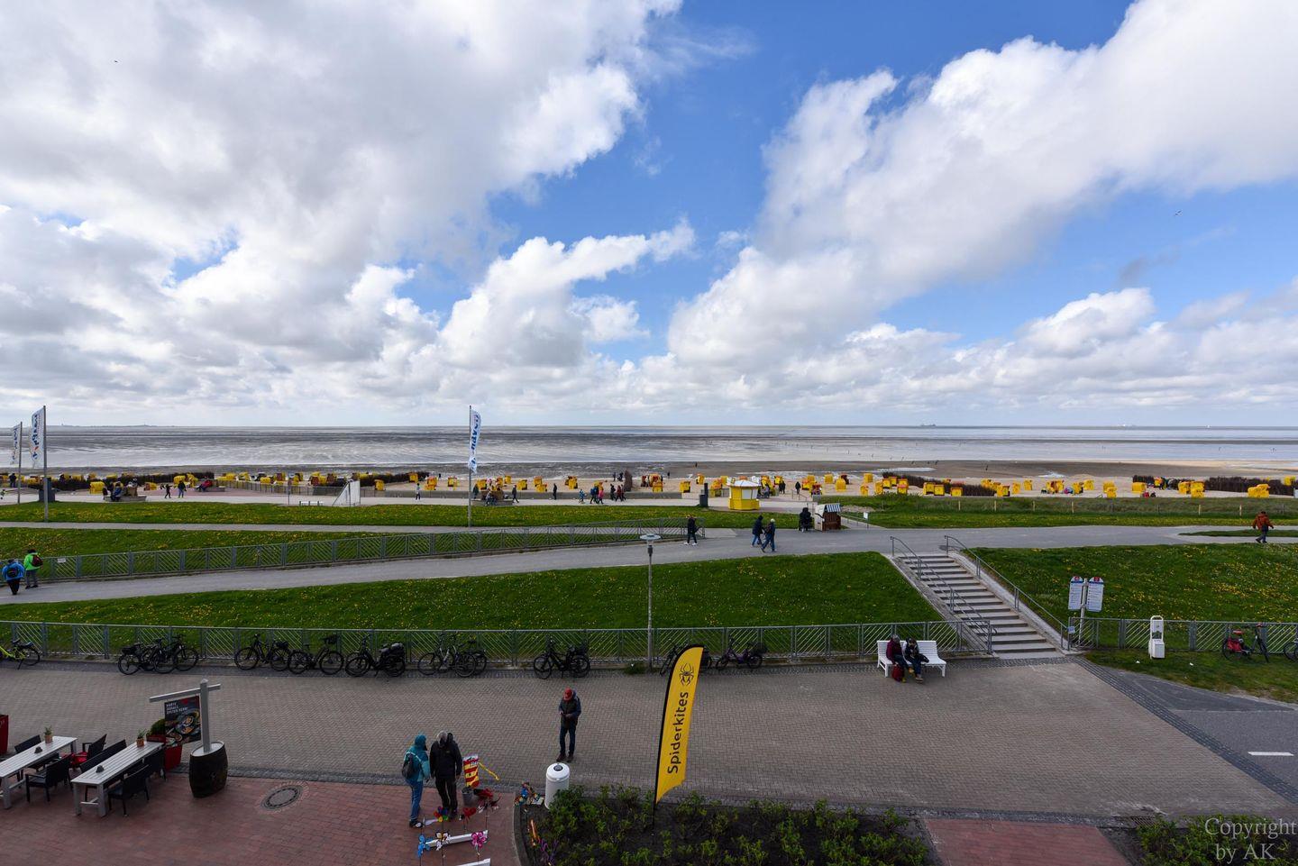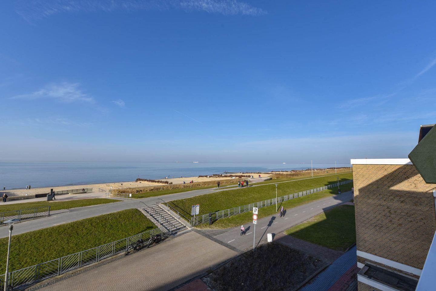 Die Wohnung Nr. 24 im Haus Panorama liegt in der 2. Etage und bietet einen direkten Seeblick auf das UNESCO Weltnaturerbe Wattenmeer und den Weltschifffahrtsweg.