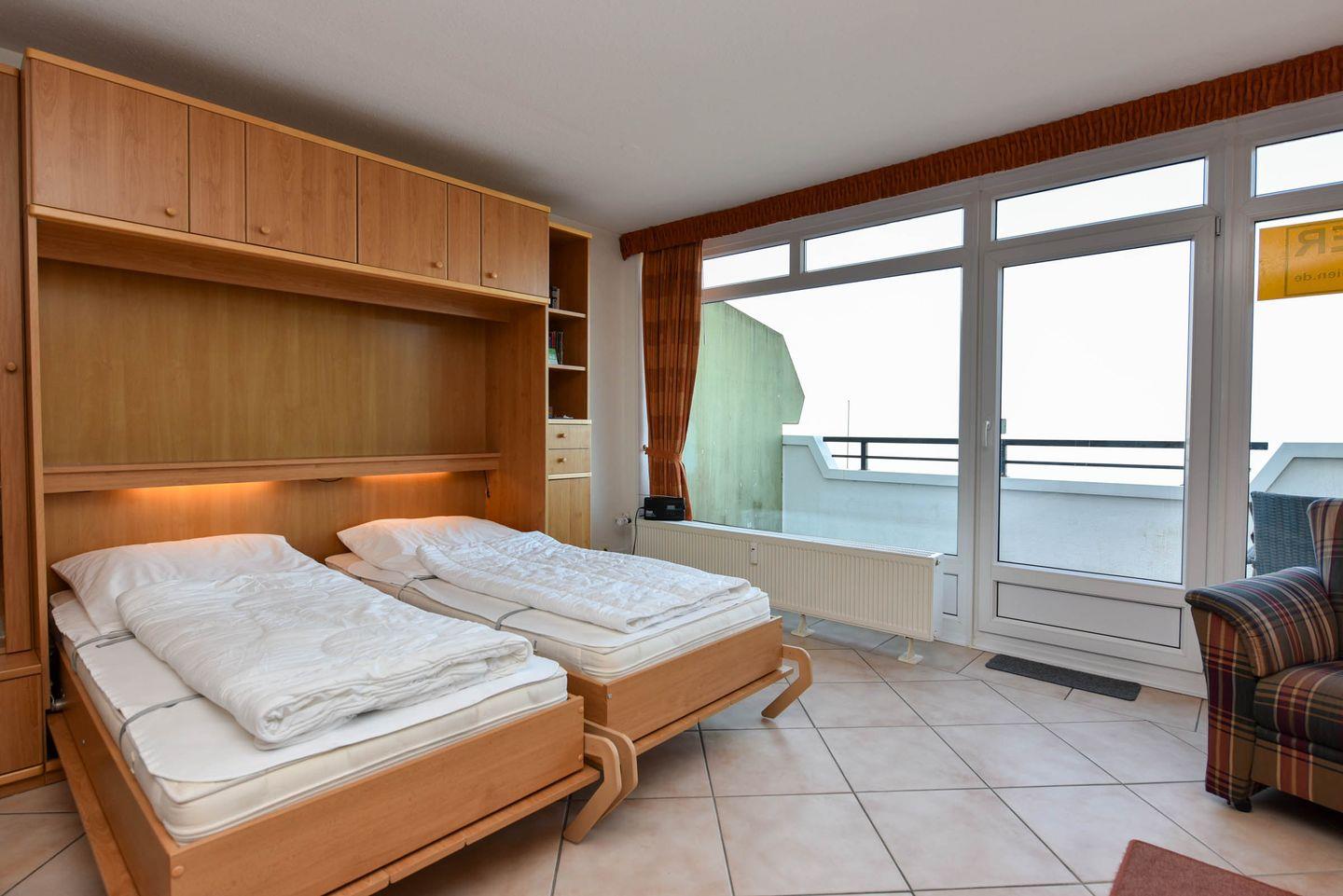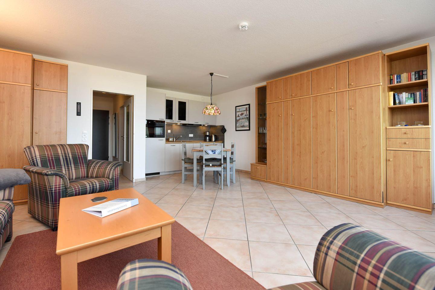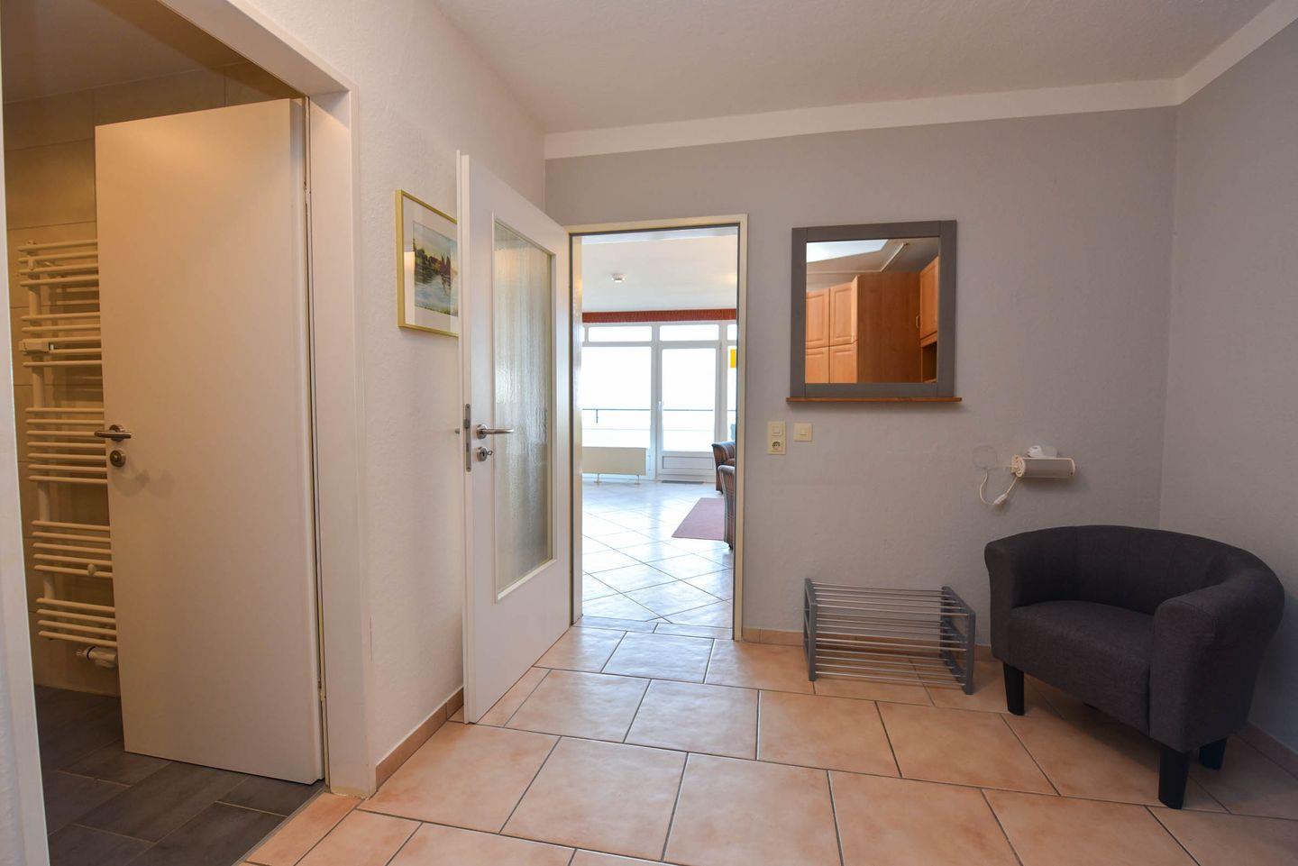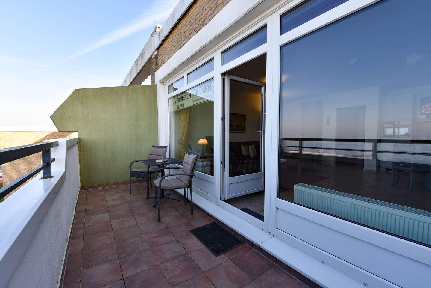 Die Wohnung Nr. 24 im Haus Panorama liegt in der 2. Etage und bietet einen direkten Seeblick auf das UNESCO Weltnaturerbe Wattenmeer und den Weltschifffahrtsweg.