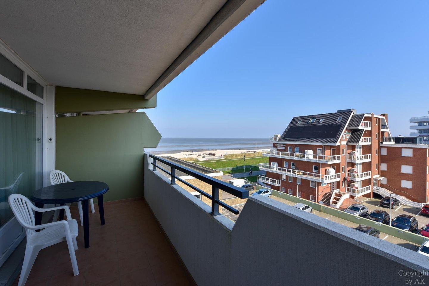 Die Wohnung Nr. 52 befindet sich im Haus Panorama in der 3. Etage. Vom Balkon hat man Seeblick zur Seeschifffahrtslinie.