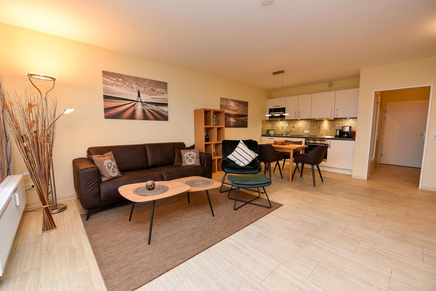 Die Wohnung Nr. 68 befindet sich im Haus Panorama in der 4. Etage. Man hat Seeblick zur Seeschifffahrtslinie.