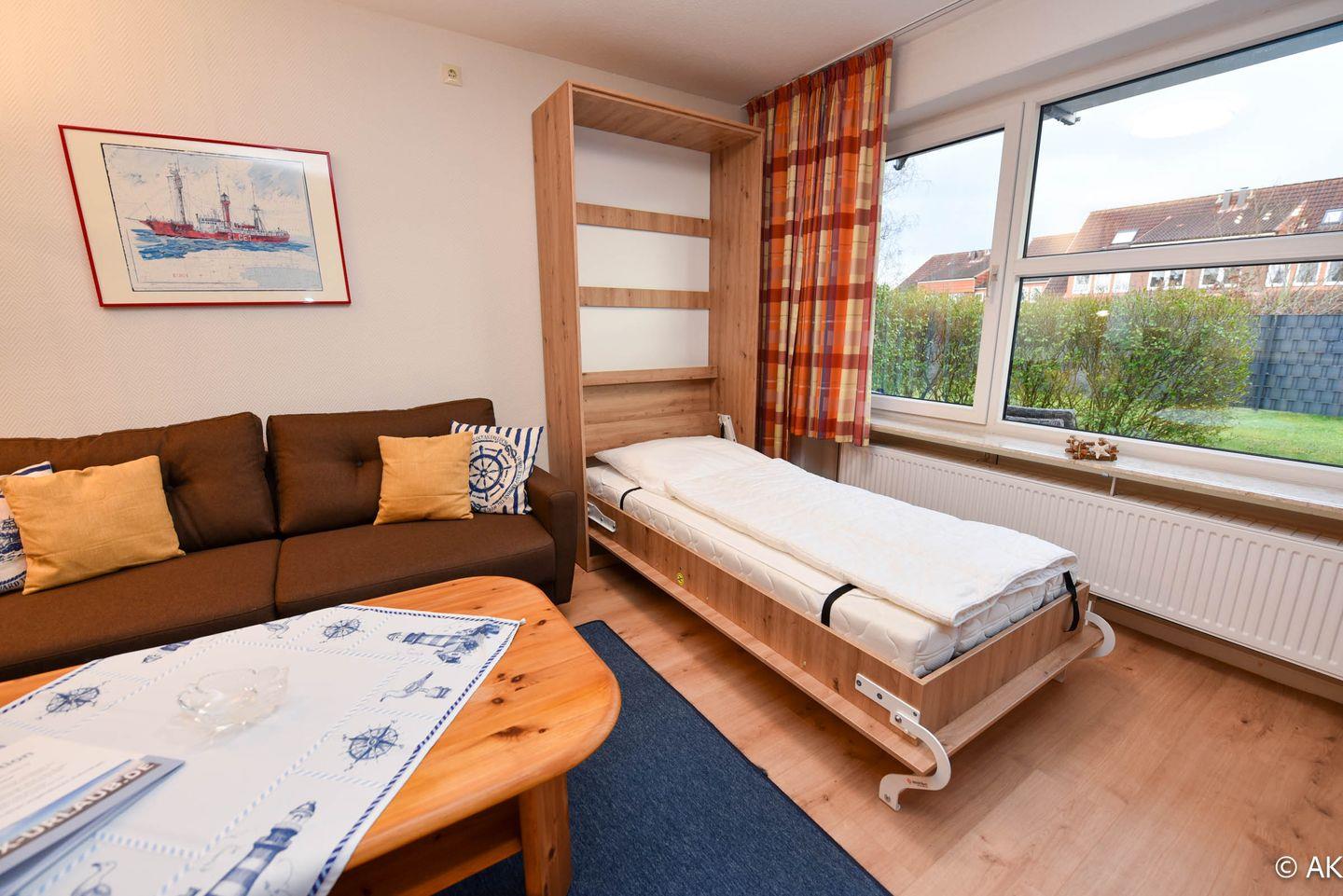 Das helle und moderne Apartment verfügt über einen gemütlichen Wohnbereich mit Sofa, Flachbild-TV und einer eigenen sonnigen Südterrasse. Der Schlafbereich ist mit einem bequemen Doppelbett ausgestattet, das erholsame Nächte garantiert. Zudem befindet sich im Wohnbereich ein zusätzliches Schrankbett. In der voll ausgestatteten Küchenzeile finden Sie alles, was Sie zur Zubereitung eigener Mahlzeiten benötigen, einschließlich Herd, Backofen, Kühlschrank, Geschirrspüler und Kaffeemaschine. Das helle Badezimmer bietet eine Dusche, ein Waschbecken und ein WC.