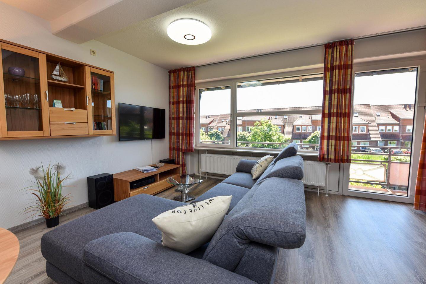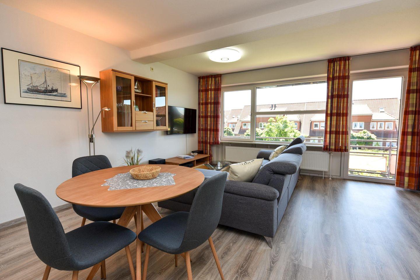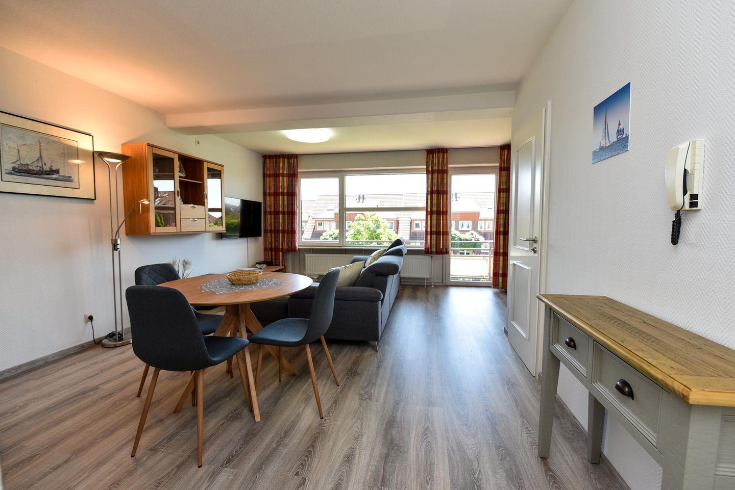 Das gemütliche Nichtraucher-Appartement SEE206 im Haus Seeland 2 befindet sich im ersten Stock und umfasst ein Schlafzimmer, ein Wohnzimmer mit integrierter Küche und ein Badezimmer.