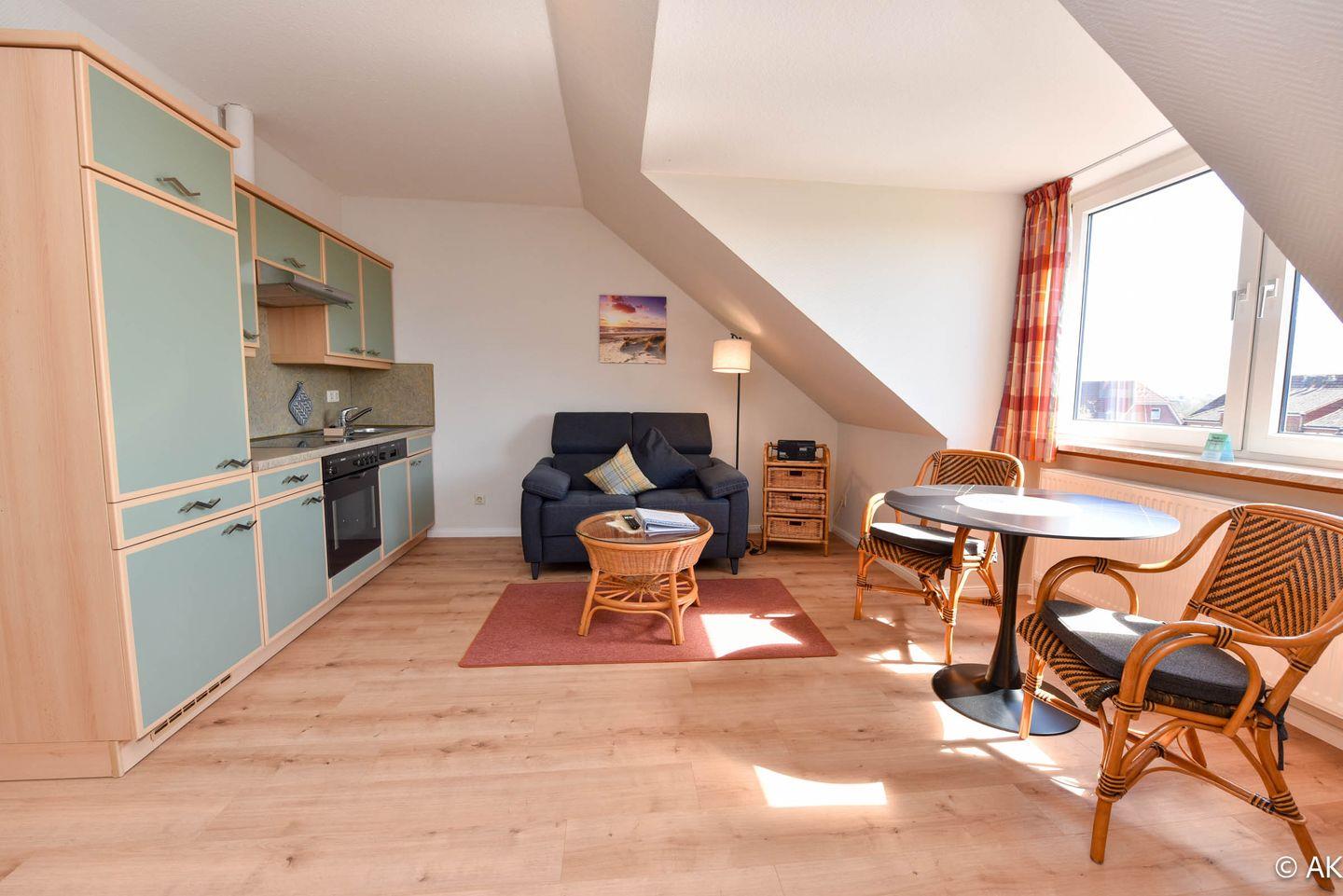 Das gemütliche Nichtraucher-Dachgeschoss-Appartement SEE208 im Haus Seeland 2 umfasst ein Schlafzimmer, ein Wohnzimmer mit integrierter und voll ausgestatteter Küche sowie ein Badezimmer. Aufgrund seiner ruhigen Lage in der Nähe des Zentrums von Duhnen eignet sich diese Ferienwohnung hervorragend für einen entspannenden Aufenthalt. Haustiere sind nicht erlaubt, was es besonders für Allergiker geeignet macht.