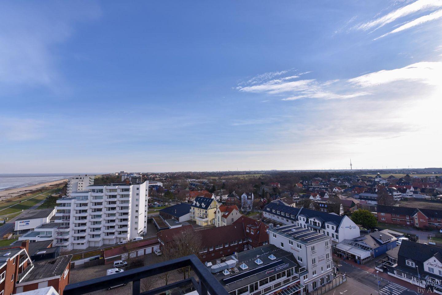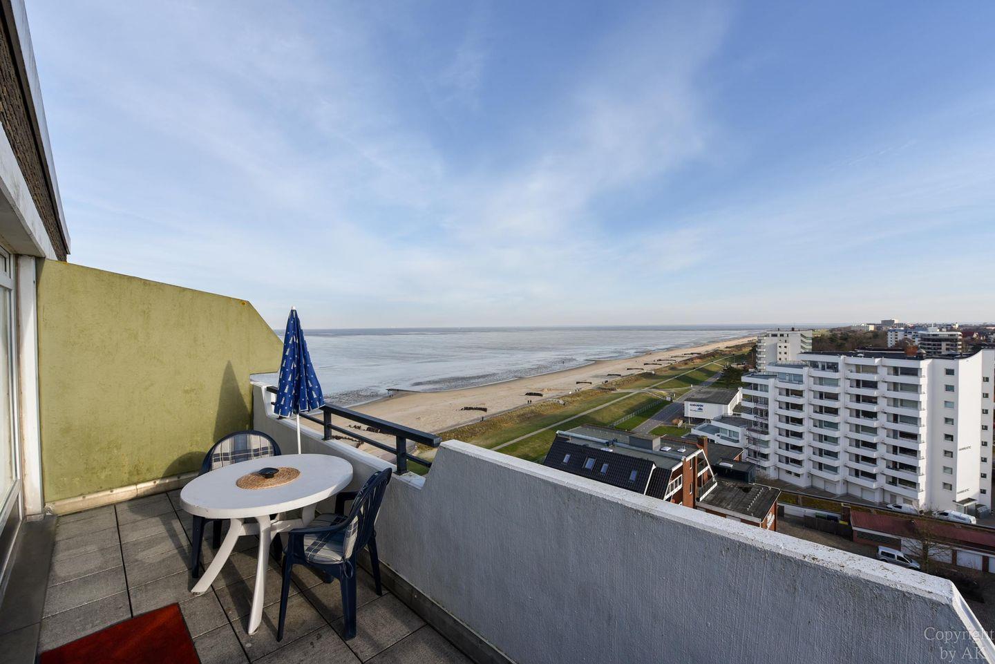 Die Wohnung Nr. 123 im Haus Panorama befindet sich in der 10. Etage und bietet einen atemberaubenden direkten Seeblick auf den Seeschifffahrtsweg sowie die Elbmündung.