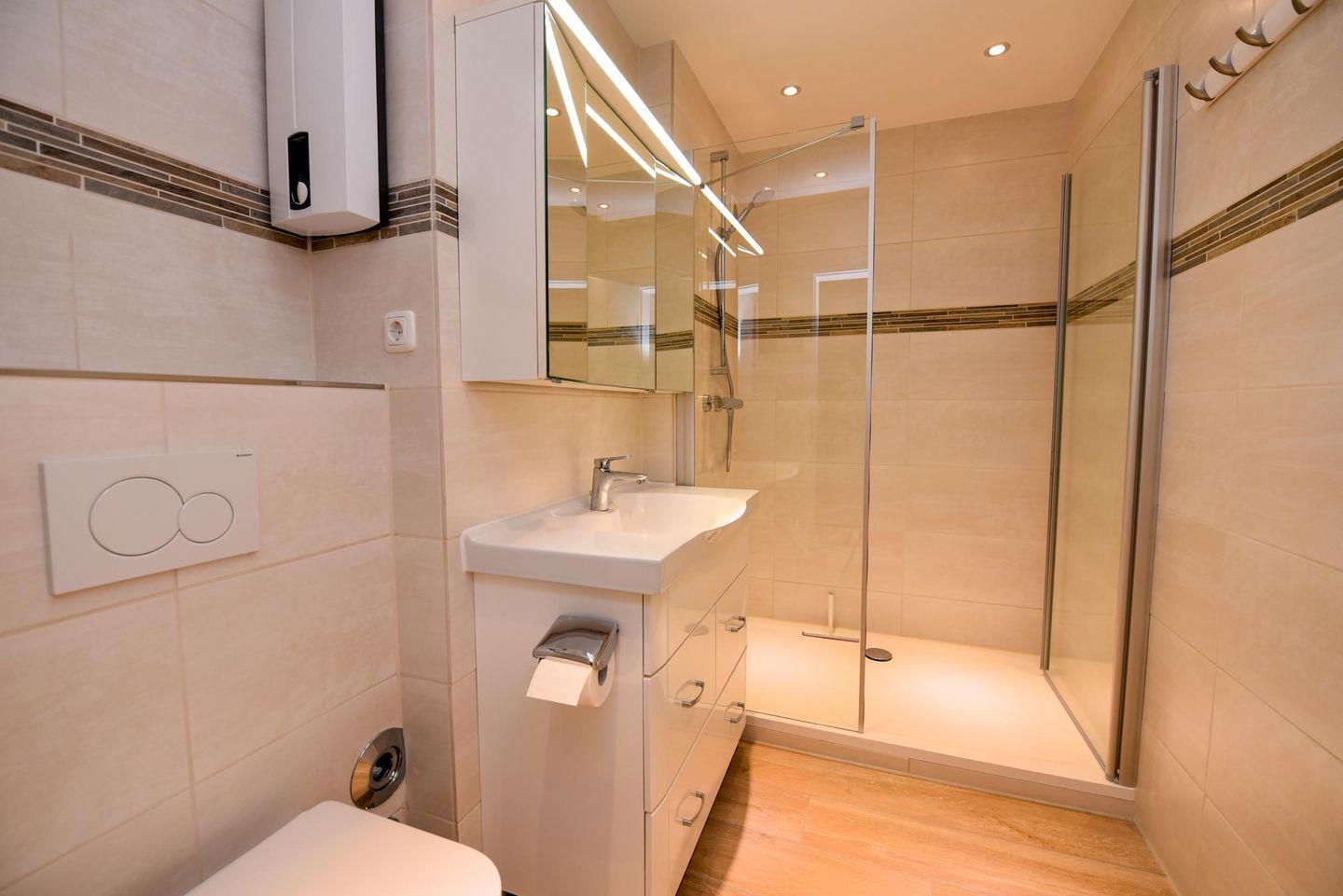Die Wohnung verfügt über 1 Wohnzimmer mit gemütlicher Sitzecke, eine Schlafnische mit einem bequemen Boxspingbett und eine moderne und voll ausgestattete Küchenzeile mit Kühlschrank, Kaffeemaschine, E-Herd/Backofen. Auch das hell geflieste Badezimmer mit bodentiefer Dusche und WC wurde in 2022 neu renoviert und entspricht modernstem Standard.