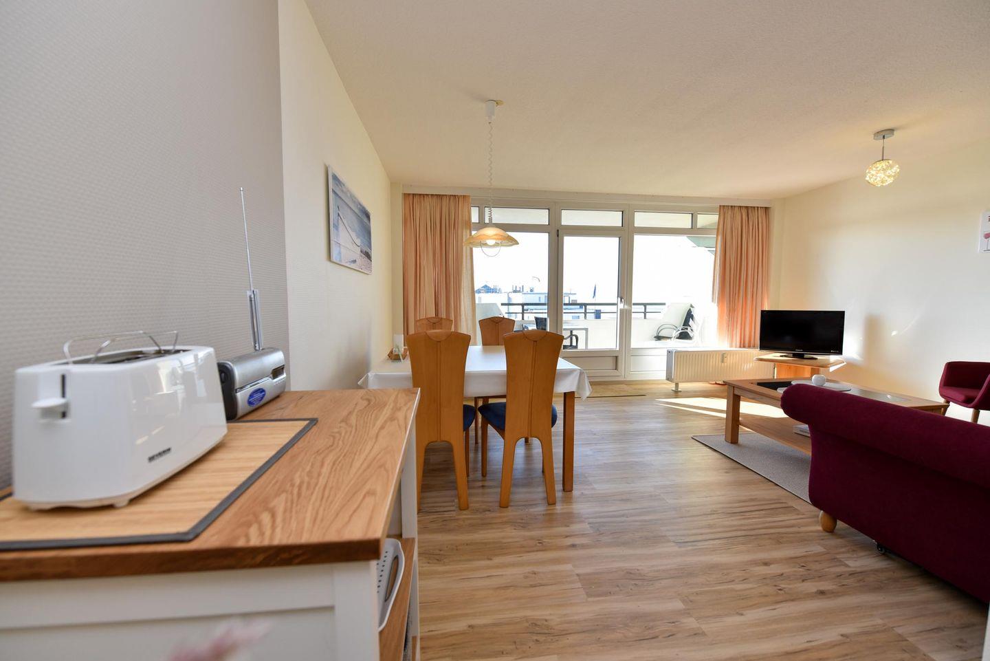 Die gemütliche Wohnung Nr. 86 in der 6. Etage mit Seeblick in Richtung Neuwerk wurde 2022 komplett renoviert.