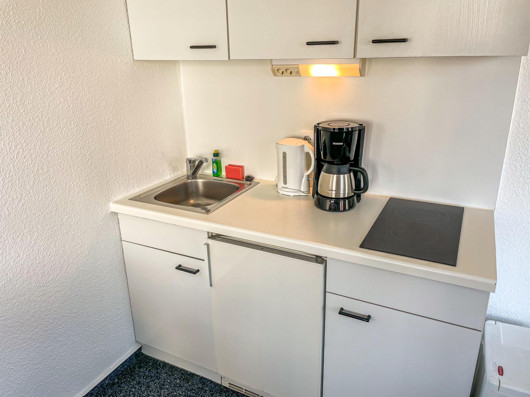 "Duhnen", 1-room apartment 30 m2. Cosy furnishings: open living/sleeping room with 1 double fold-away bed, dining table, satellite TV and radio. Kitchenette (2 hot plates, toaster, kettle, microwave, electric coffee machine). Shower/WC. Heating. Balcony or terrace. Balcony furniture. Facilities: children's high chair, baby cot. Internet (WiFi, free). Please note: non-smokers only. Maximum 1 pet/ dog allowed. Smoke alarm, fire extinguisher.