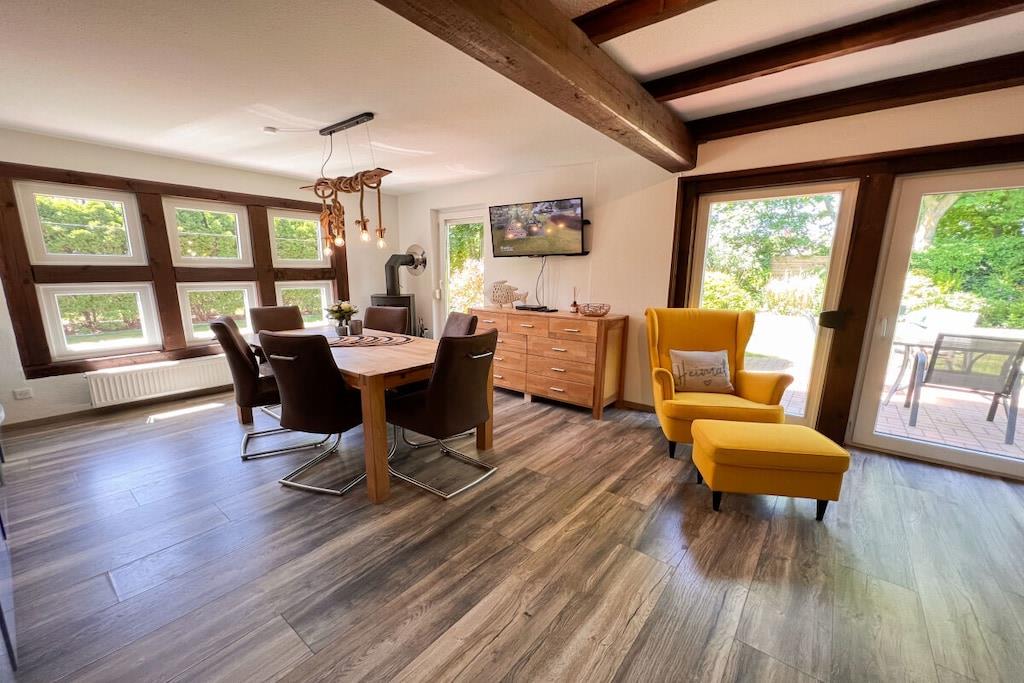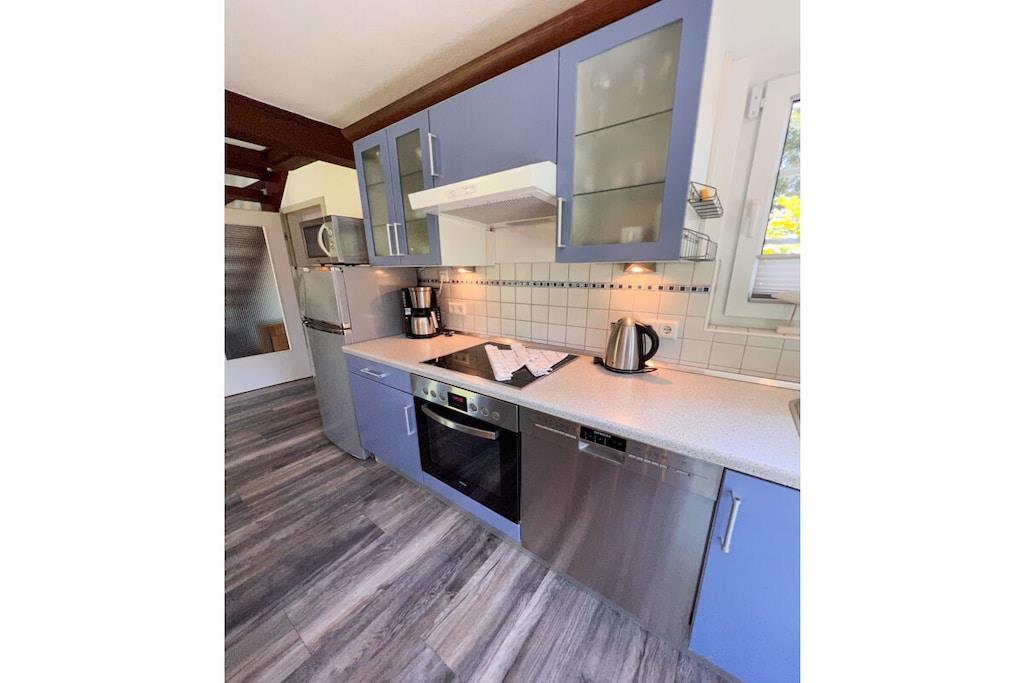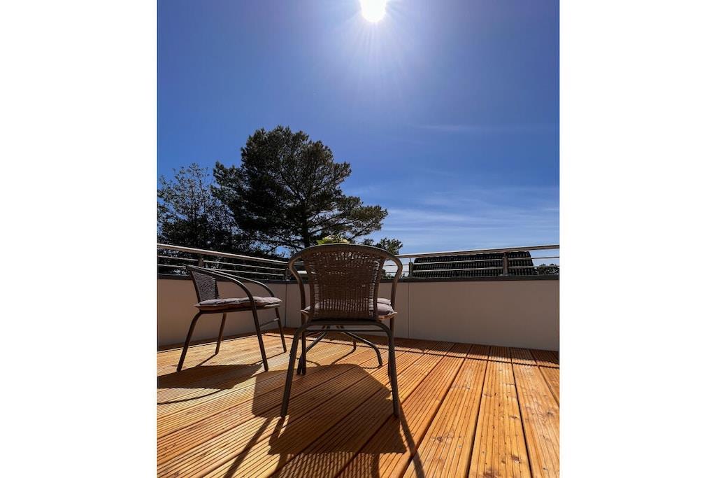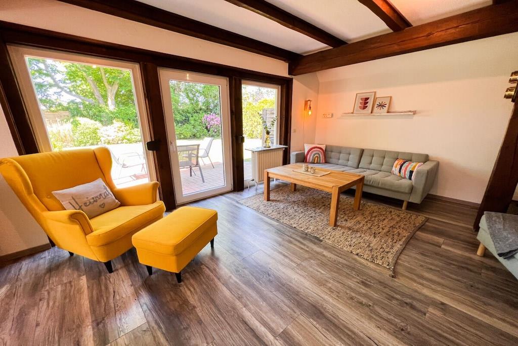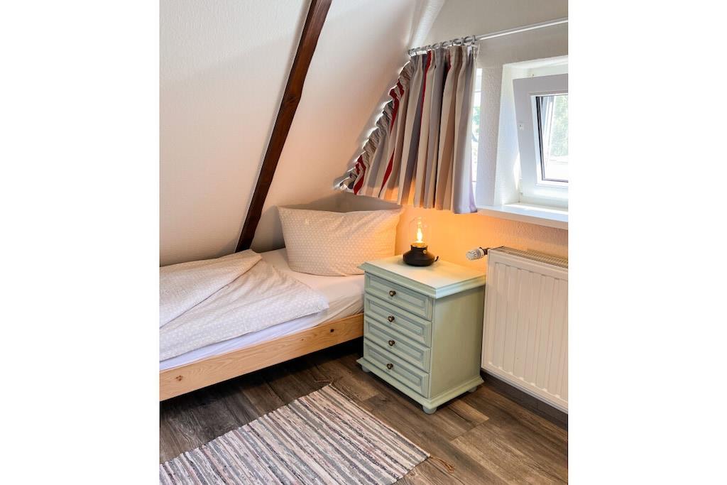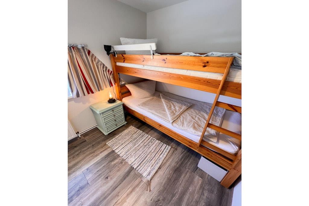 Unsere freistehende Strandhütte ist 73qm groß und befindet sich auf einem ca. 550qm großen abgeschlossenem Grundstück. Der schöne Garten lädt zum Spielen, Toben und Verweilen ein. Vom großzügigen Wohnraum mit offener Wohnküche gelangst du auf die Terrasse. Im Untergeschoss befindet sich außerdem ein Bad mit Dusche und WC. Im Obergeschoss liegen die beiden Schlafräume und ein weiteres WC. Auf der Dachterrasse, die von einem der Schlafräume zugänglich ist, lässt sich der Morgen-Kaffee besonders gut genießen. Für eure Autos gibt es zwei Stellplätze am Haus und Fahrräder können im abschließbaren Gartenhaus untergebracht werden.