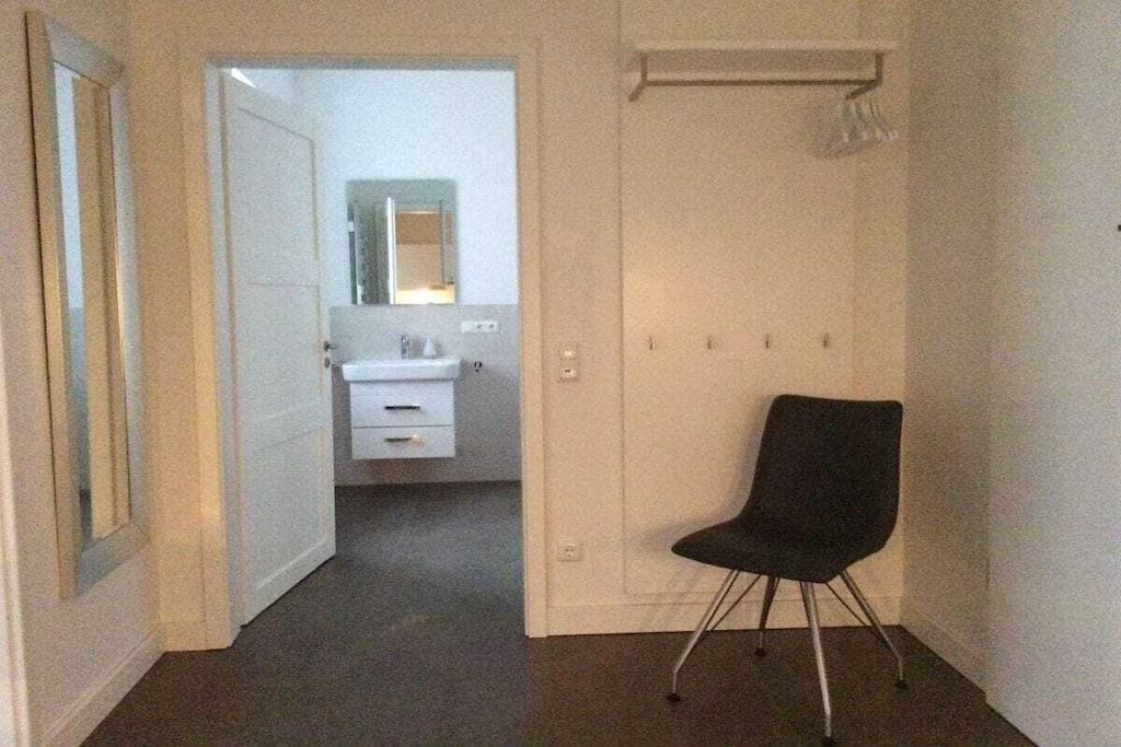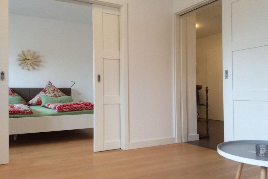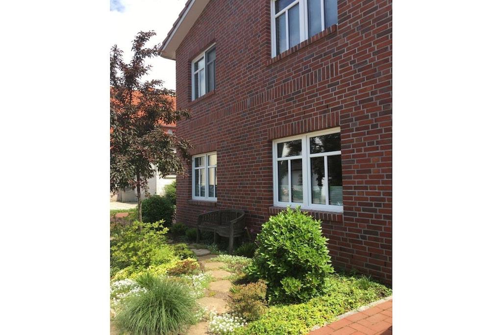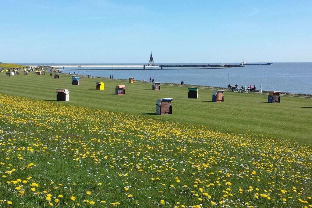 Den hyggelige, moderne og komfortabelt indrettede nye 45 kvm ferielejlighed med 1 soveværelse, stue-spisestue med sovesofa, køkken, dagslys badeværelse og walk-in closet er placeret i stueetagen. En komfortabel lejlighed til 2 til 3 personer, vi er glade for at give en babyseng og høj stol gratis. Din parkeringsplads er placeret direkte ved huset og du kan naturligvis opbevare din cykel i cykelskuret. Ferielejligheden "-nær stranden-" på Strandstraße er stille og alligevel centralt beliggende Döse bymidte ligger kun få minutters gang væk, og stranden ved Kugelbake er omkring 500 meter væk.