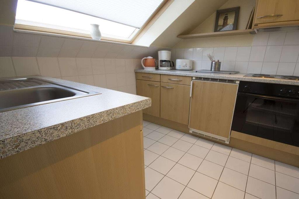 Attraktiv lejlighed på 35 kvm til 2 personer på første sal. Stue/spisestue, 1 soveværelse med 2 enkeltsenge, separat køkken. Badeværelset har bruser og toilet. Ankomst mellem kl. 13.00 og 14.00. Håndklæder (1 lille og 1 stort) kan tilføjes for EURO5 pr. person. Angiv venligst dette i din bookingbekræftelse.