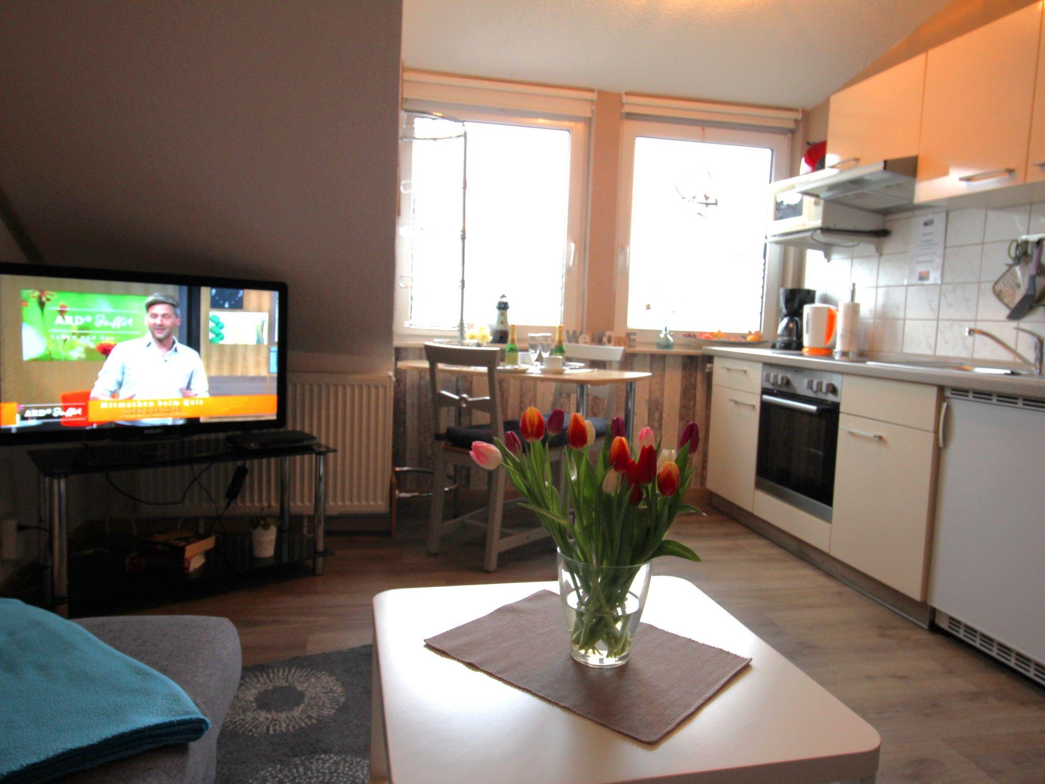 Die moderne Küchenzeile ist voll ausgestattet ? mit Backofen, Mikrowelle, Kaffeemaschine und allen weiteren Geräten, die Sie für Ihre Lieblingsgerichte benötigen. Der angrenzende Essplatz bietet den idealen Rahmen, um gemeinsame Mahlzeiten in entspannter Atmosphäre zu genießen.