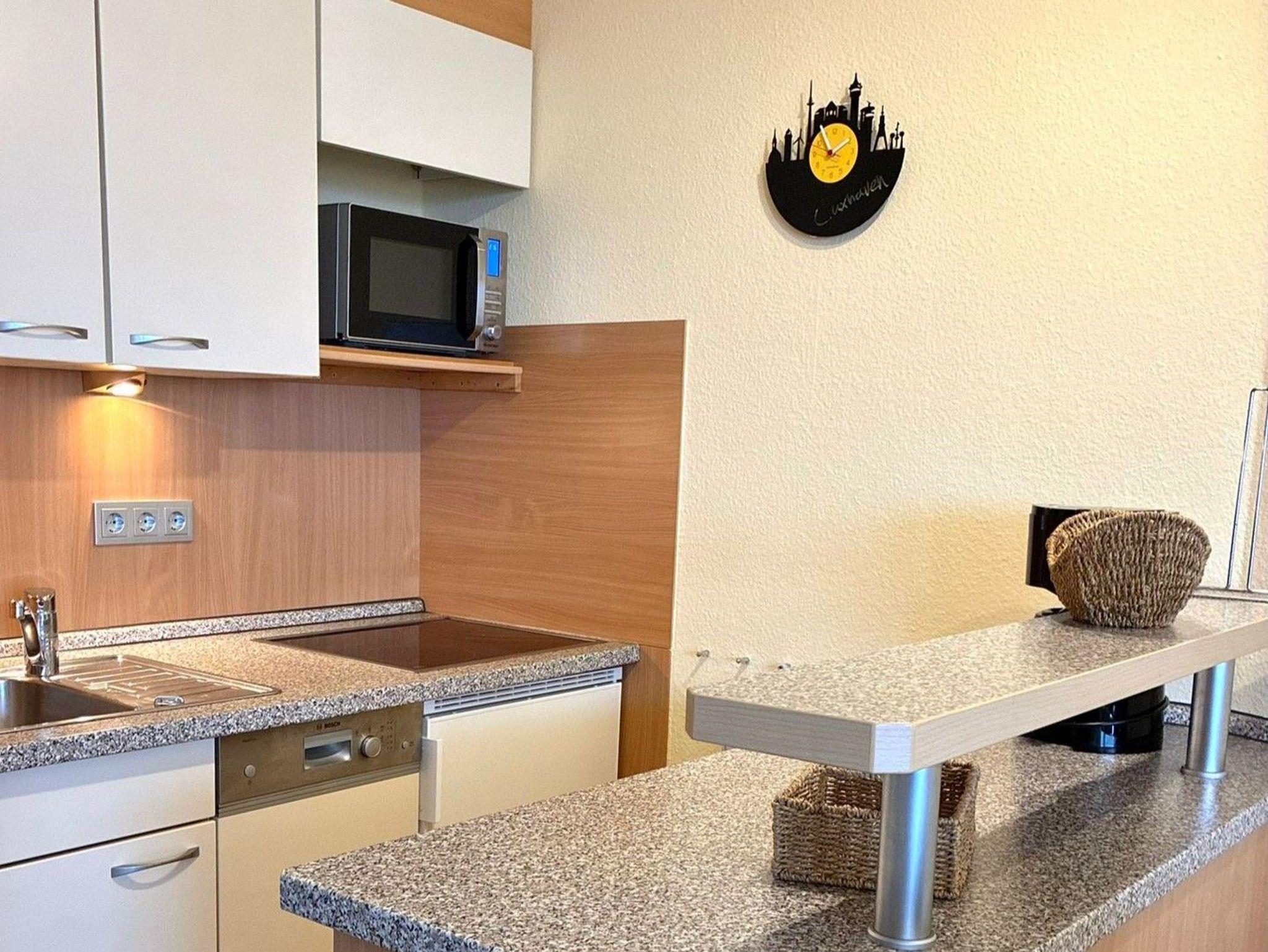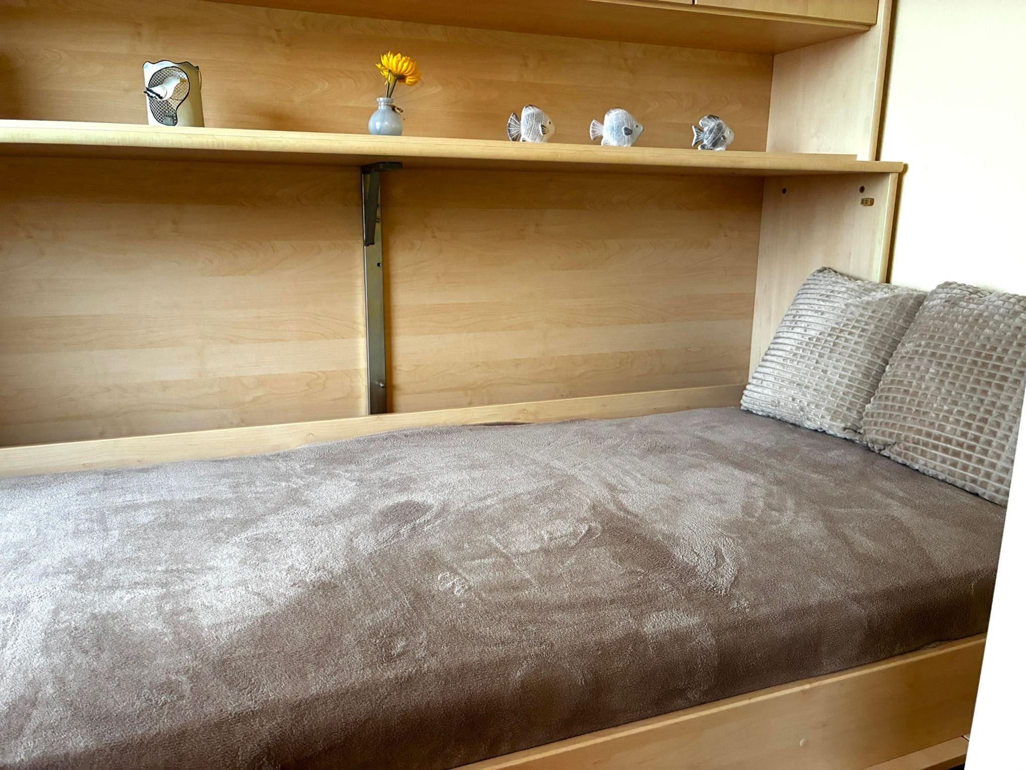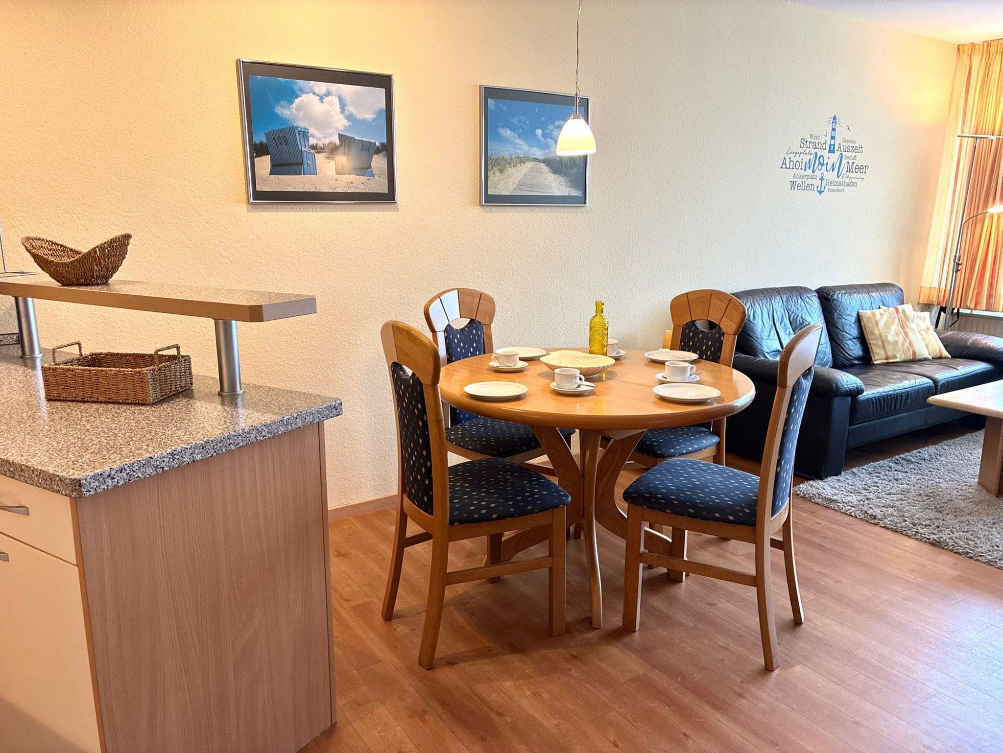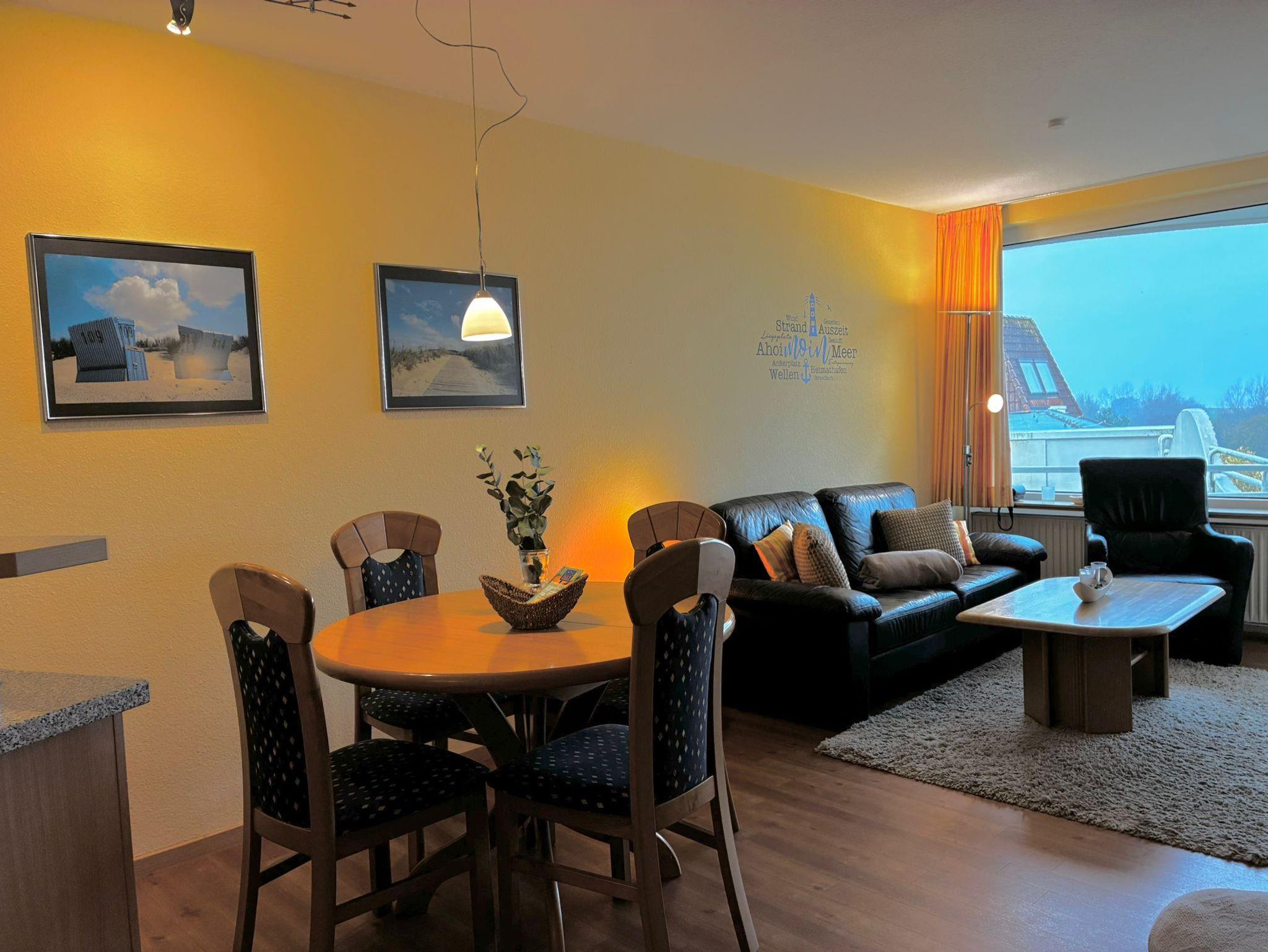 Das Appartement 409 ist eine gemütliche, helle, freundliche und möblierte Ferienwohnung (ca. 42 m²) für bis zu 3 Personen im 4. OG mit Seesichtauf die Nordsee. Die Wohnung besteht aus einem Wohn-/Schlafraum (Schrankklappbetten - einzeln ausklappbar; Küchenzeile mit Herd und Mikrowelle), einem separaten Kinderzimmer (Schrankklappbett), einem Badezimmer (Dusche und WC) und einem Abstellraum. Desweiteren verfügt die Wohnung über einen Balkon mit Bestuhlung ebenso wie über Kabel-TV sowie WLAN. Das hauseigene Schwimmbad mit Whirlpool, der Wellnessbereich(Sauna und Dampfbad) sowie der Außenbereich bieten Erholung pur! Tiefgaragenstellplatz und Fahrradabstellraum stehen selbstverständlich auch kostenlos zur Verfügung.