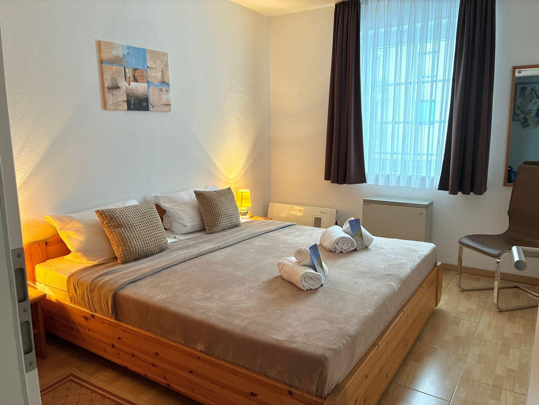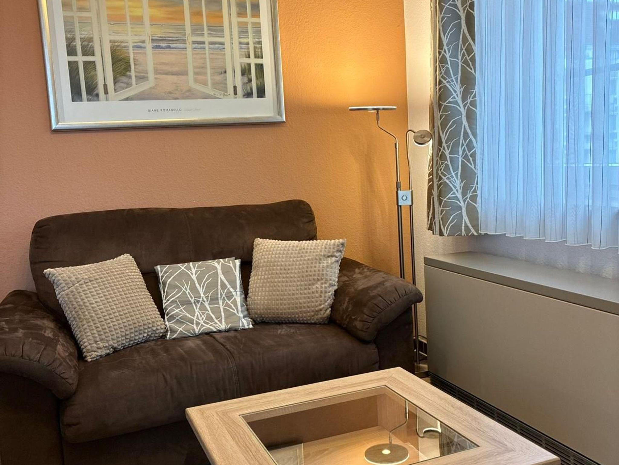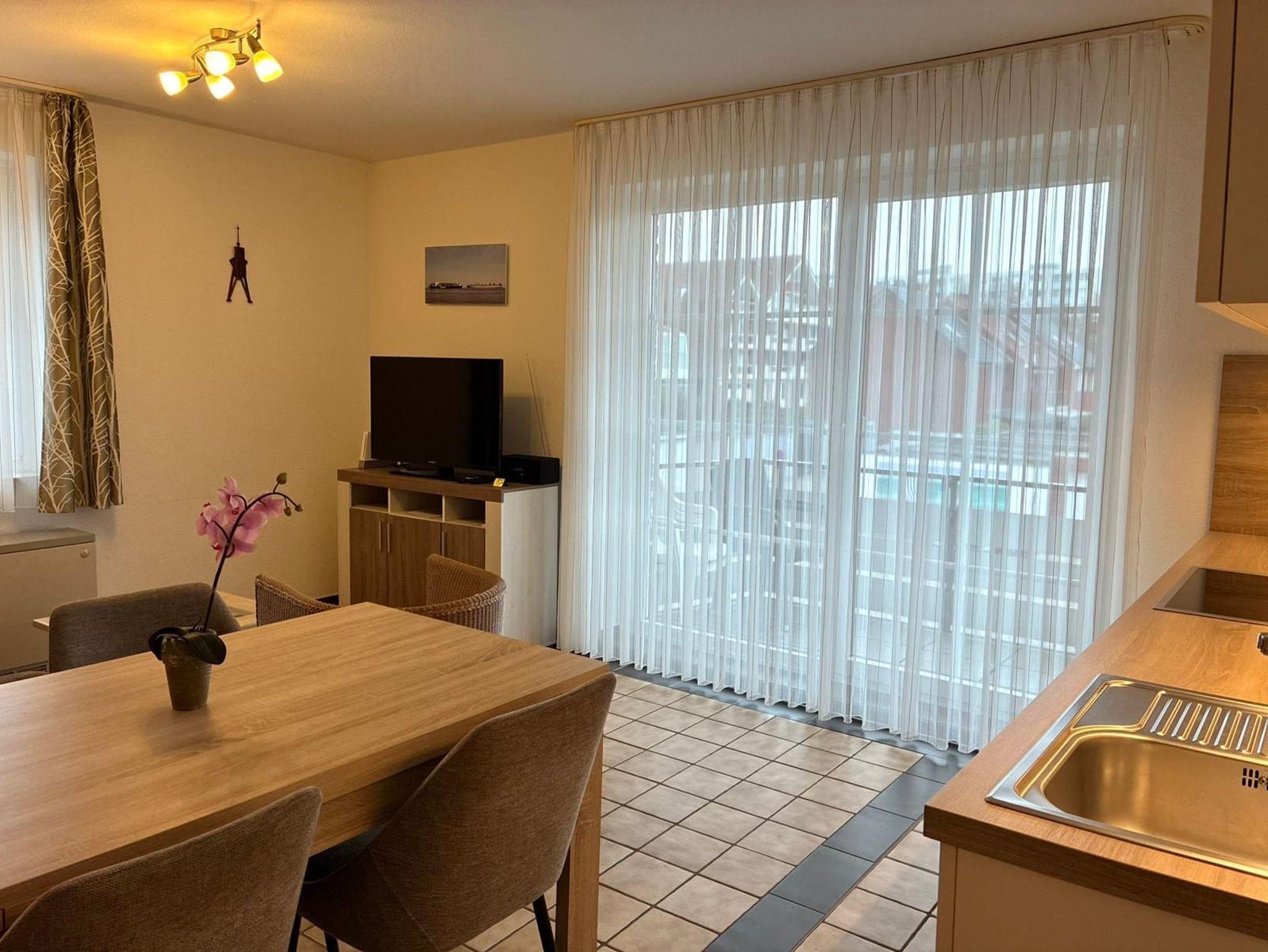 Sie wohnen in einem 3-Zimmer-Appartement in der ersten Etage auf ca. 47 m² Wohnfläche. Ein Schlafzimmer mit Doppelbett, ein Schlafzimmer mit einem Einzelbett, welches für die 4. Person ausgezogen werden kann, heller Wohnraum mit 2er-Couch und Sessel und mit SAT-LED-TV und Internetradio, separater Essplatz, voll ausgestattete Einbauküche mit Backofen incl. Mikrowelle und Spülmaschine, moderne Dusche/WC, Ost-Balkon.