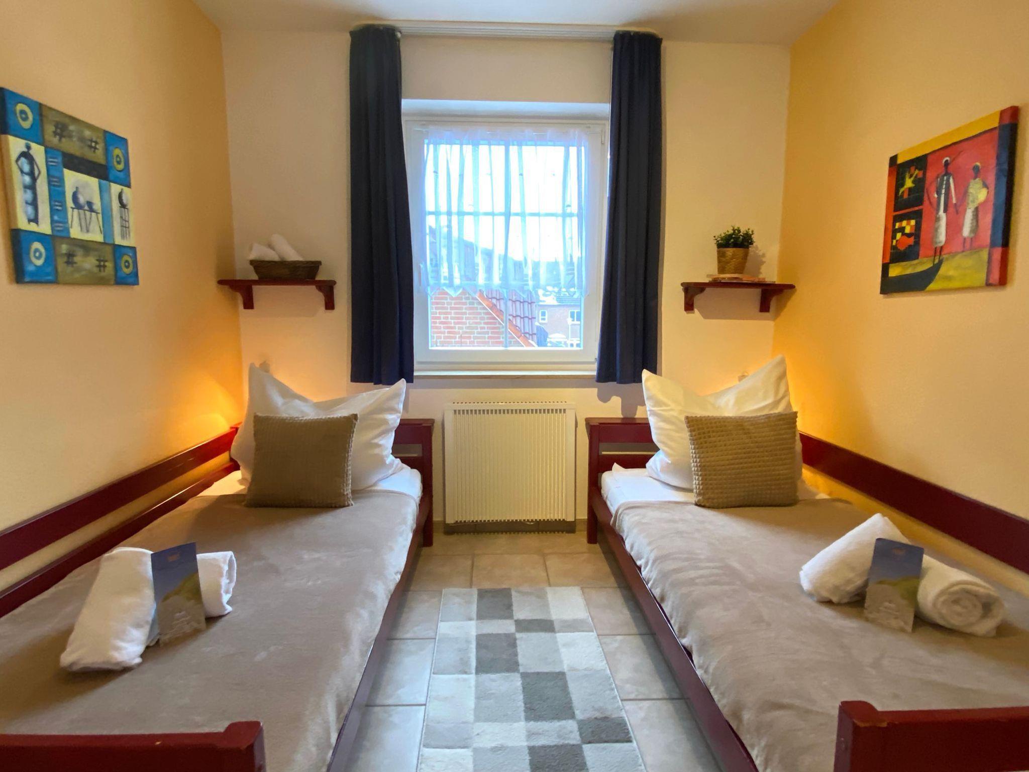 Freizeitangebote: Spielraum mit Tischtennis, Kicker und Ballebad, Kinderspielplatz, Schwimm- und Saunamoglichkeiten in einem der großten Meerwasserbrandungsbader, dem Thalassozentrum ahoi! im nahen Ortsteil Duhnen.