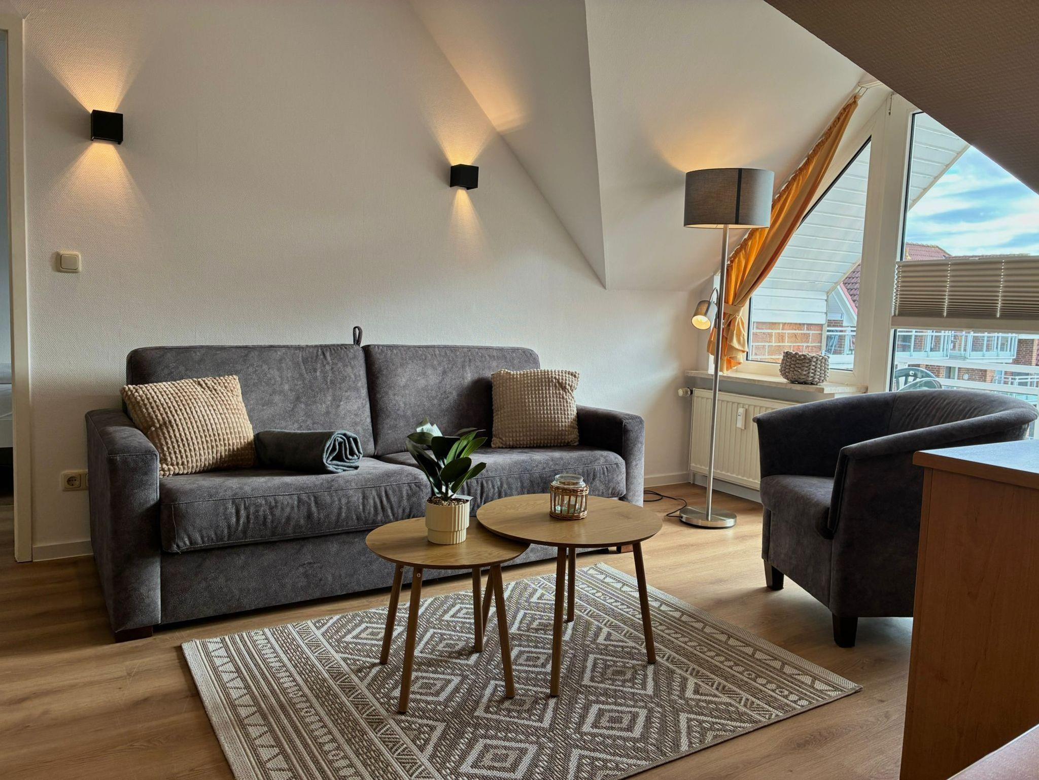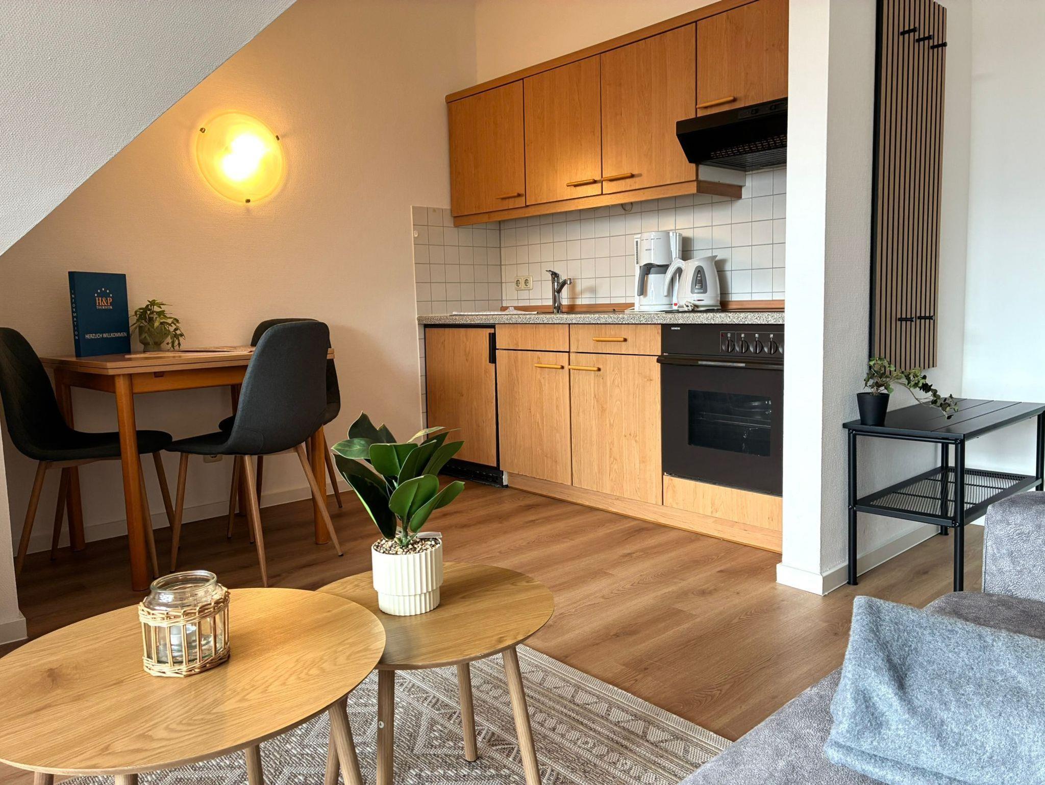 Diese charmant moderne Ferienwohnung bietet Ihnen alles, was Sie für einen entspannten Kurzurlaub benötigen. Durch den offenen Küchen-Wohnbereich lässt sie sich optimal nutzen, trotz der kleinen Größe von 35qm wirkt sie geräumig und luftig.