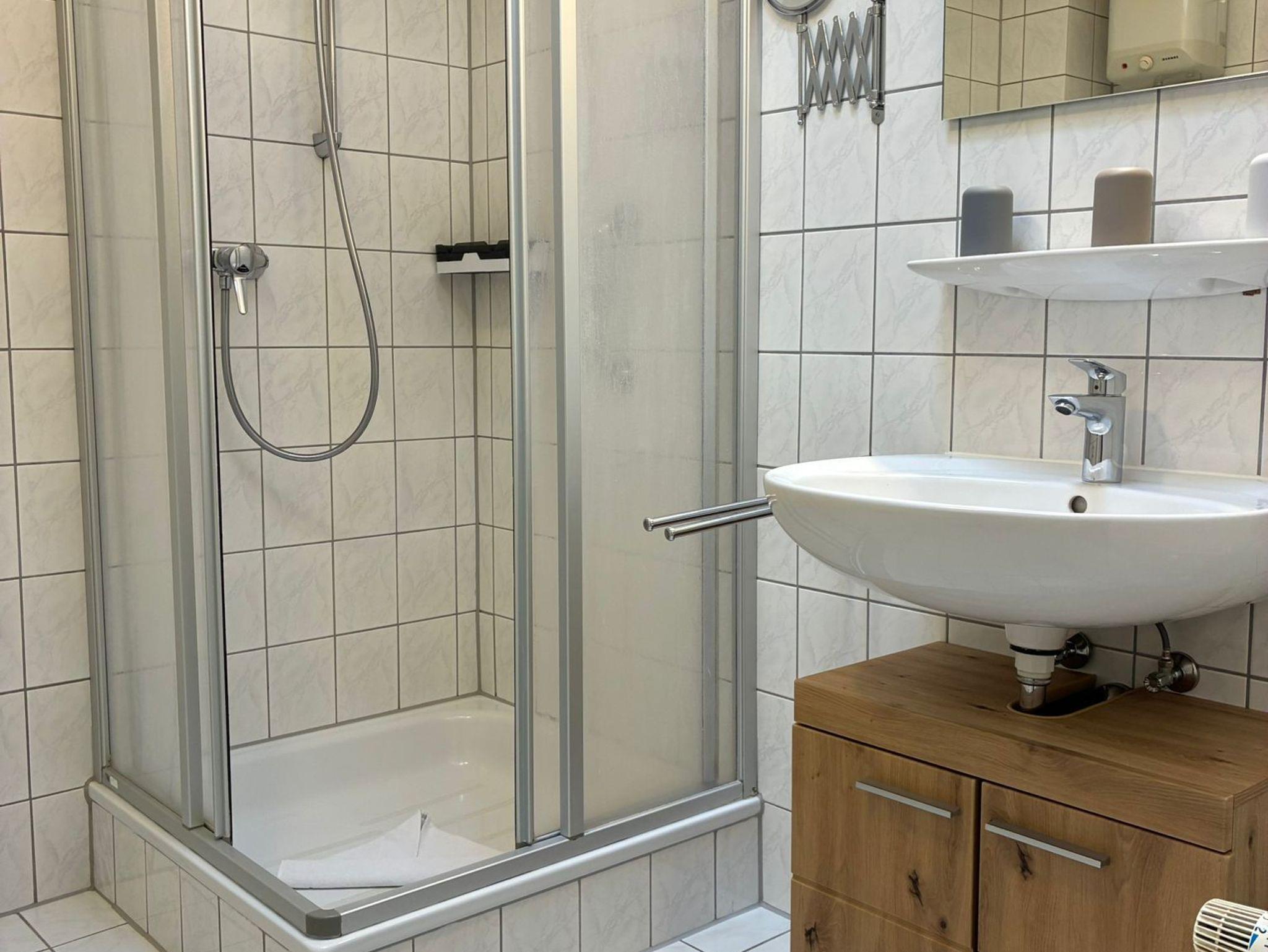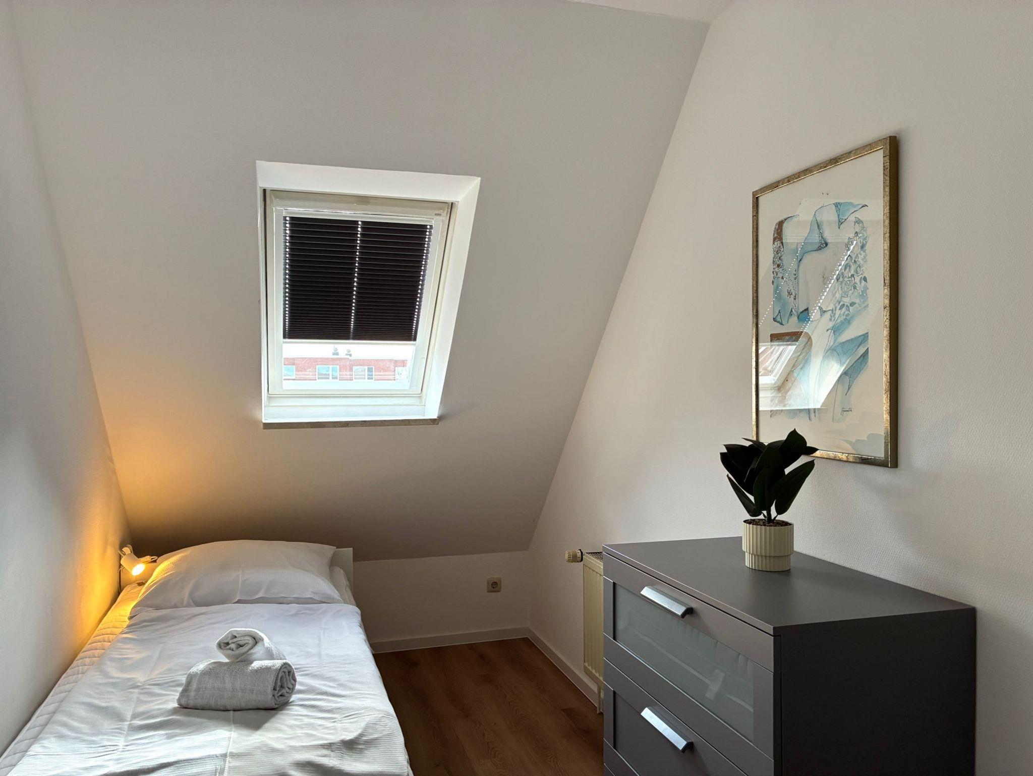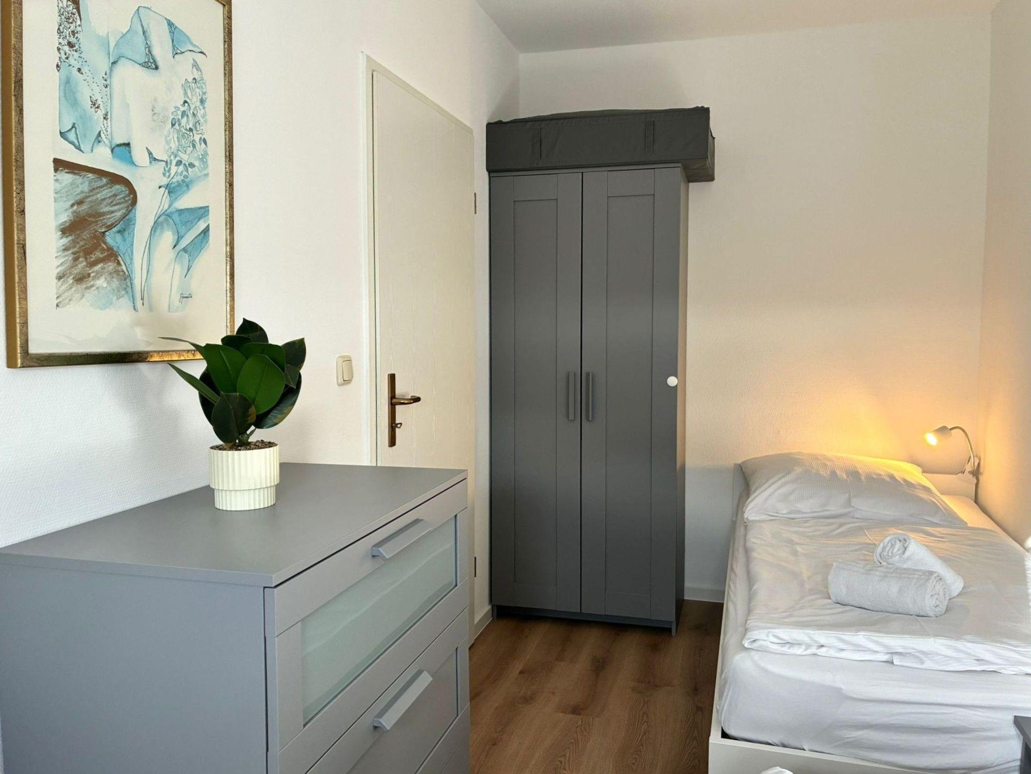 Das separate Schlafzimmer bietet zwei Einzelbetten 90 cm x200 cm mit Leselampen, geräumigem Kleiderschrank und die Schlafcouch im Wohnzimmer bietet außerdem mit 170 cm x 200 cm Liegefläche Platz für eine dritte Person. Die Wohnung verfügt über einen voll ausgestatteten Küchenbereich und ein lichtdurchflutetes Tageslichtbad.